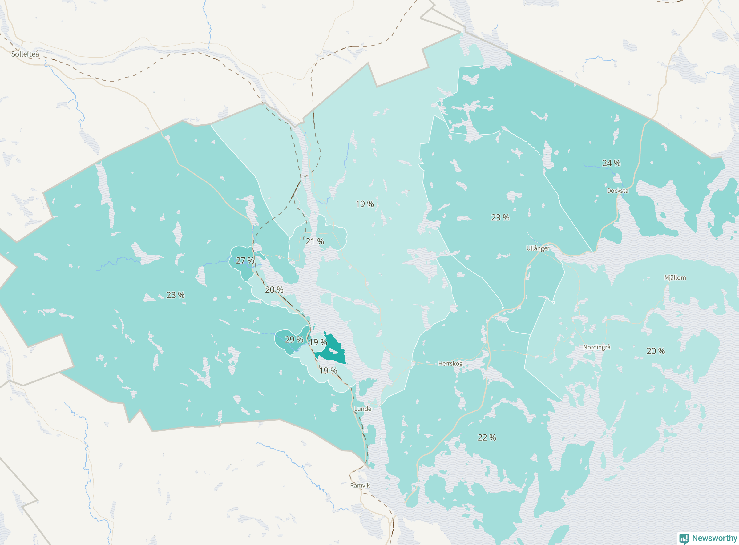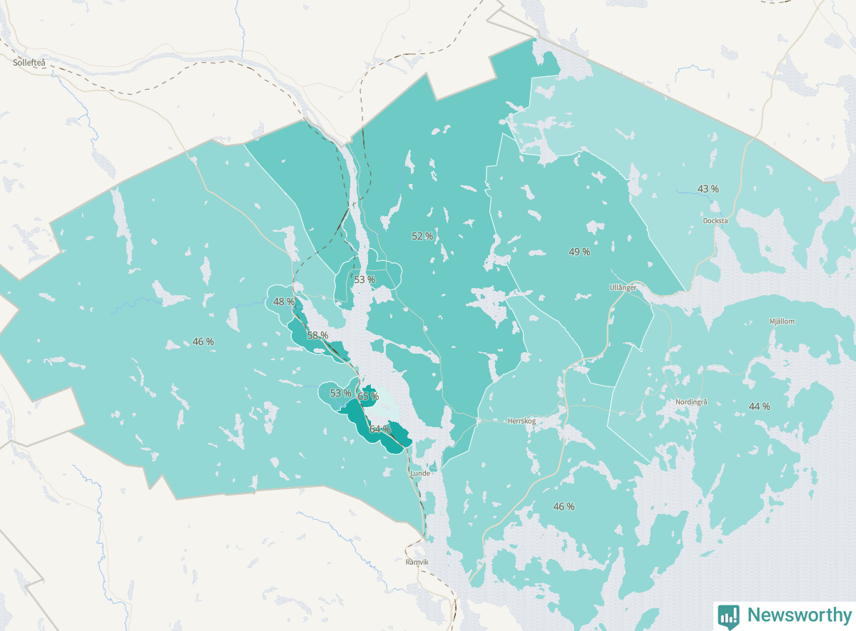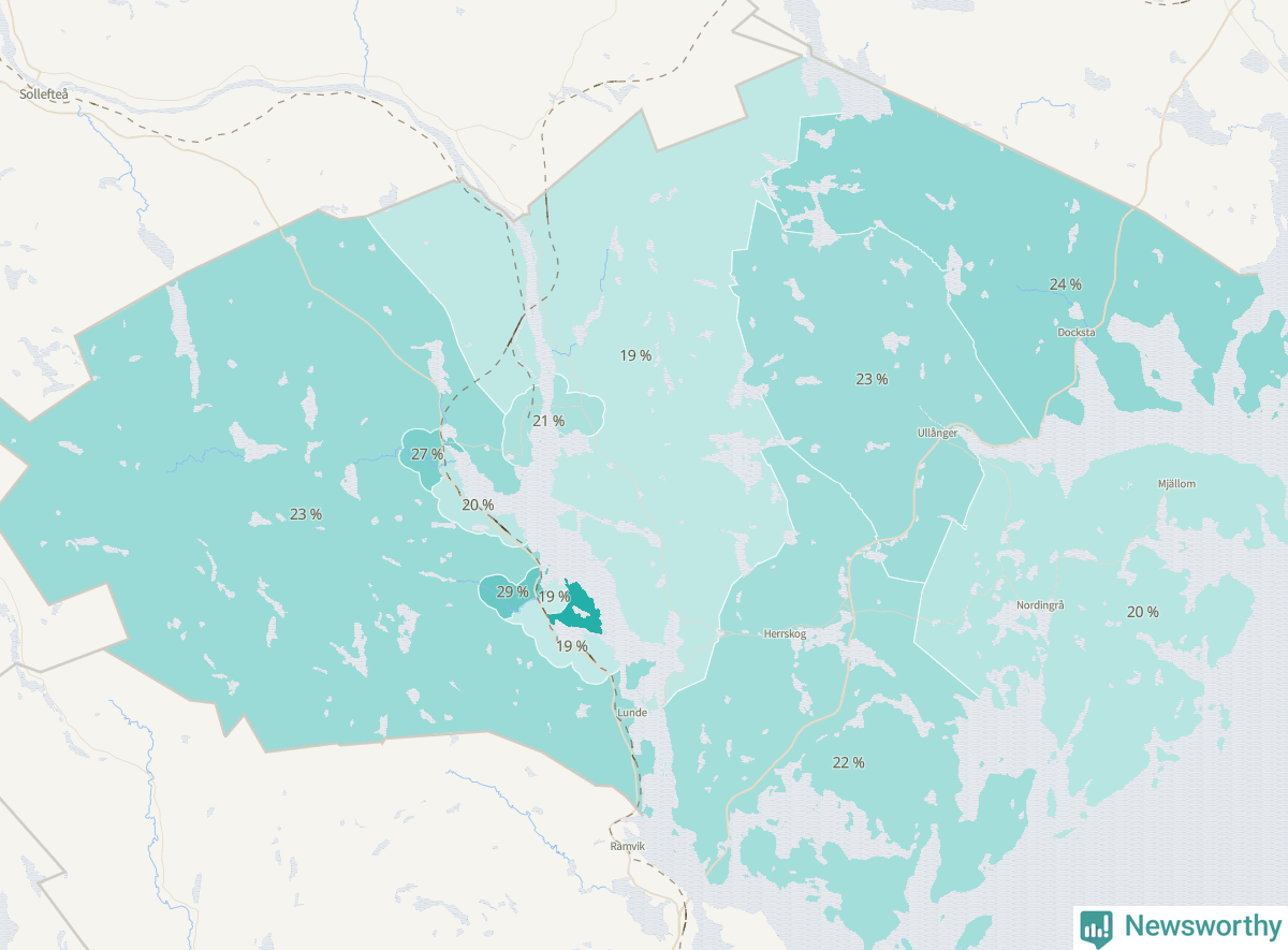 | Ullånger | 1 149 | 1 143 | −6 | −1 % ▸ |