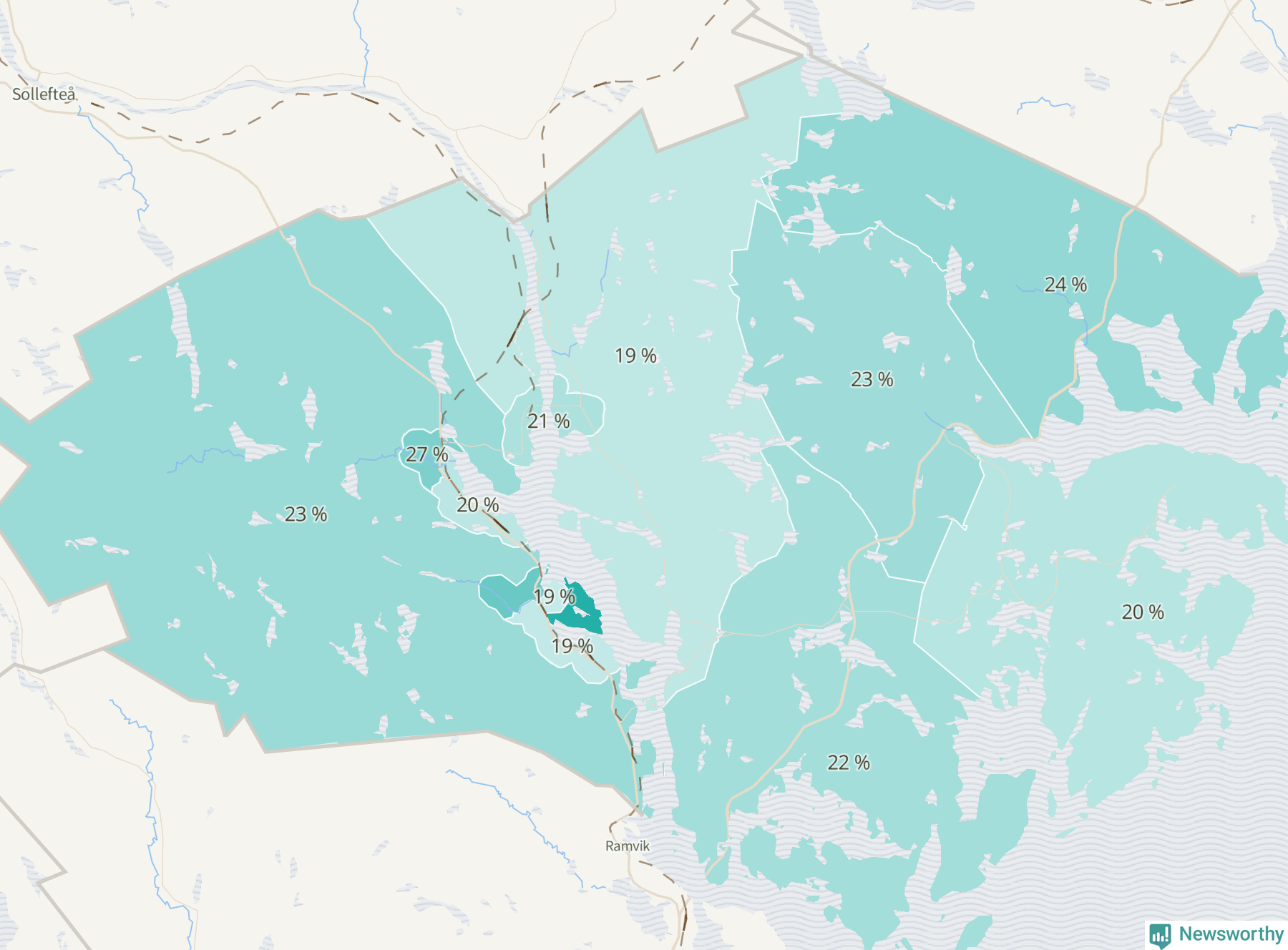 | Kramfors stad östra | 1 894 | 1 803 | −91 | −5 % ▼ |