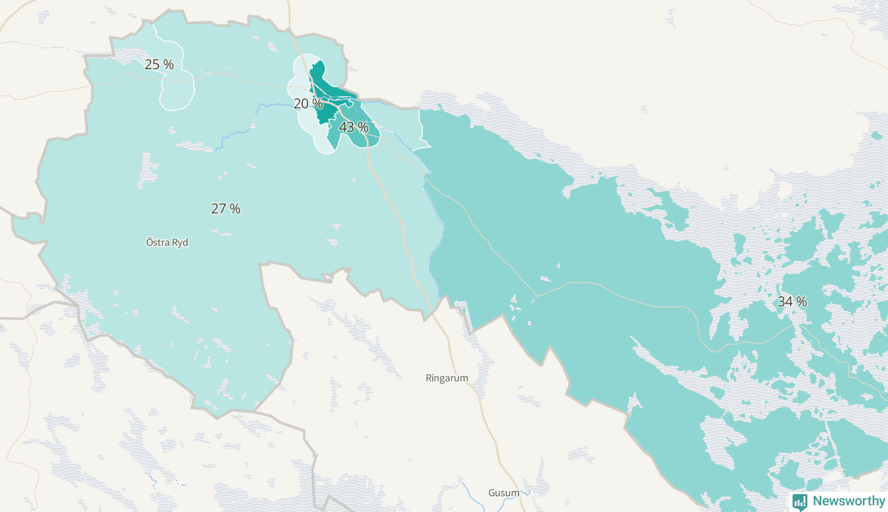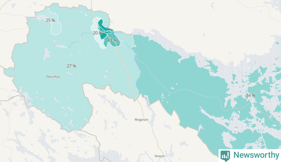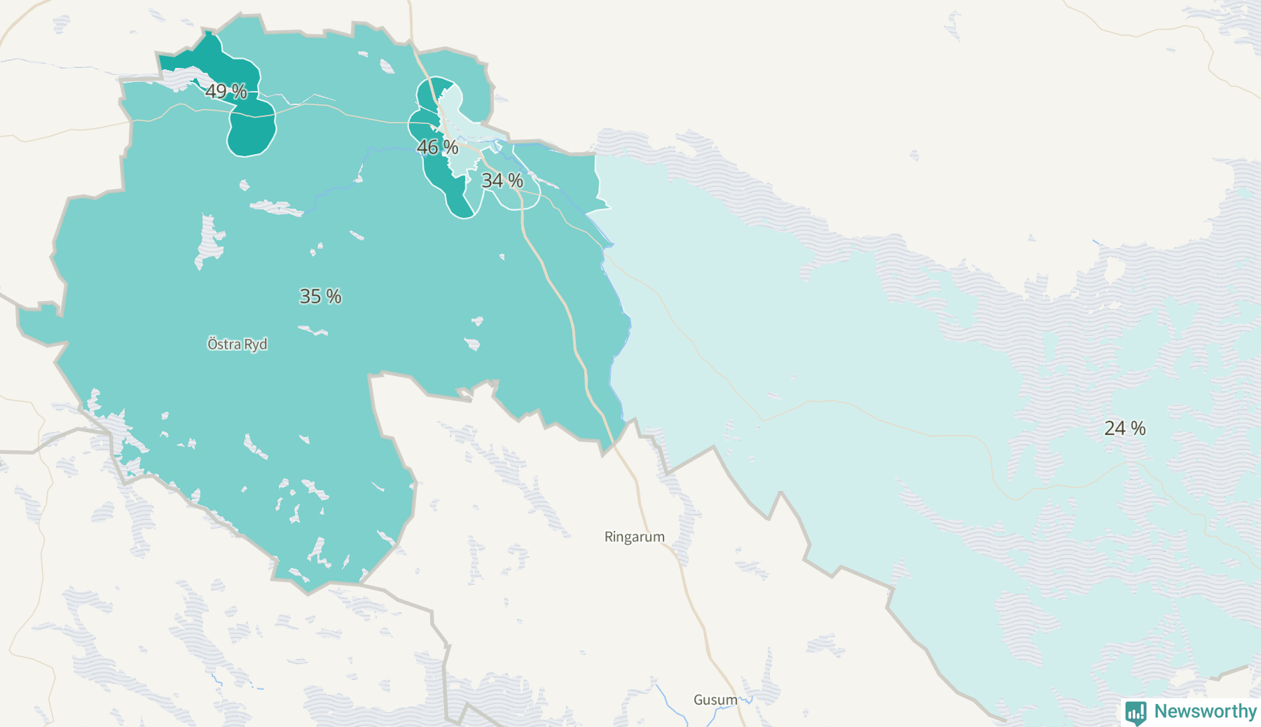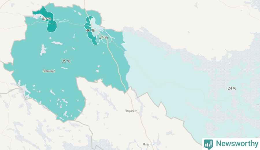 | Söderköpings omland-Östra Ryd | 490 | 35 % |