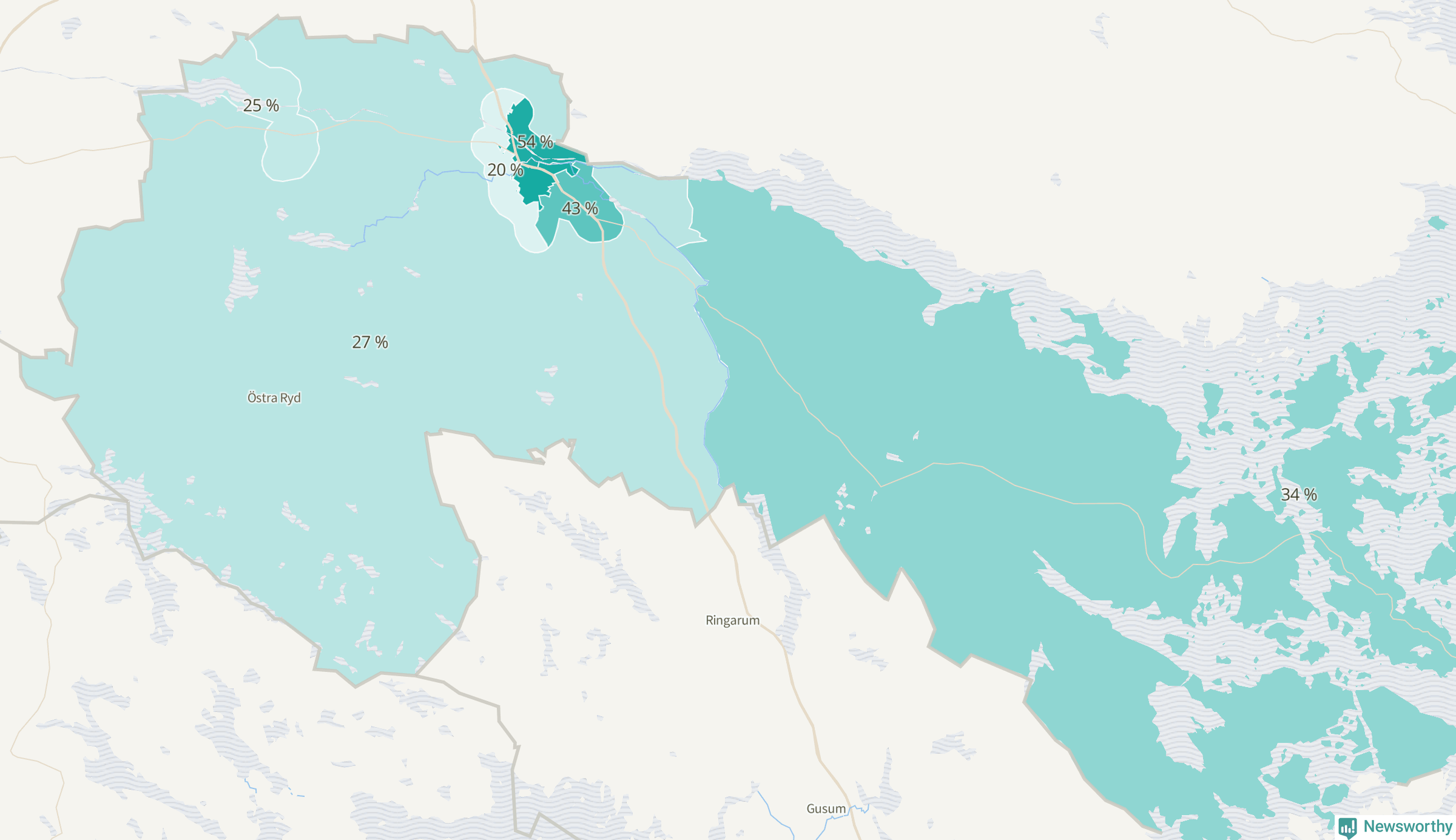 | Söderköpings omland-Östra Ryd | 370 | 27 % |