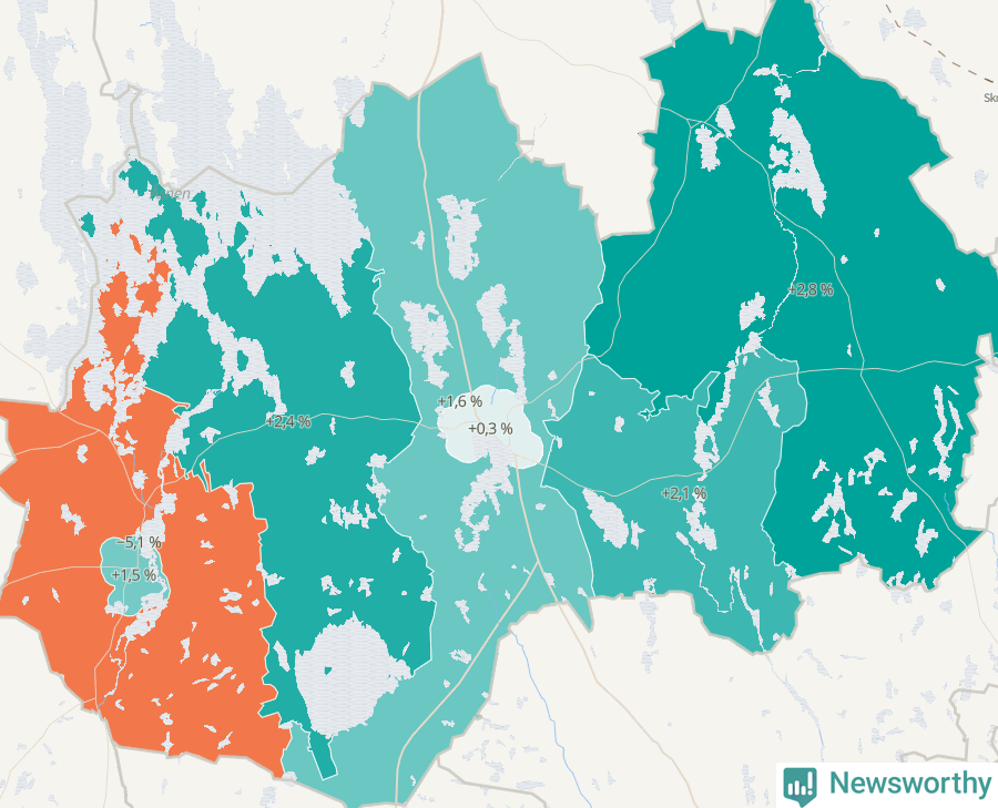 | Linneryd-Älmeboda | 1 882 | 1 934 | +52 | +3 % ▲ |