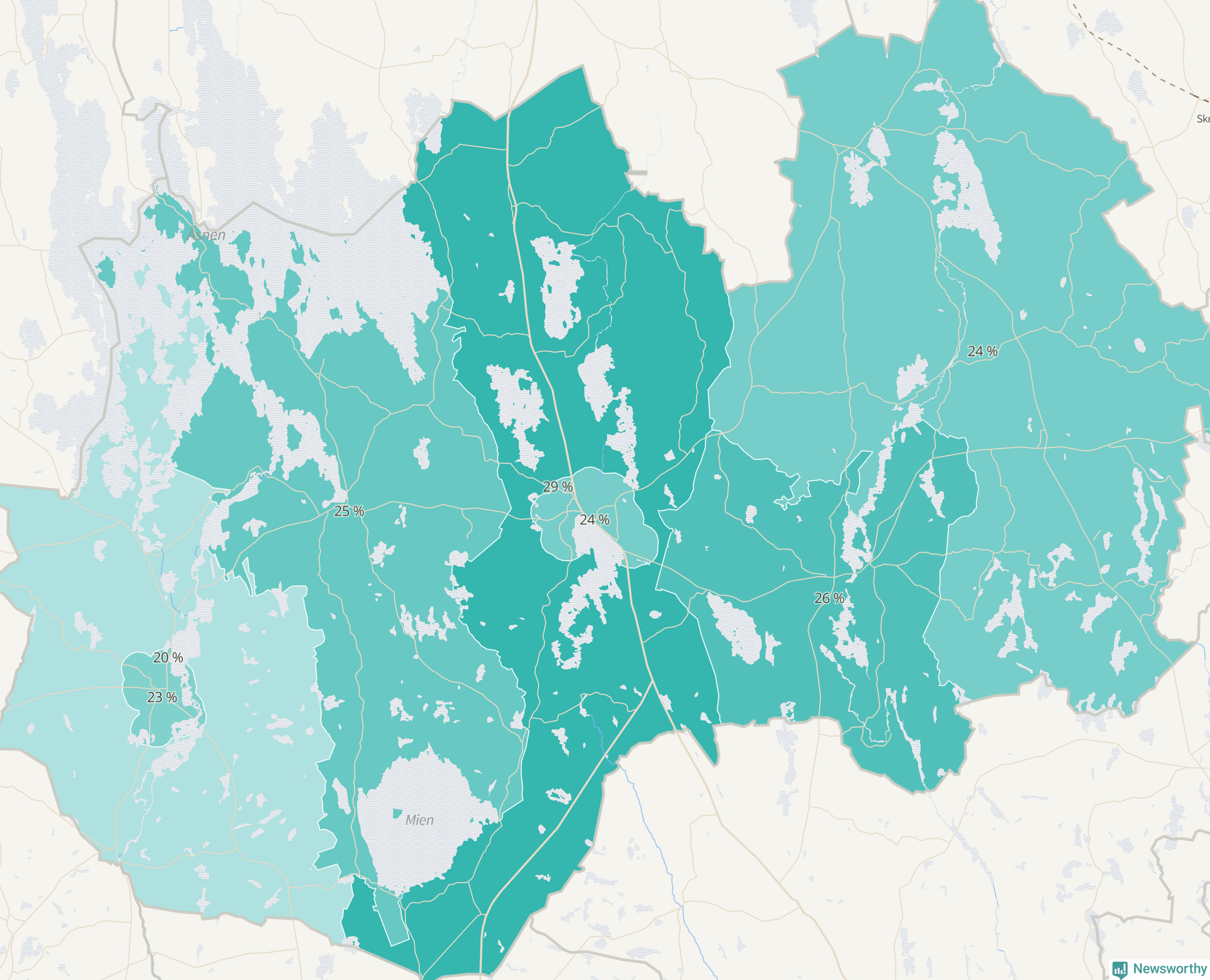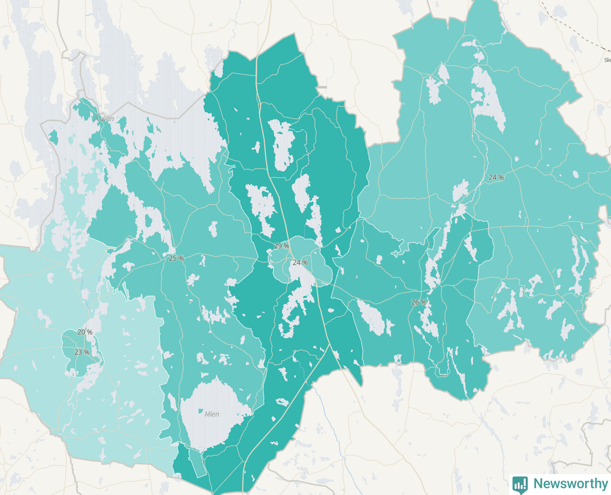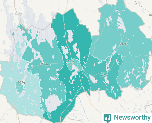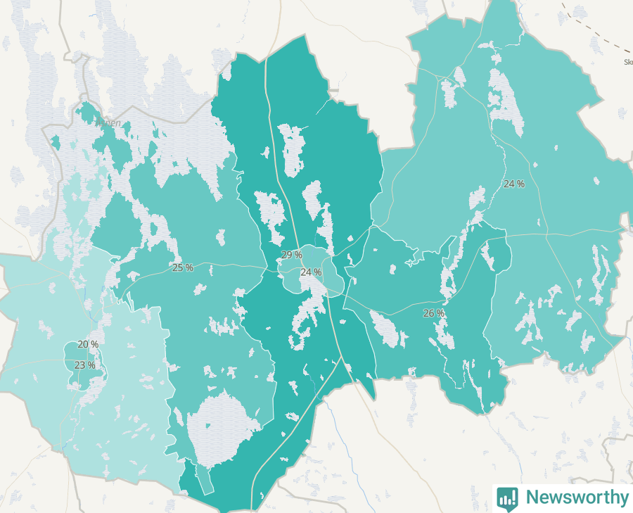| Linneryd-Älmeboda | 225 | 24 % |