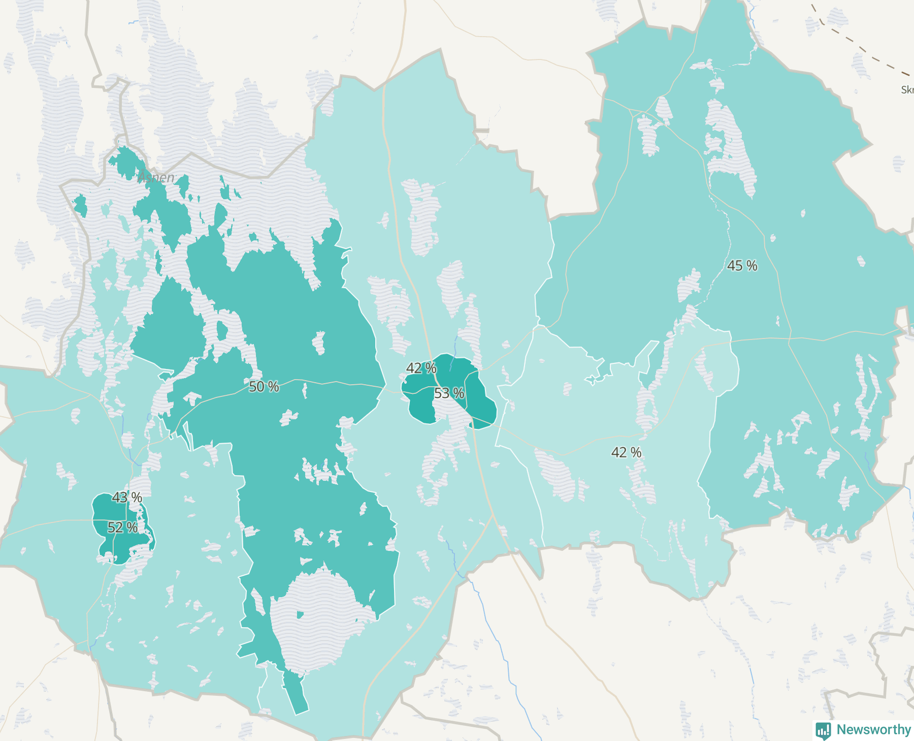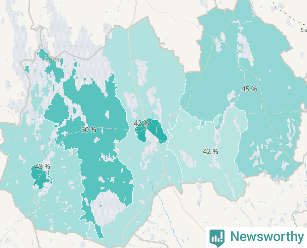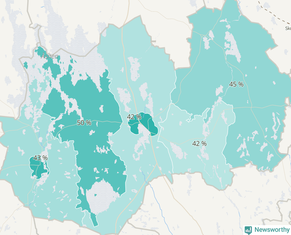 | Linneryd-Älmeboda | 426 | 45 % |