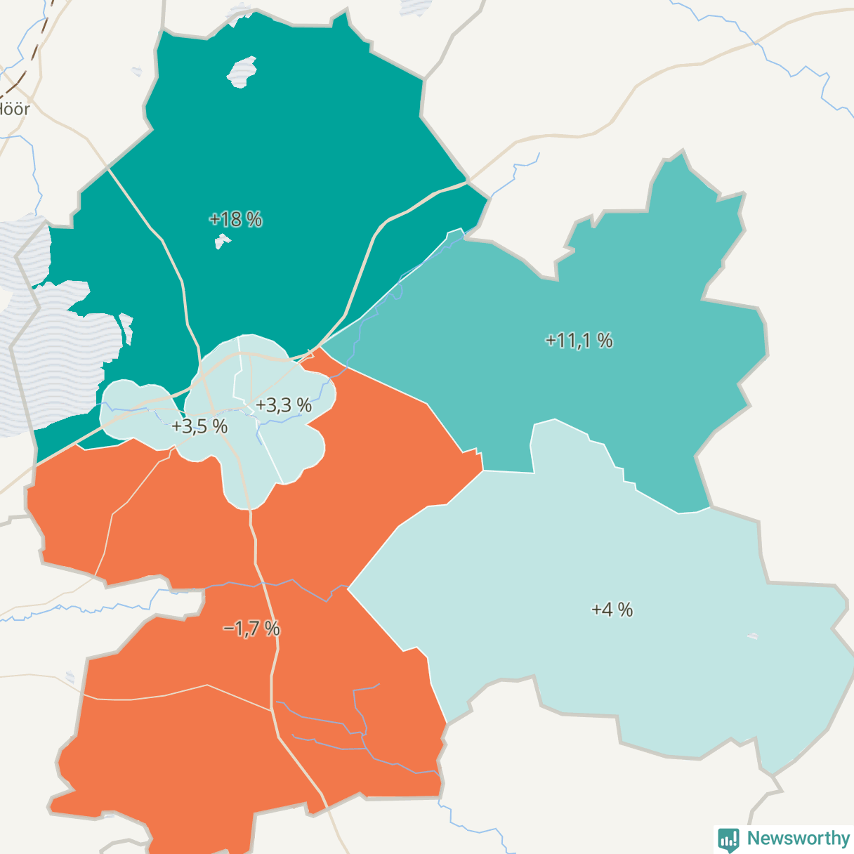 | Hörby västra-Osbyholm | 3 571 | 3 697 | +126 | +4 % ▲ |
