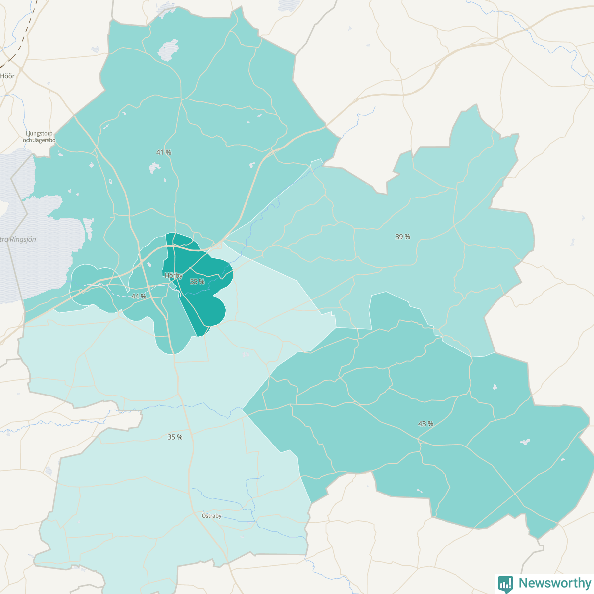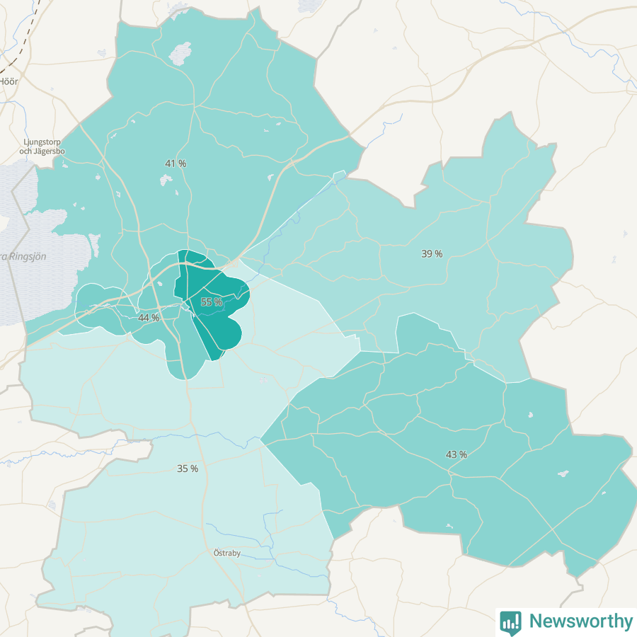 | Hörby västra-Osbyholm | 756 | 44 % |