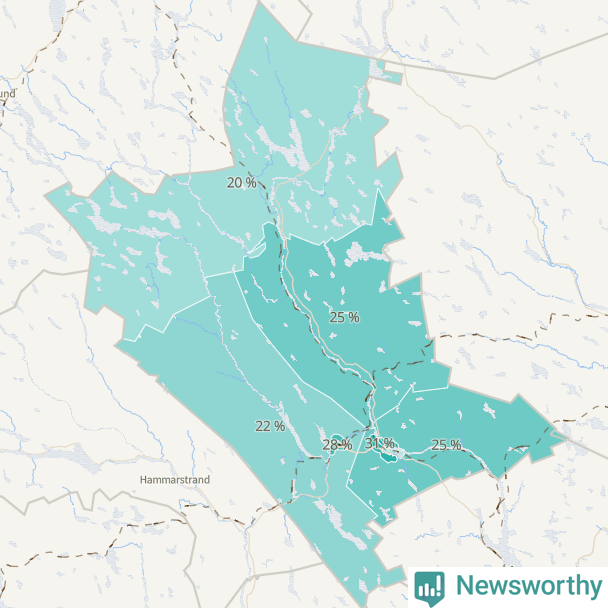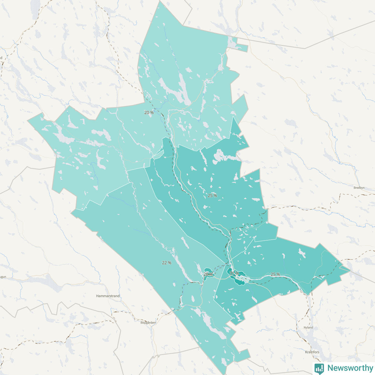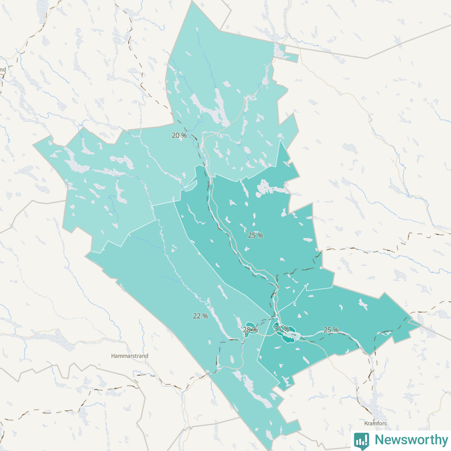 | Sollefteå centrum-Övergård | 493 | 18 % |