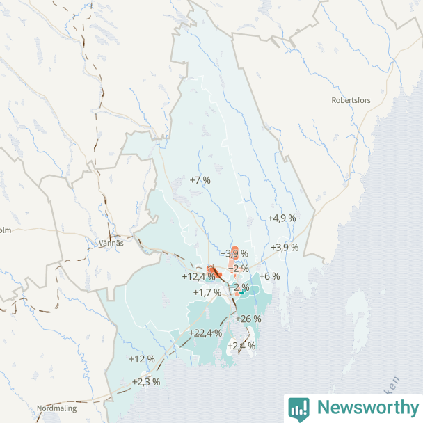 | Grisbacka-Grubbe-Västerhiske | 5 271 | 6 971 | +1 700 | +32 % ▲ |