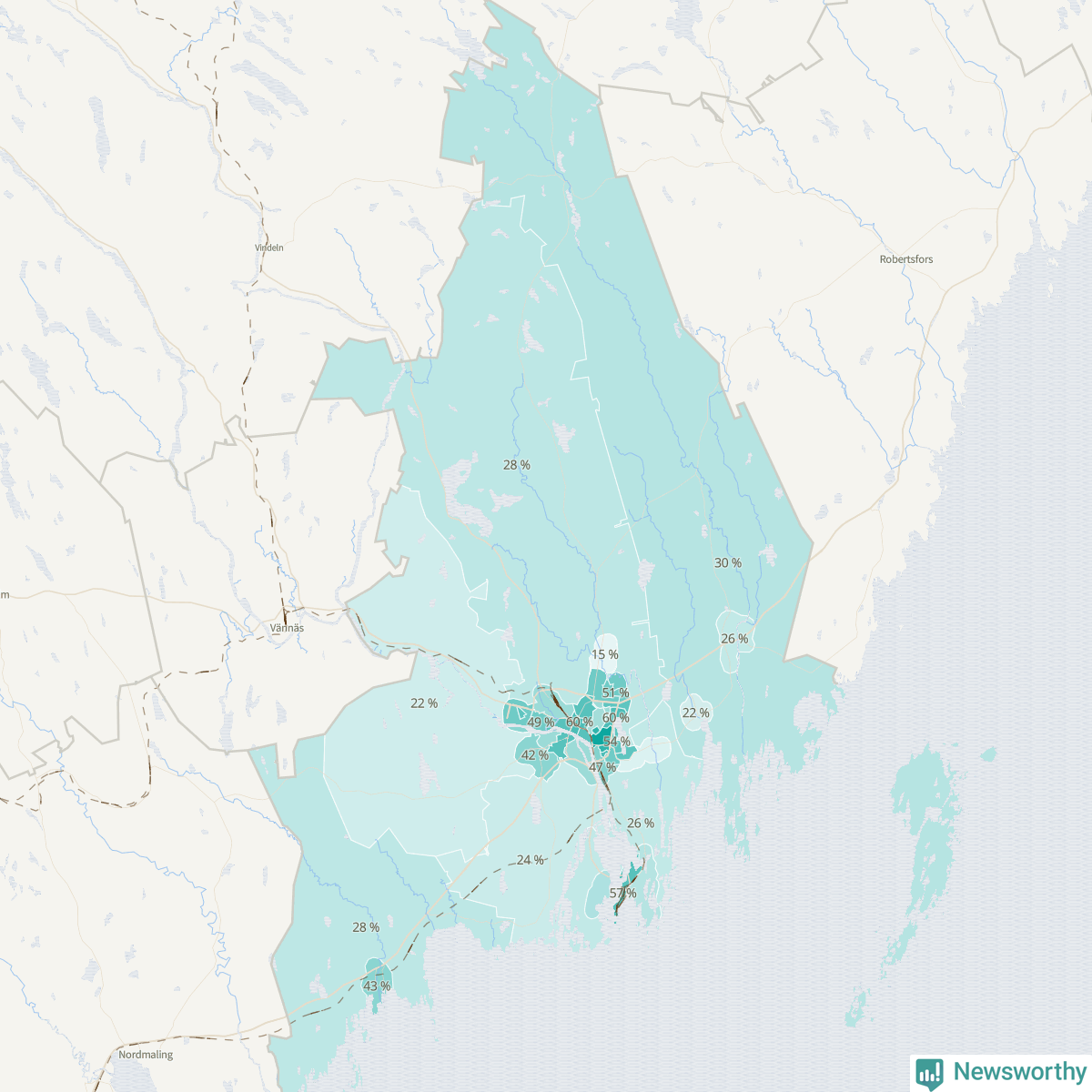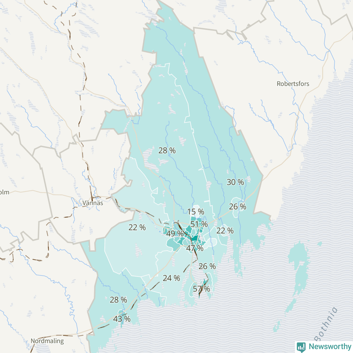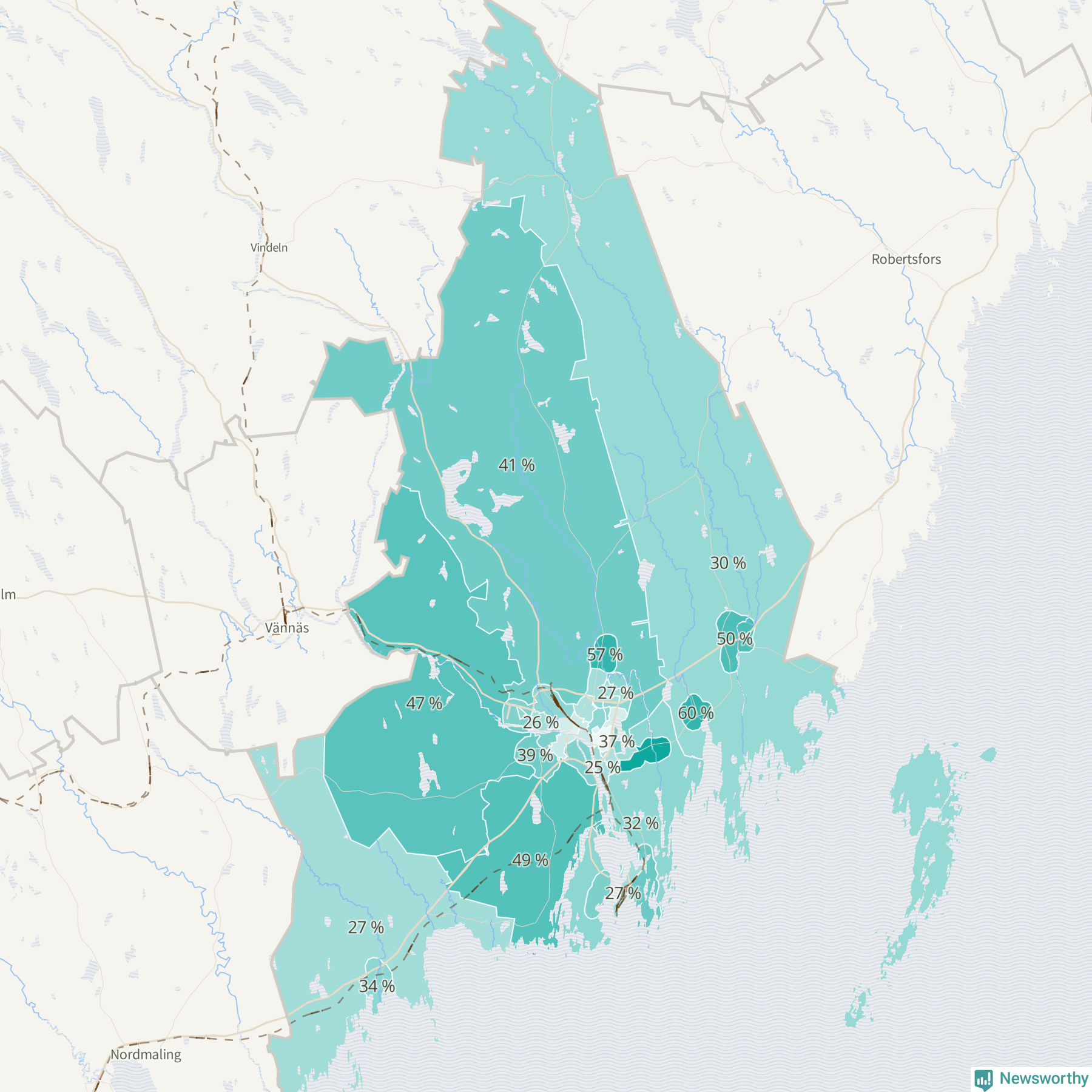 | Holmsund-Obbola omland | 235 | 32 % |
