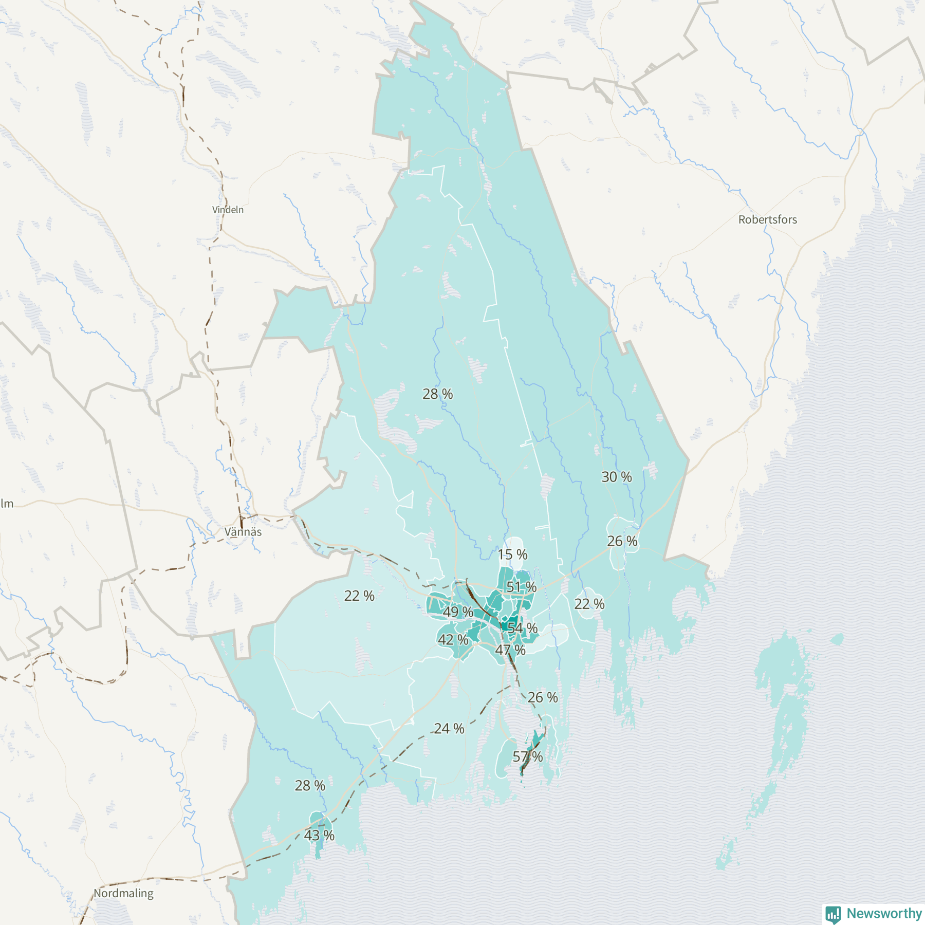 | Holmsund-Obbola omland | 191 | 26 % |
