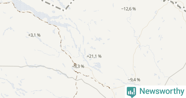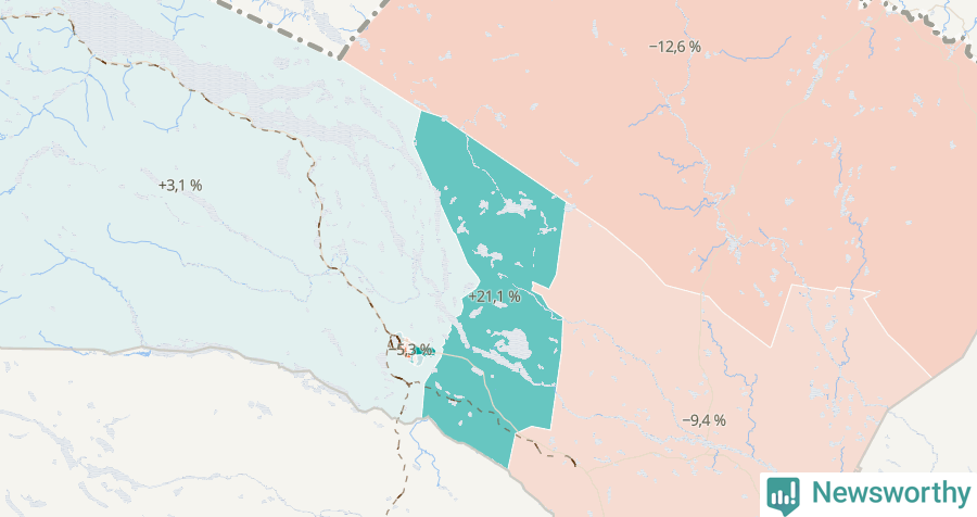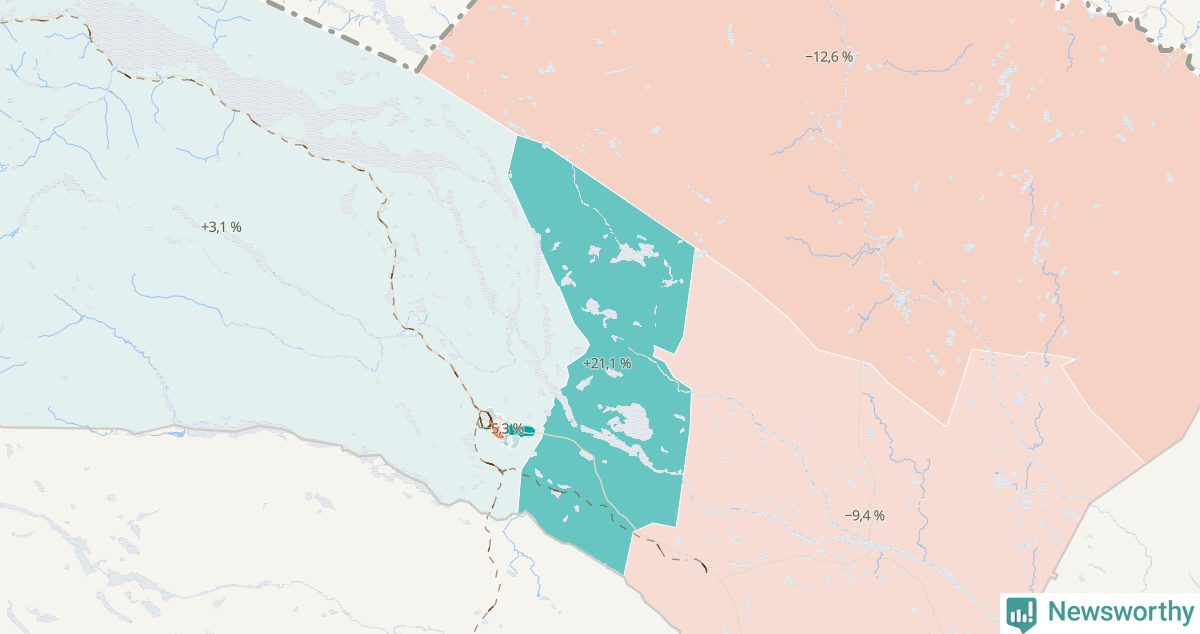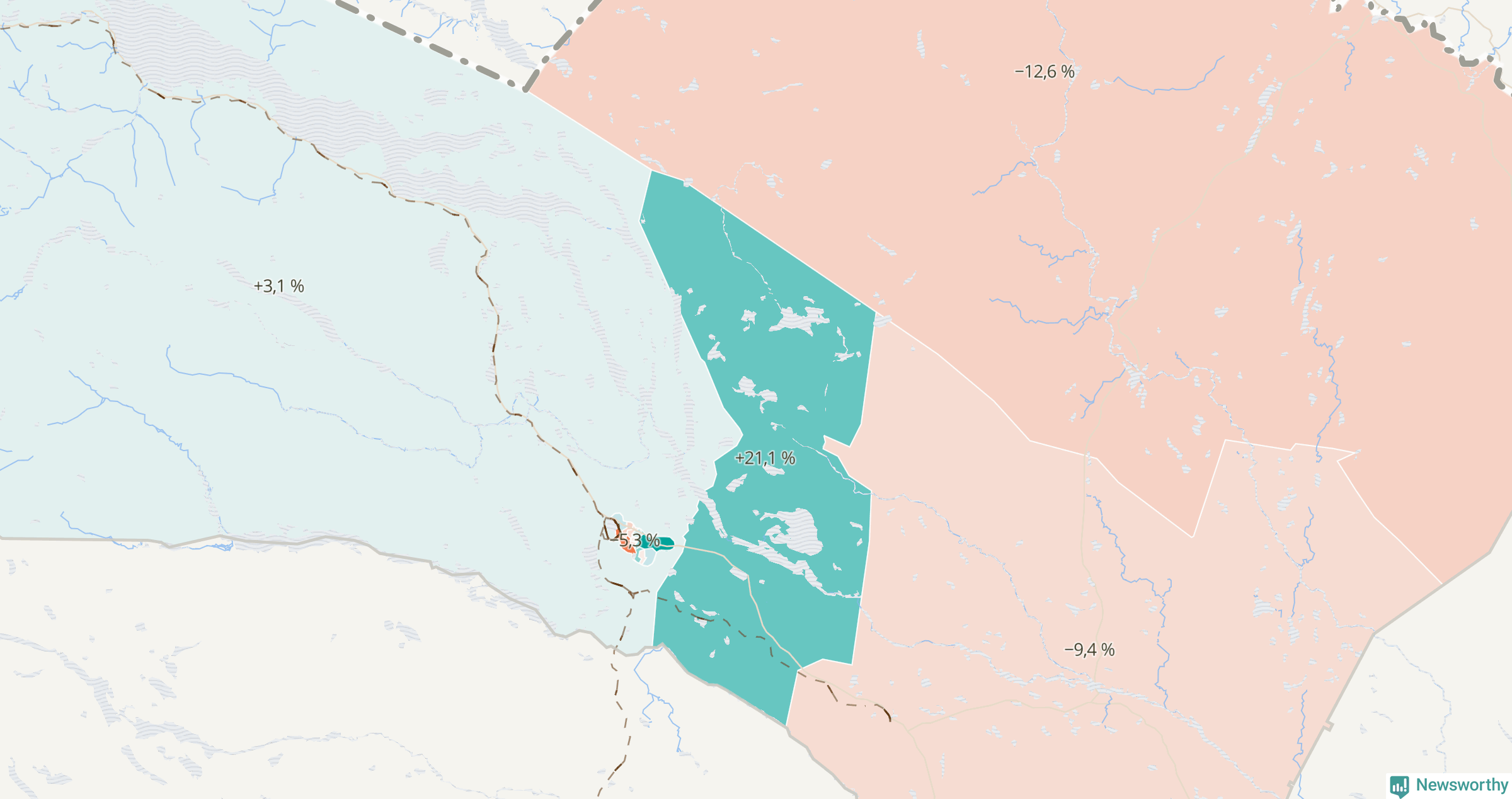 | Kiruna nordost | 1 299 | 1 135 | −164 | −13 % ▼ |