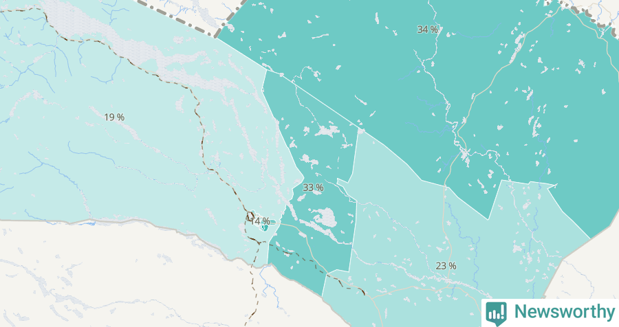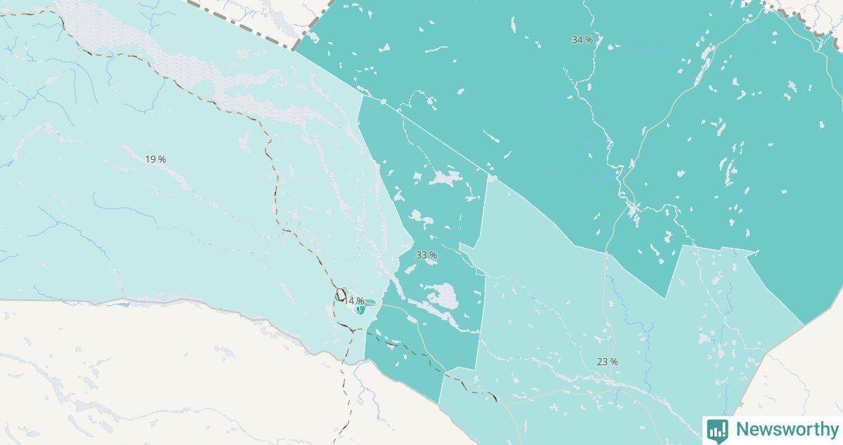 Men minskningen sker inte jämnt i hela kommunen. Det visar sig när när Newsworthy samlar SCB:s befolkningsdata från tio år för att se hur kommunen utvecklats. Medan området Nya Kiruna centrum-Tuolluvaara har ökat invånarantalet med 585 personer – 36 procent – har Bolaget minskat sin befolkning med 1 260 invånare. Flytten av stadskärnan i Kiruna påverkar förstås utvecklingen mellan områdena.