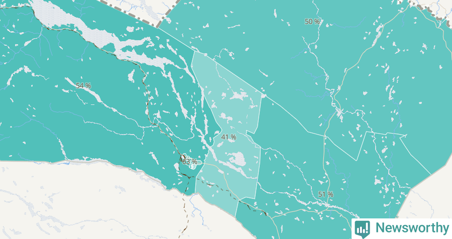 | Nya Kiruna centrum-Tuolluvaara | 424 | 44 % |