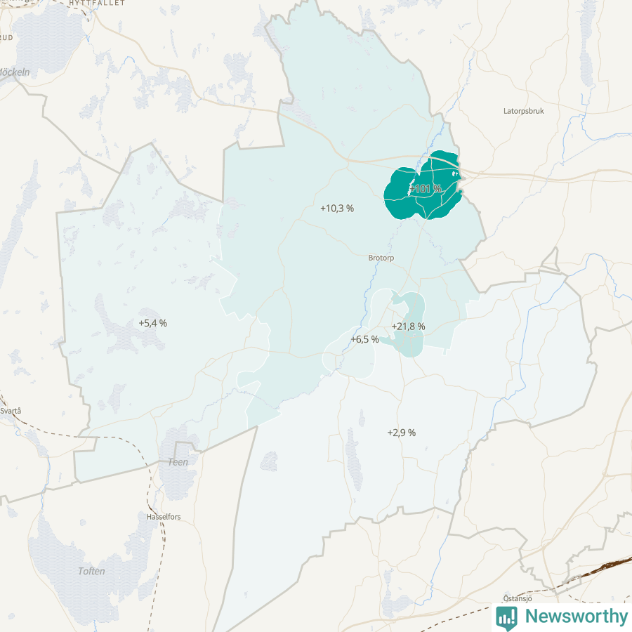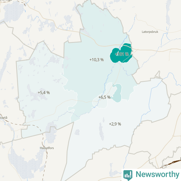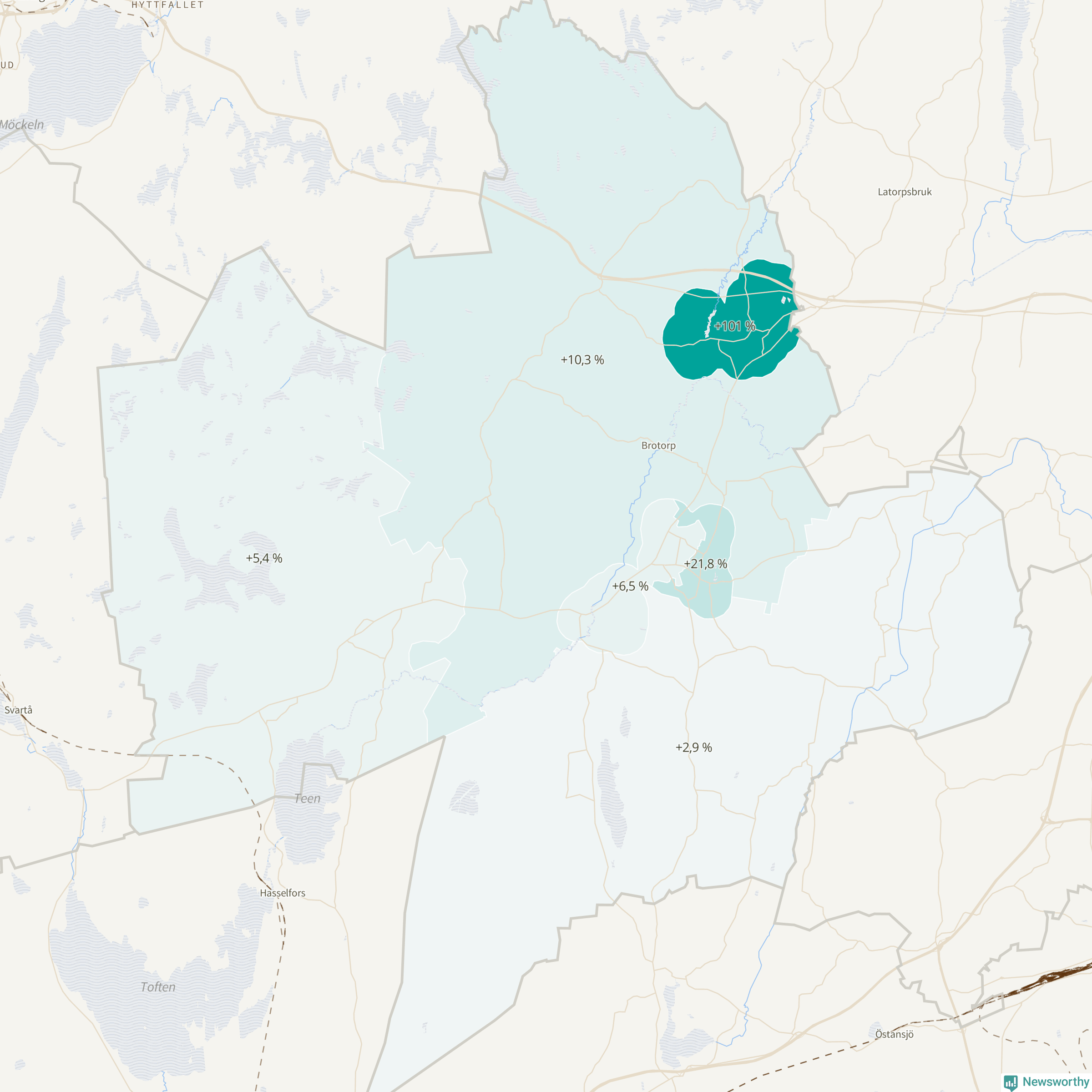 | Lekeberg-Lanna | 925 | 1 859 | +934 | +101 % ▲ |