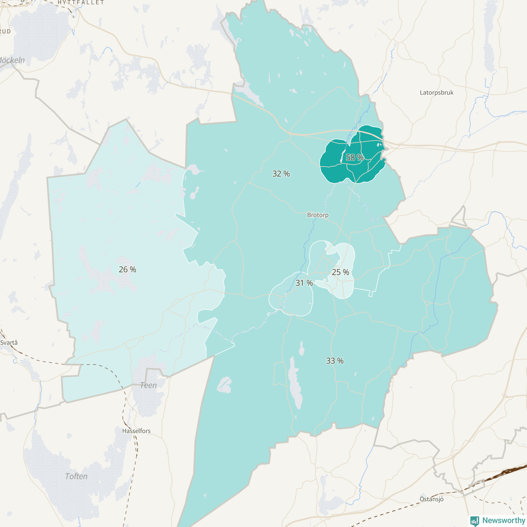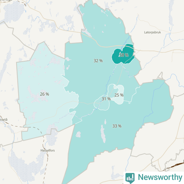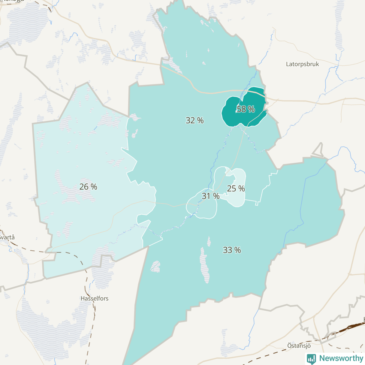 | Lekeberg norra landsbygd | 207 | 32 % |