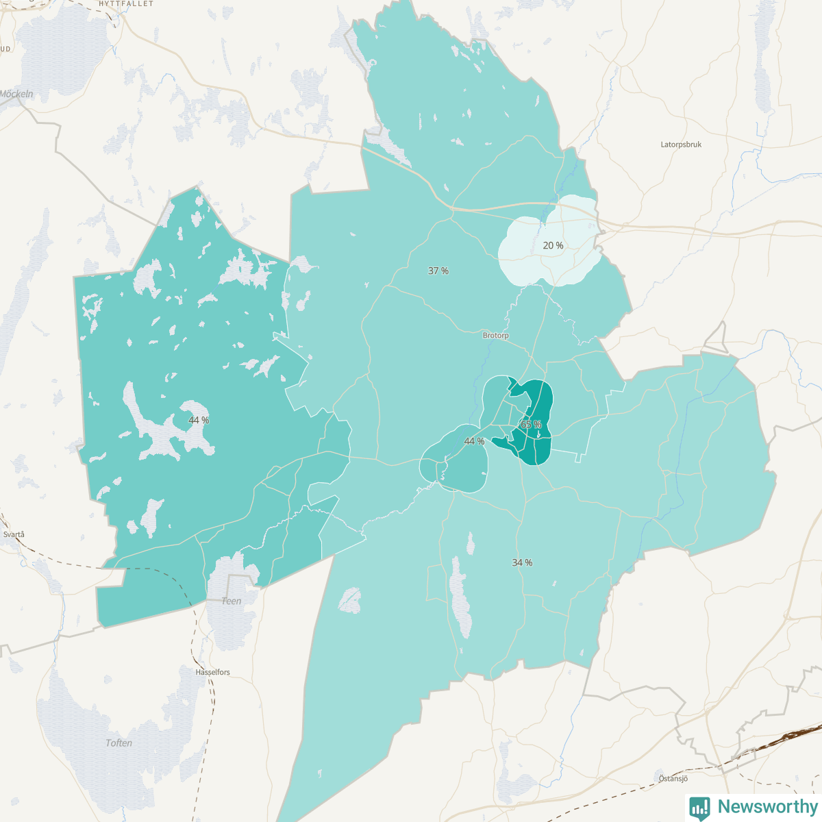 | Lekeberg norra landsbygd | 237 | 37 % |