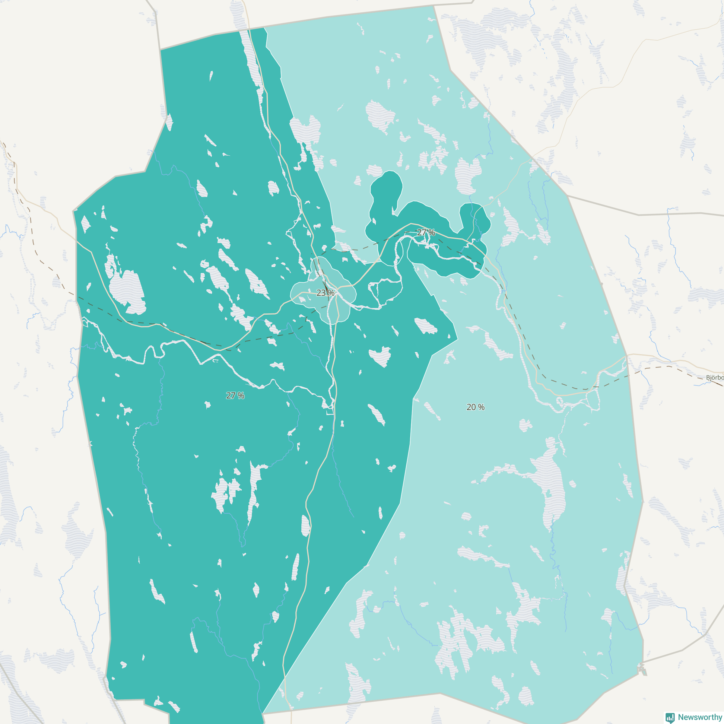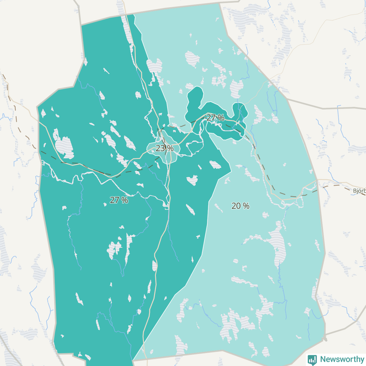 | Vansbro västra landsbygd | 188 | 27 % |