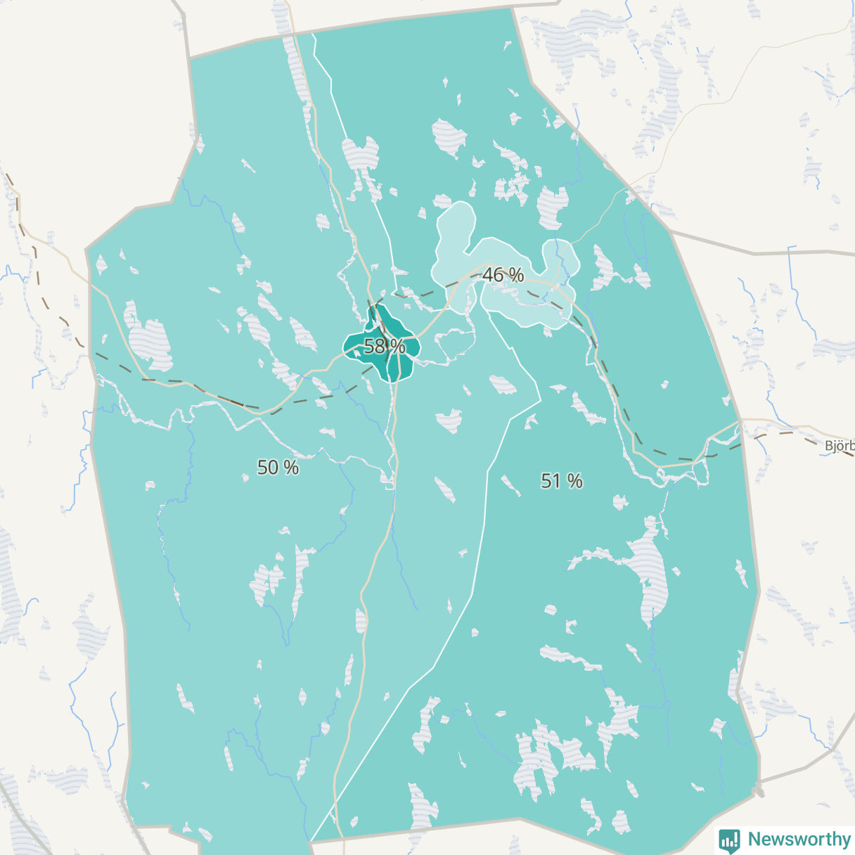 | Vansbro västra landsbygd | 346 | 50 % |