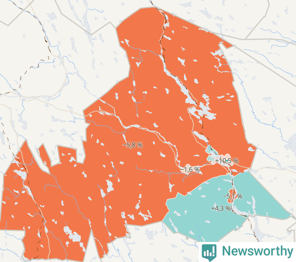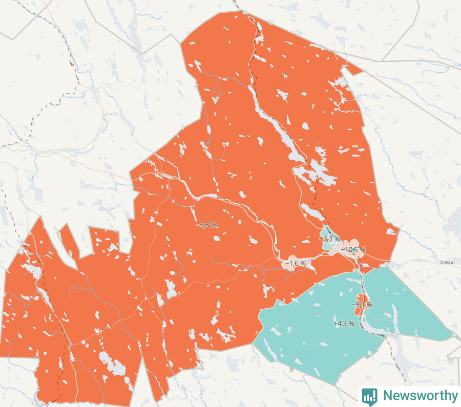 | Ljusdal omland | 4 709 | 4 437 | −272 | −6 % ▼ |