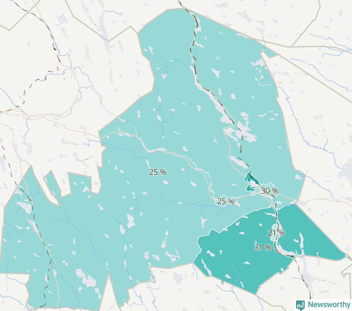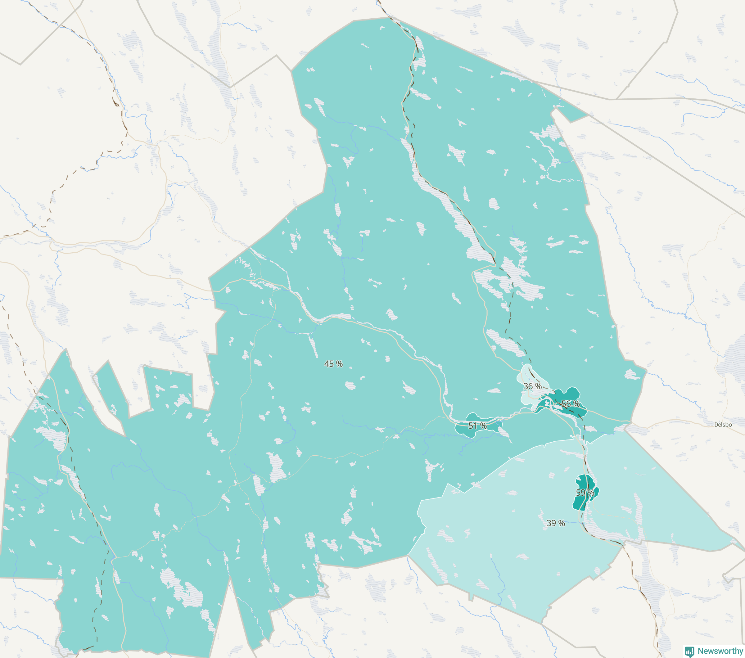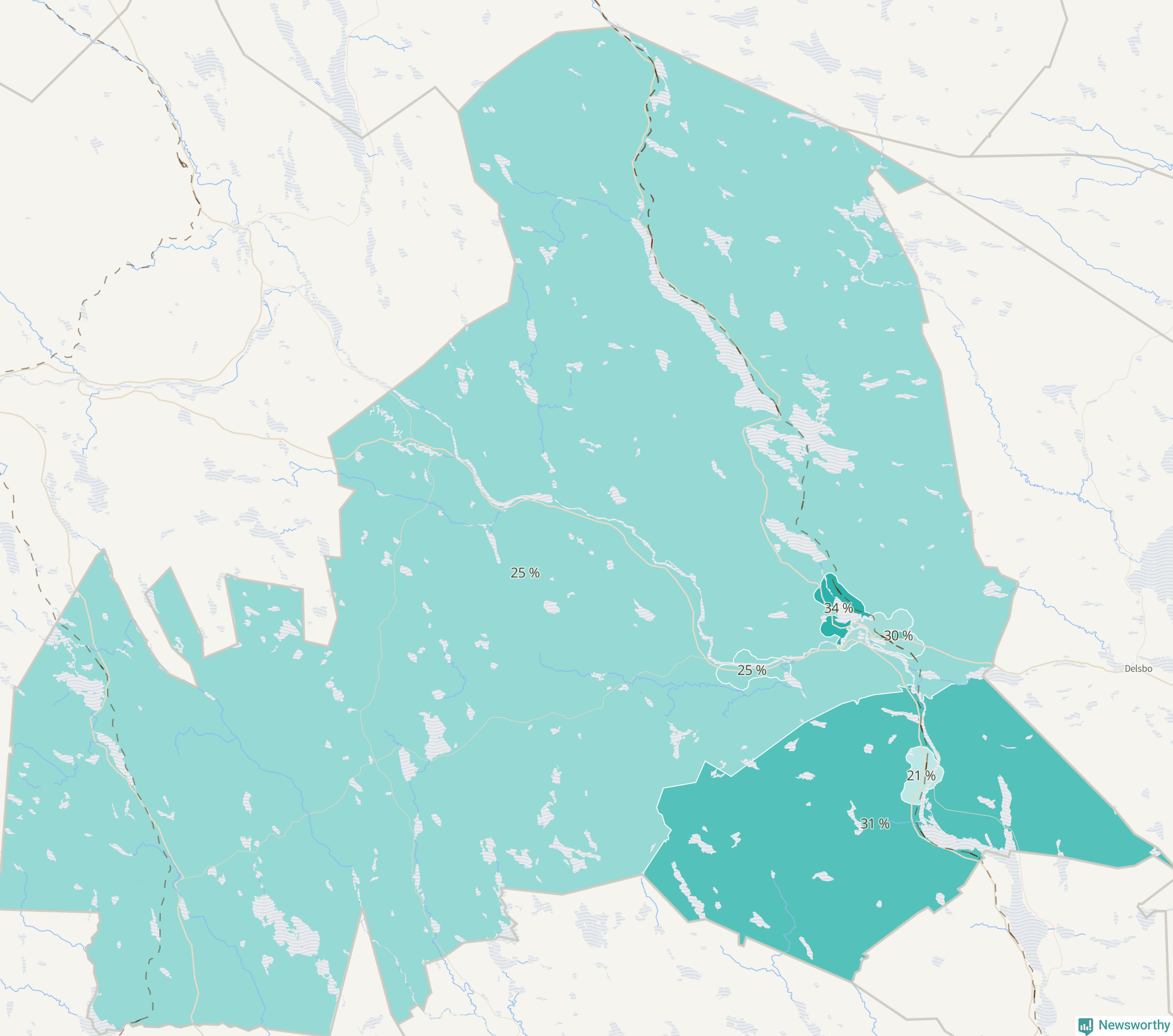 | Ljusdal omland | 539 | 25 % |