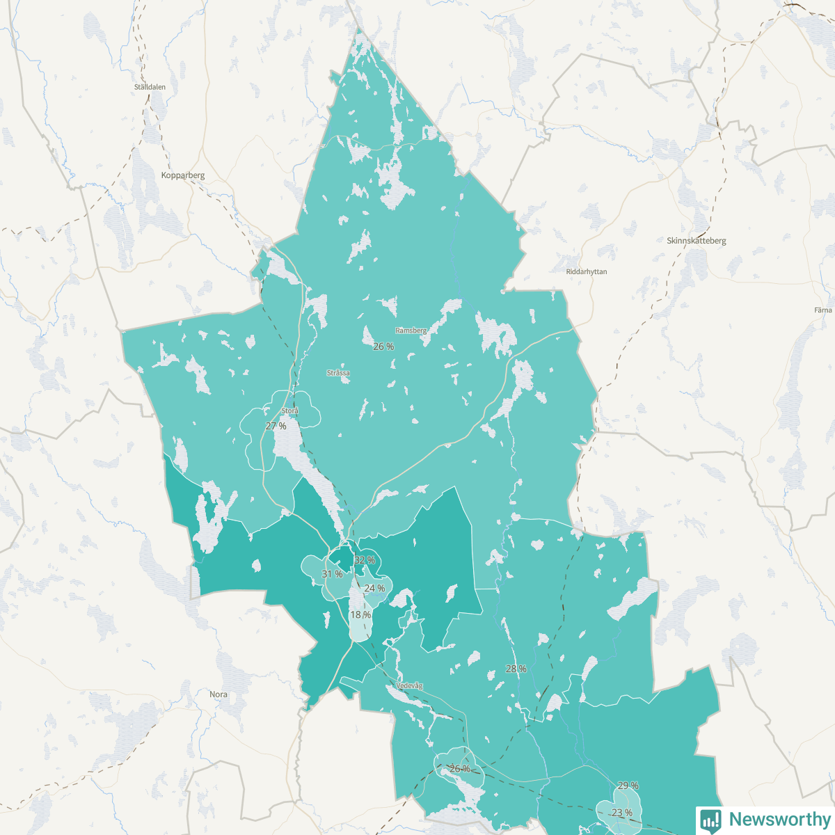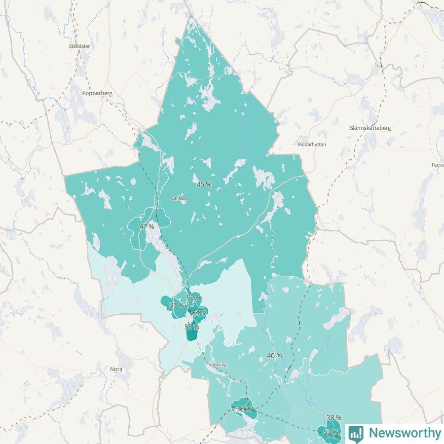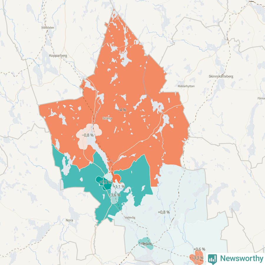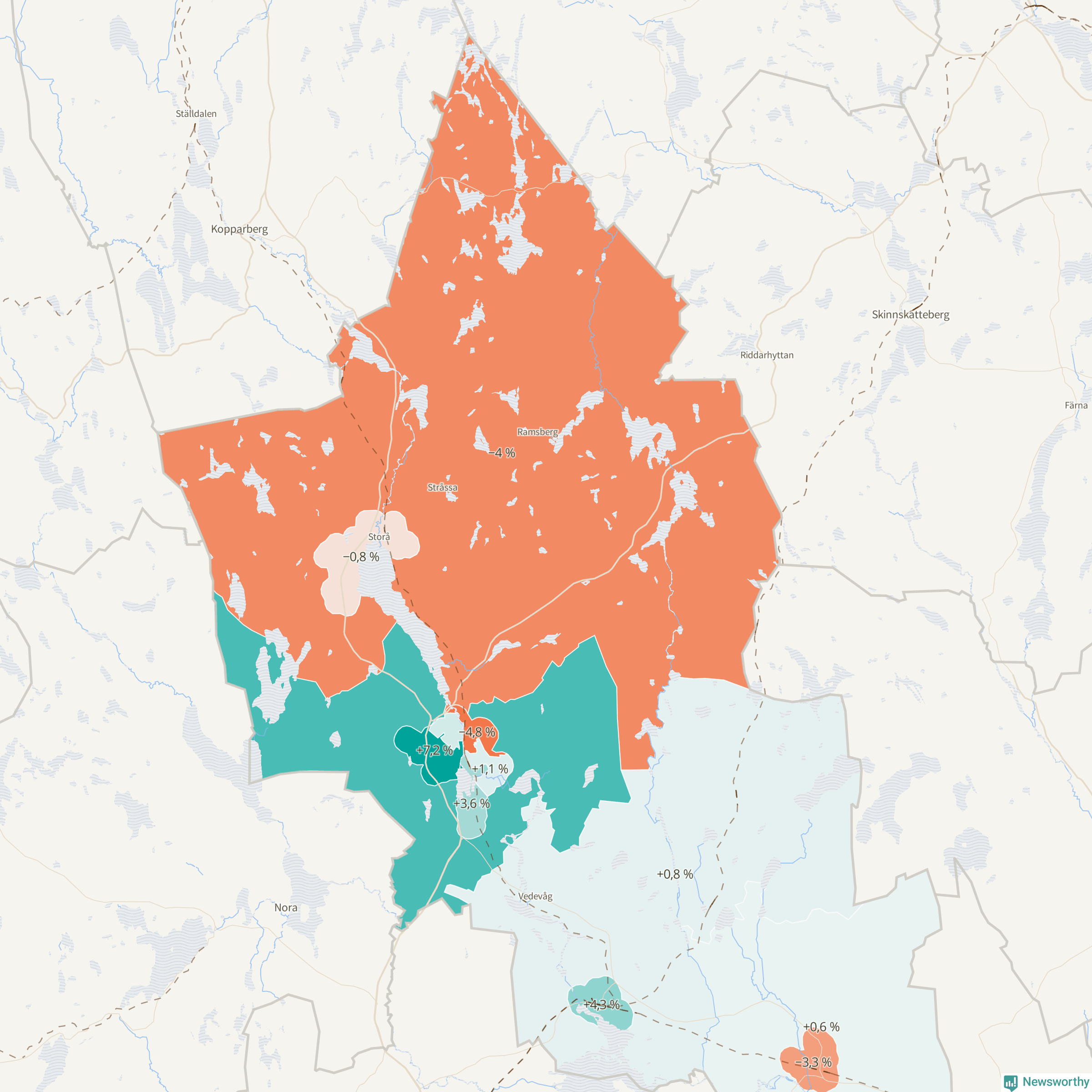 | Frövi landsbygd | 2 625 | 2 645 | +20 | +1 % ▸ |
