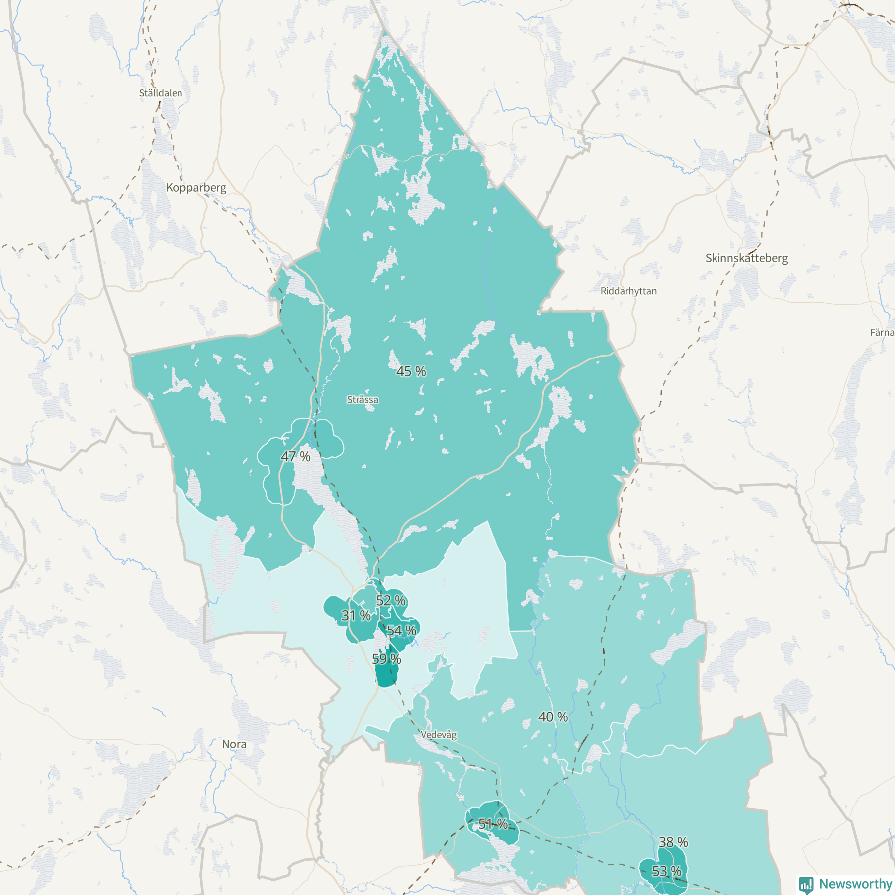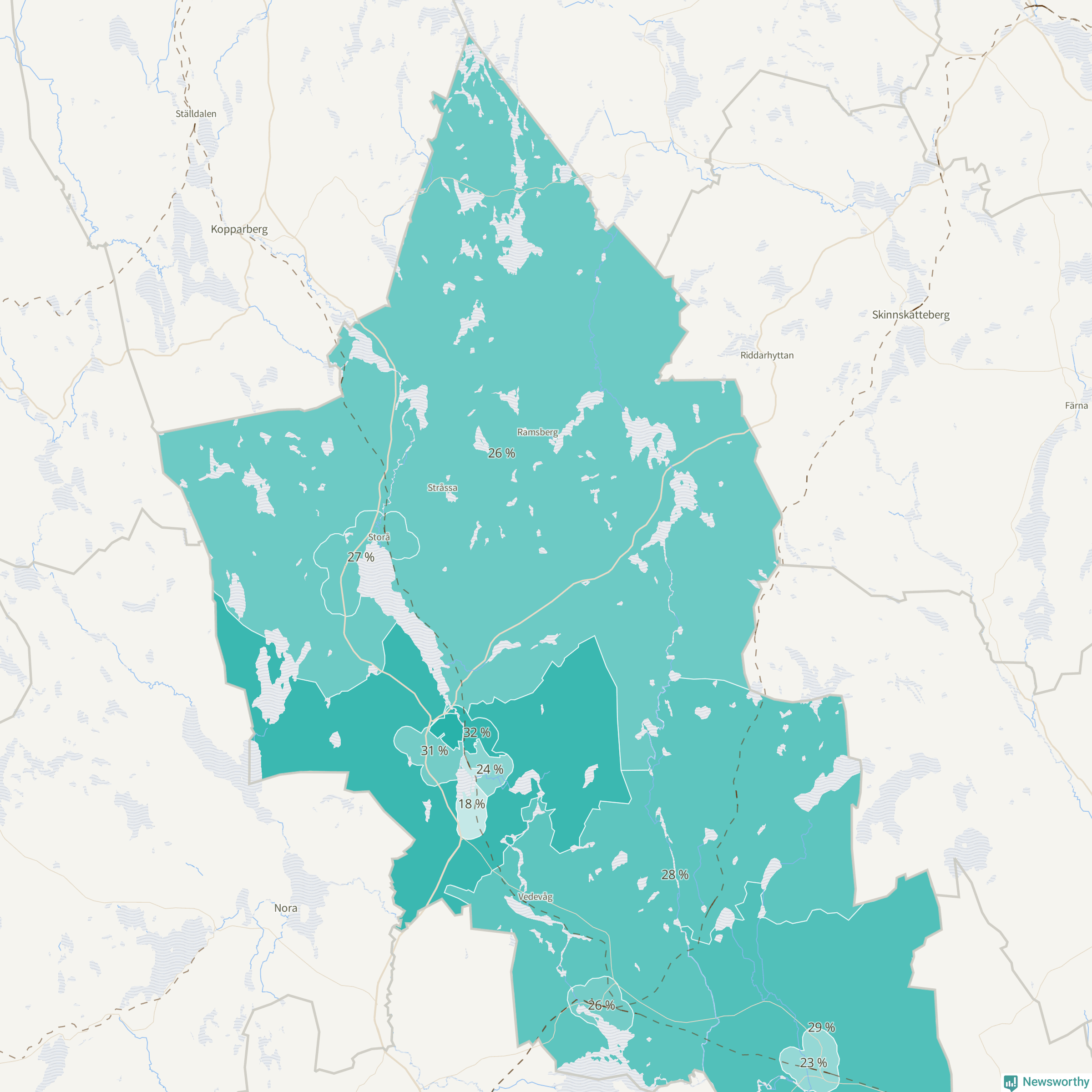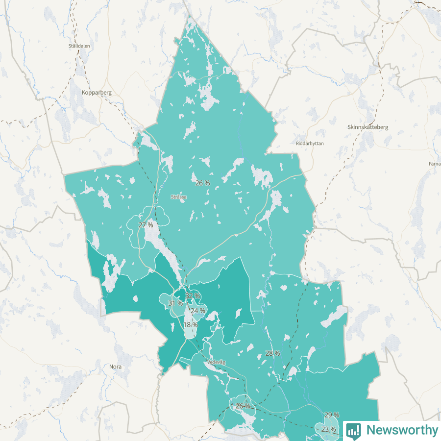 | Frövi landsbygd | 2 625 | 2 645 | +20 | +1 % ▸ |