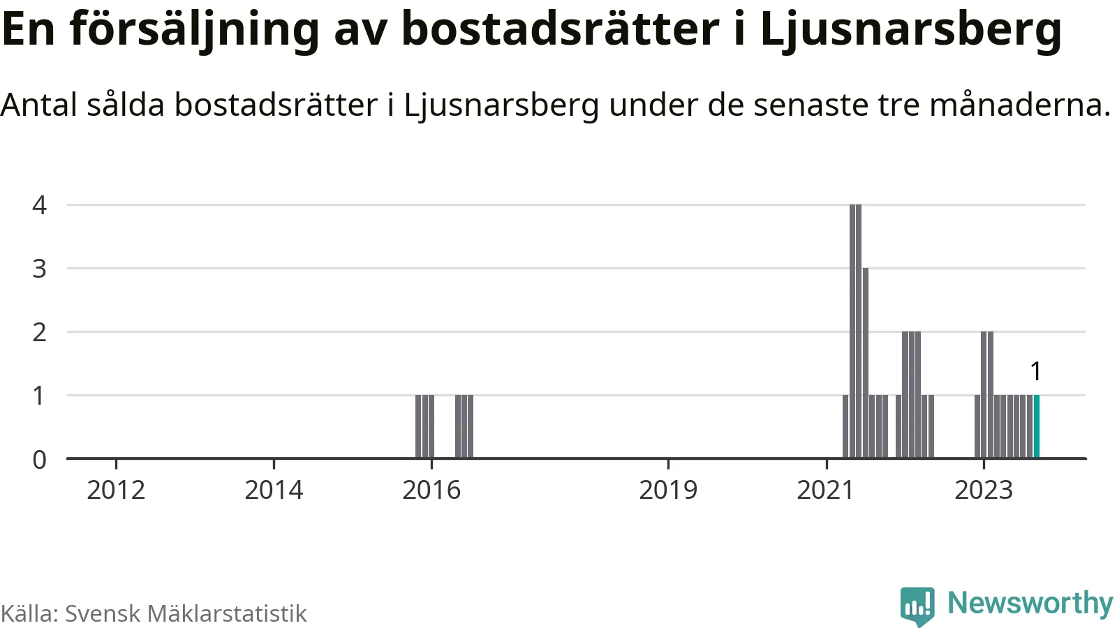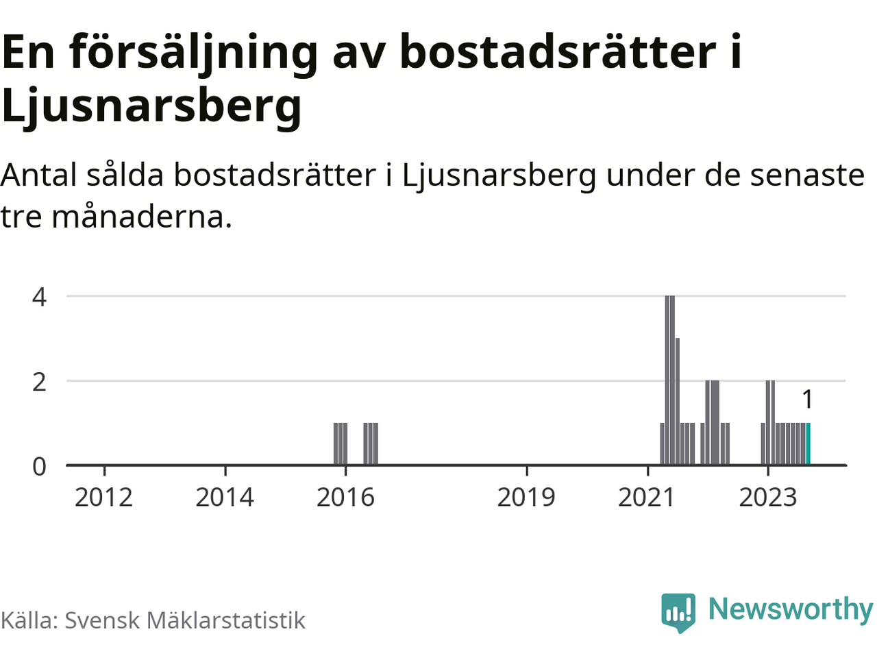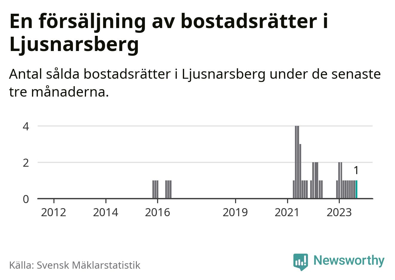 Mellan juli och september gjordes sammanlagt en affär med bostadsrätter i Ljusnarsbergs kommun.
