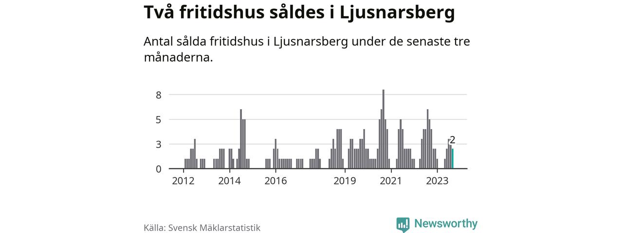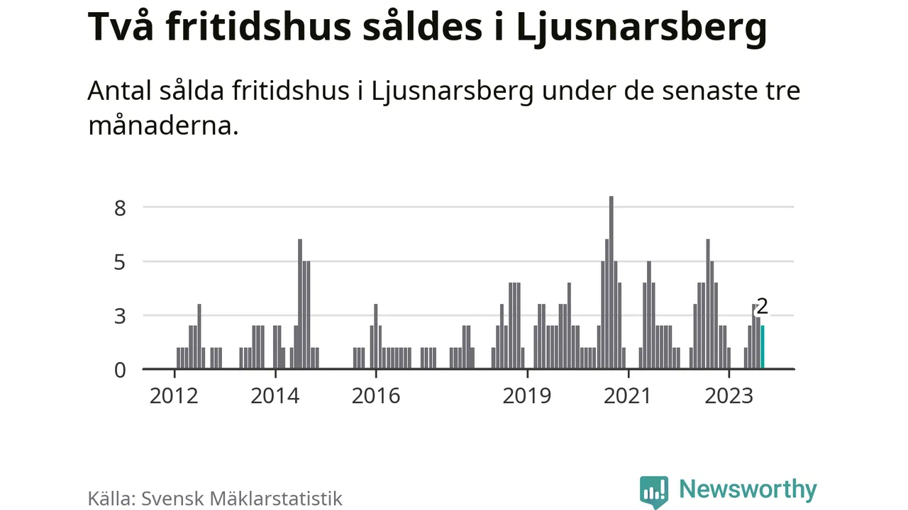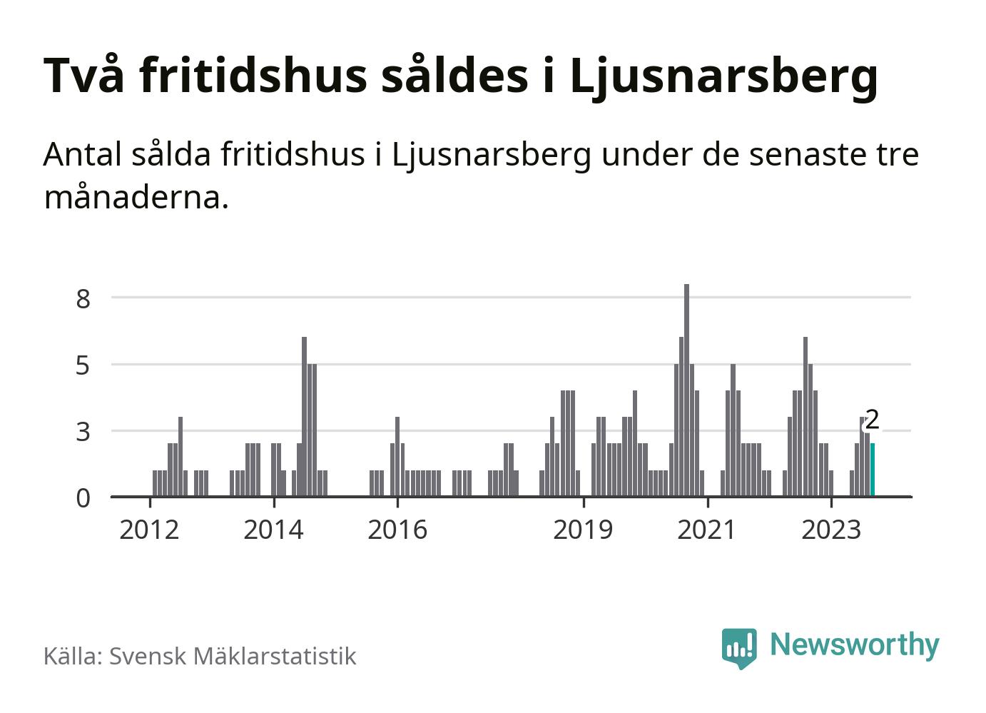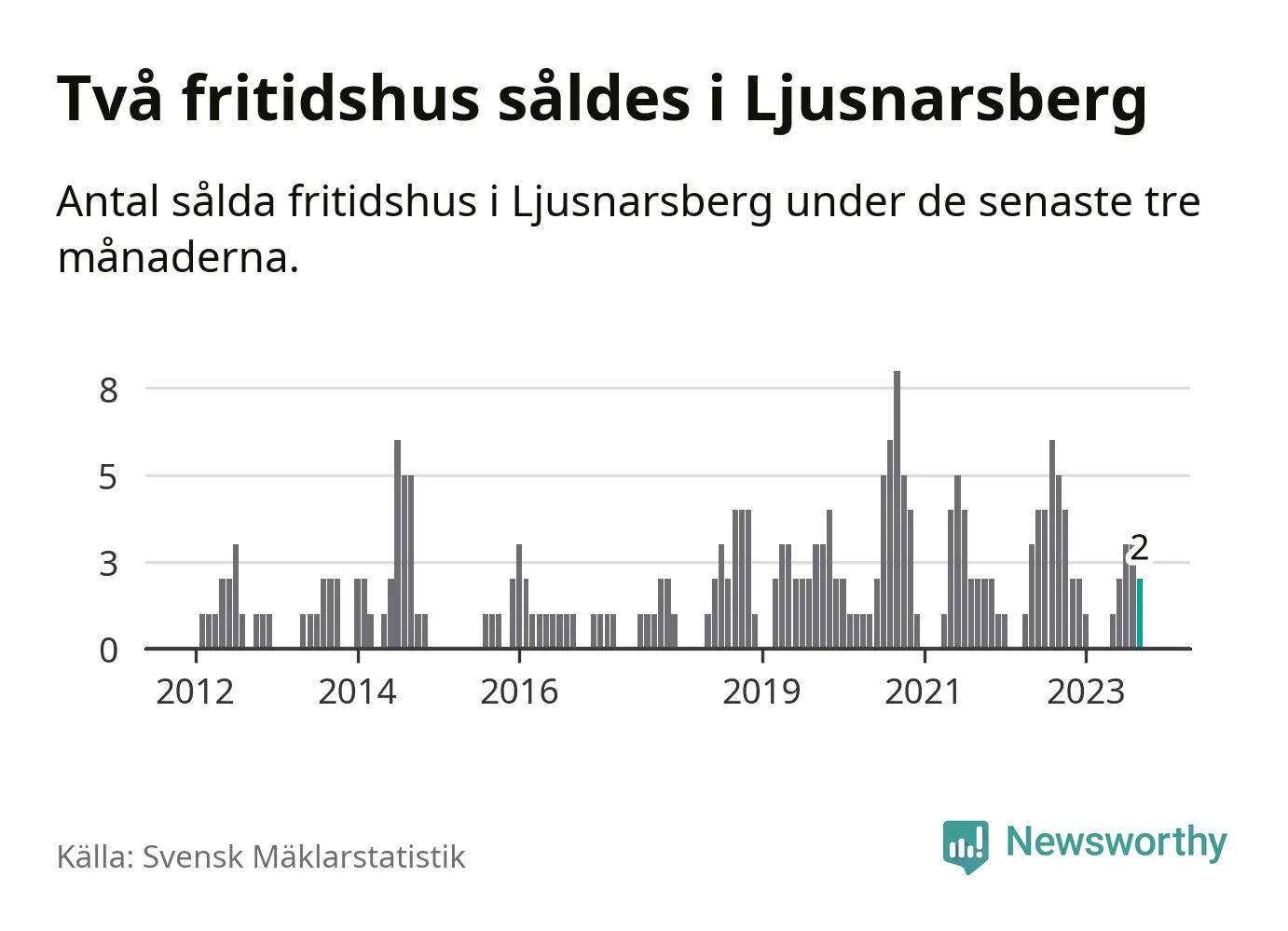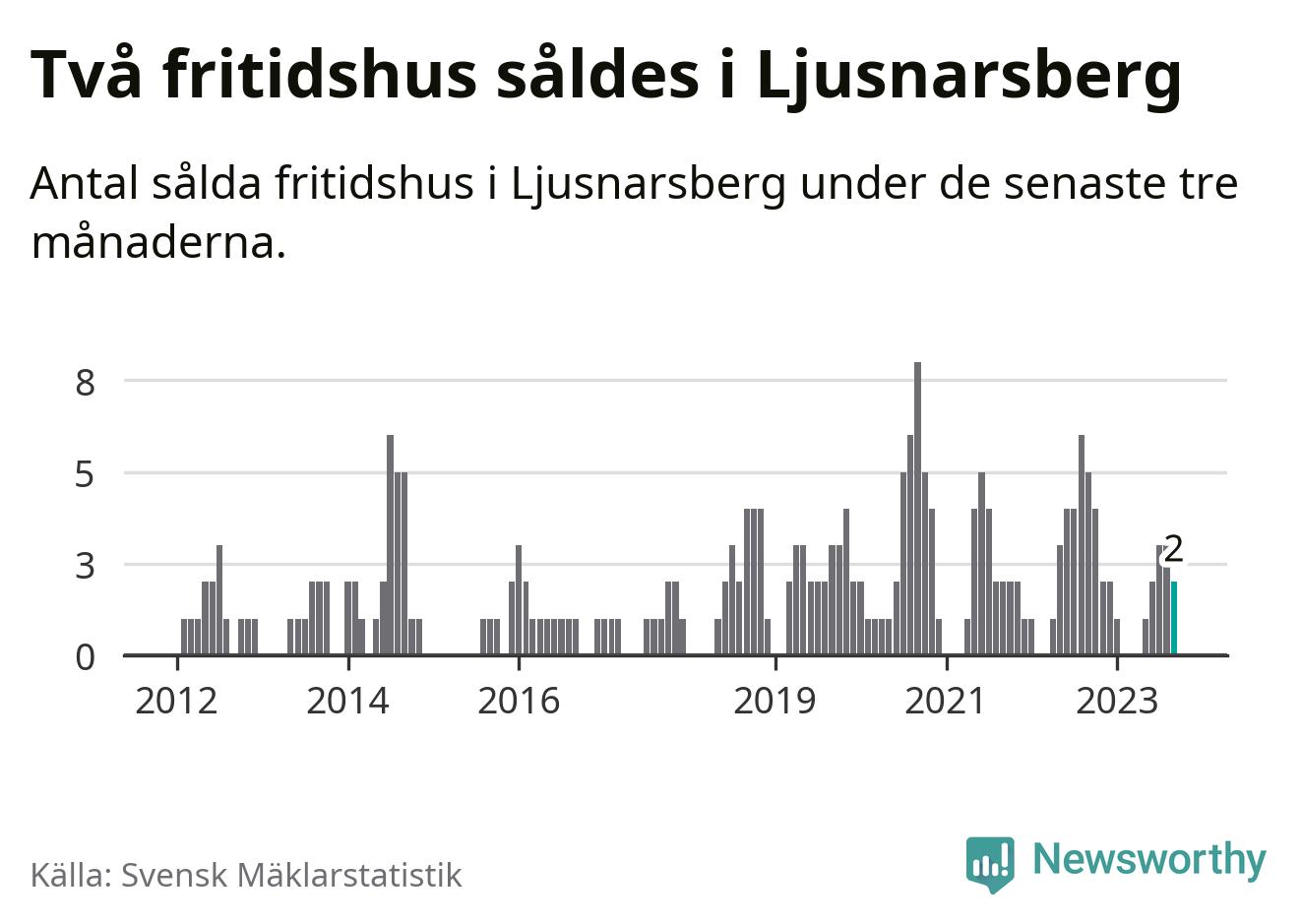 Mellan juli och september gjordes sammanlagt två affärer med fritidshus i Ljusnarsbergs kommun. Det kan jämföras med fem vid motsvarande tid i fjol.