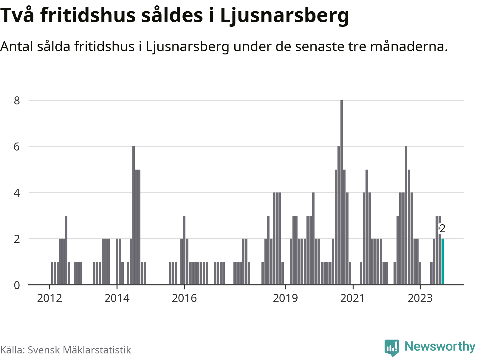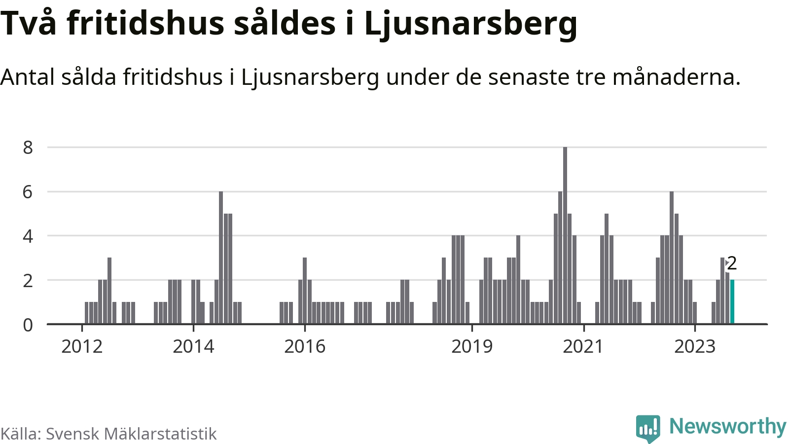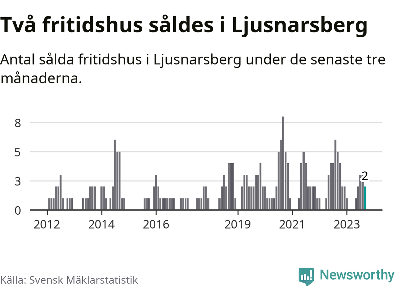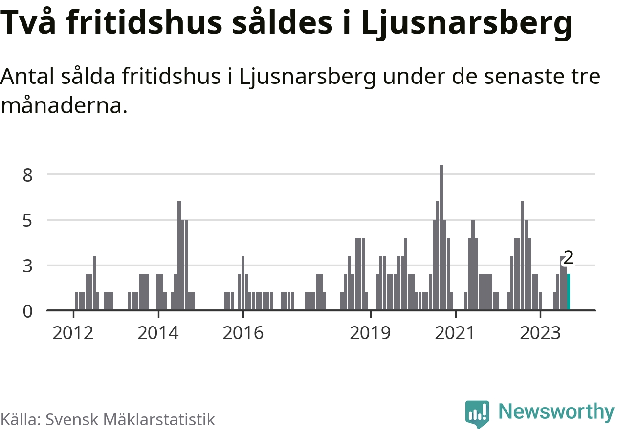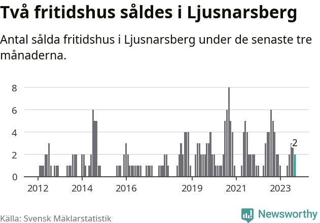 Mellan juli och september gjordes sammanlagt två affärer med fritidshus i Ljusnarsbergs kommun. Det kan jämföras med fem vid motsvarande tid i fjol.
