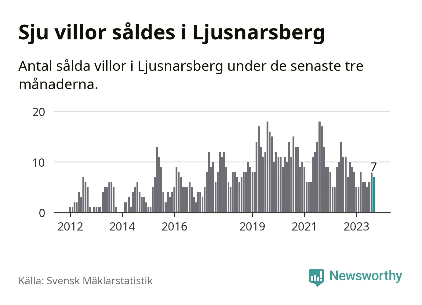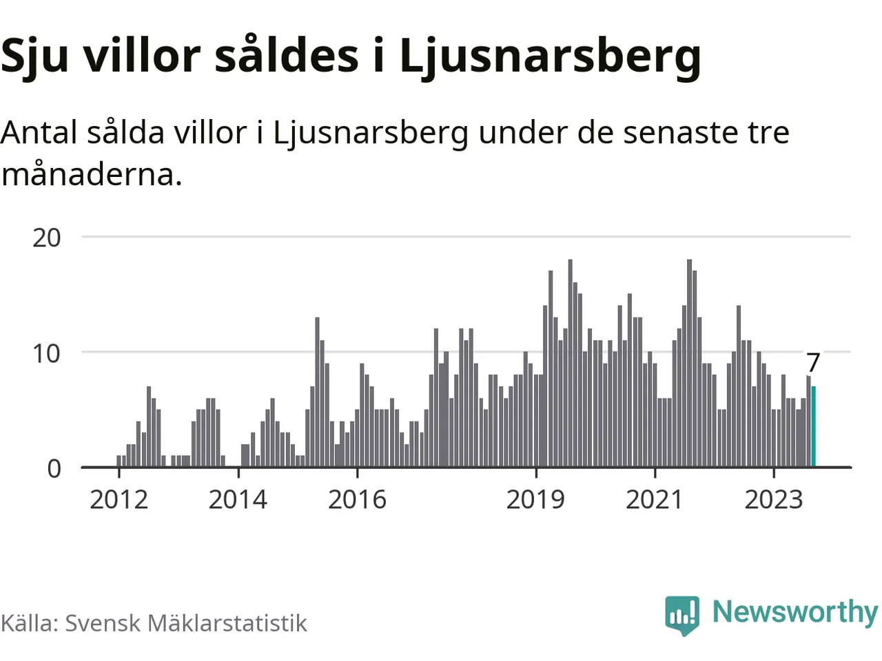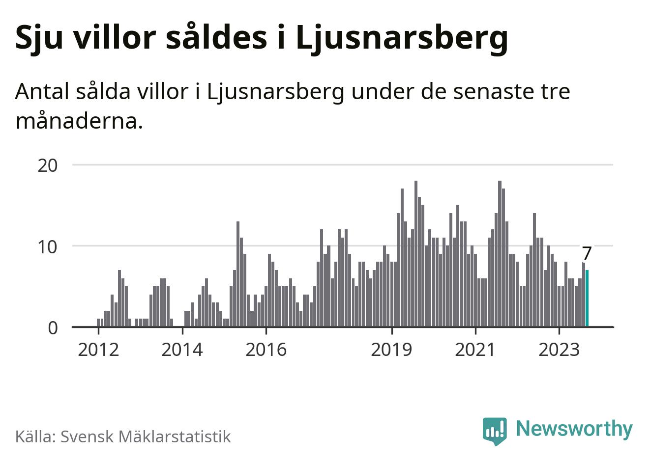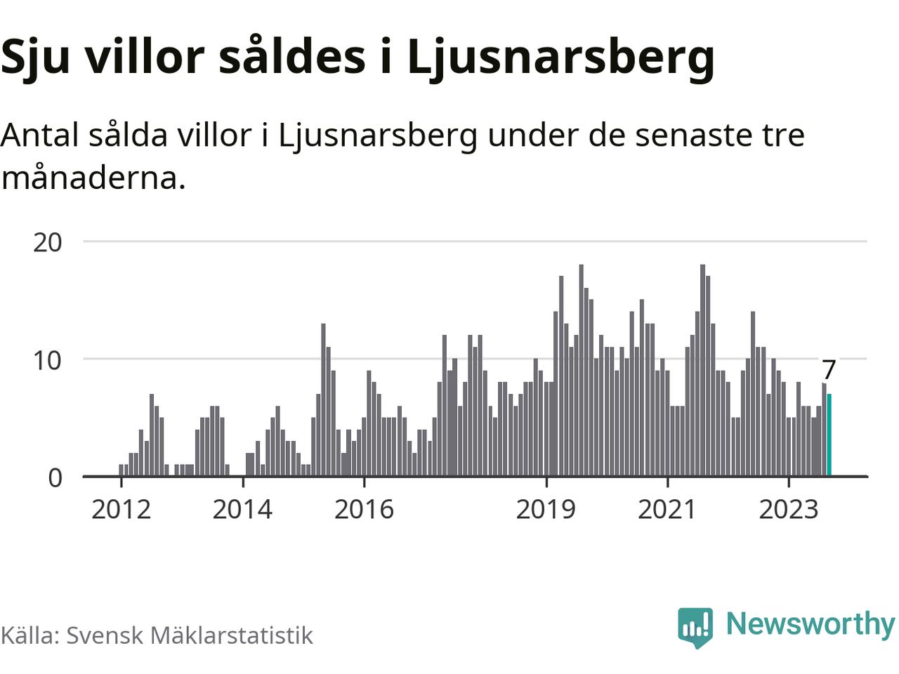 Mellan juli och september gjordes sammanlagt sju affärer med villor i Ljusnarsbergs kommun. Det är lika många affärer som vid motsvarande tid i fjol.