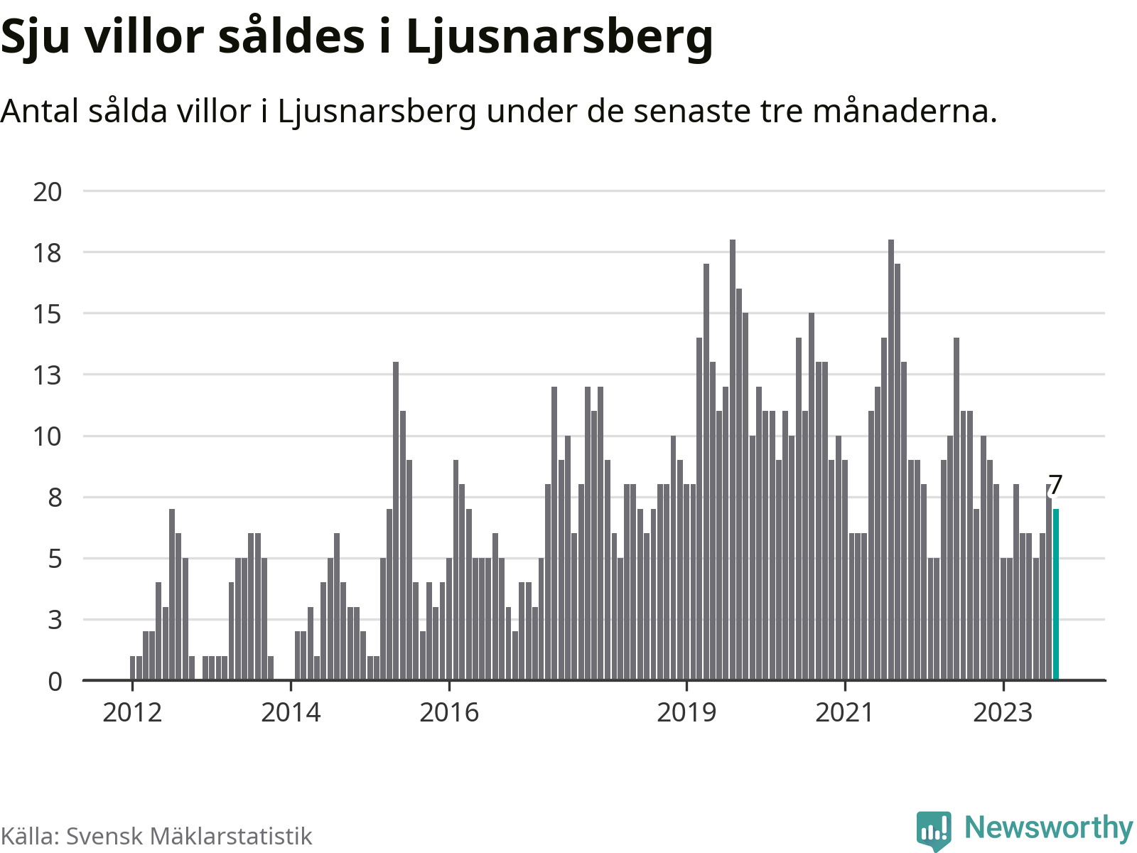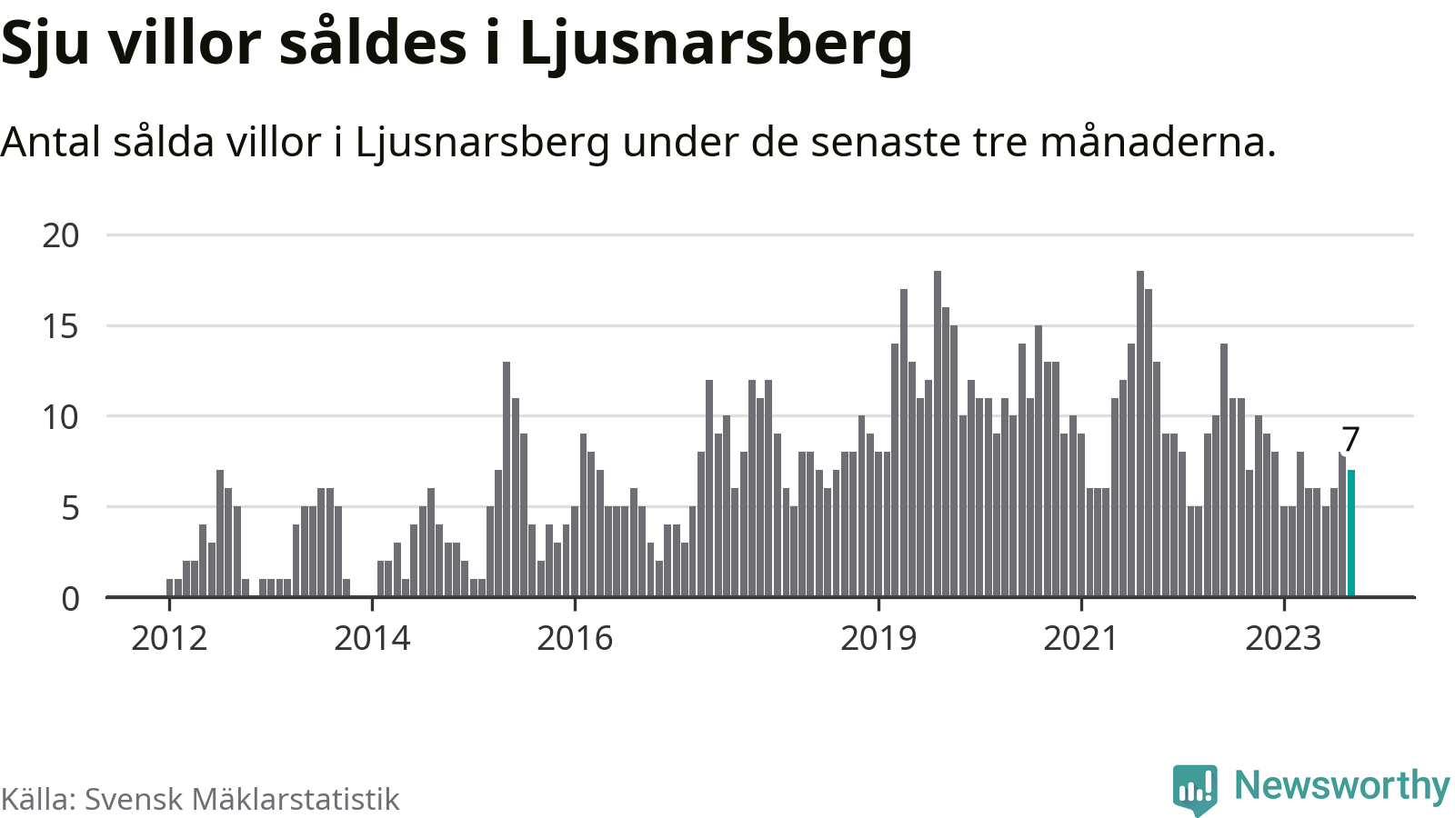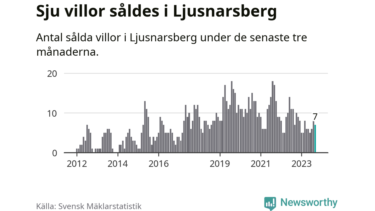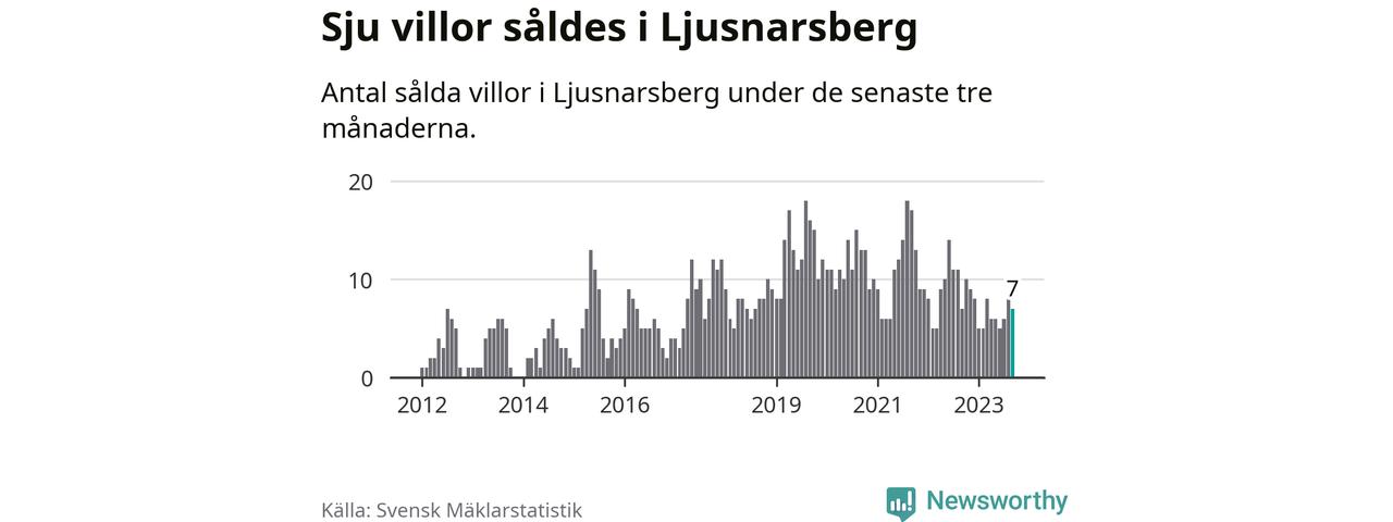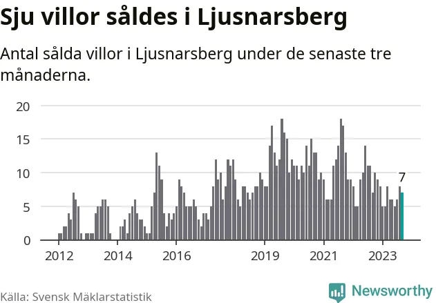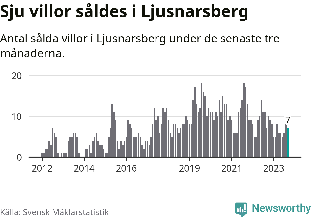 Mellan juli och september gjordes sammanlagt sju affärer med villor i Ljusnarsbergs kommun. Det är lika många affärer som vid motsvarande tid i fjol.