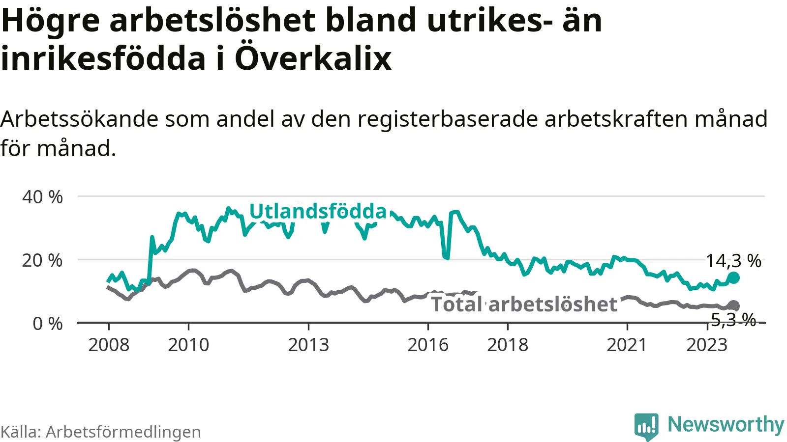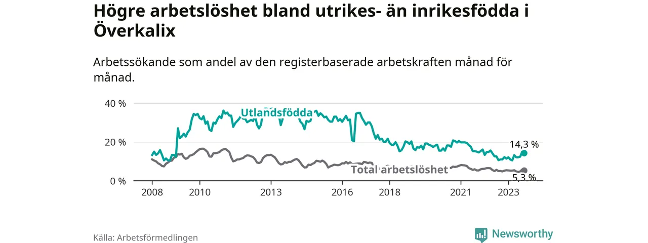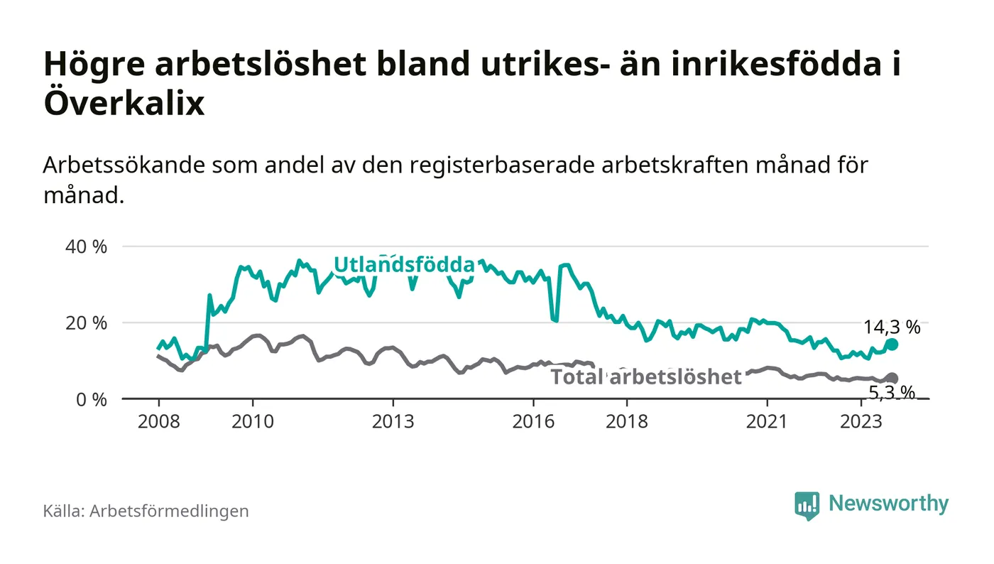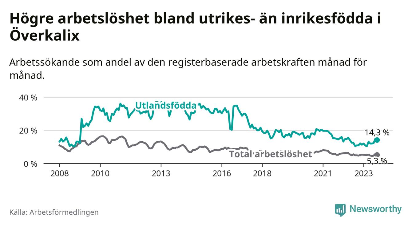 Läs mer om arbetslösheten bland utlandsfödda längre ner i den här texten.
