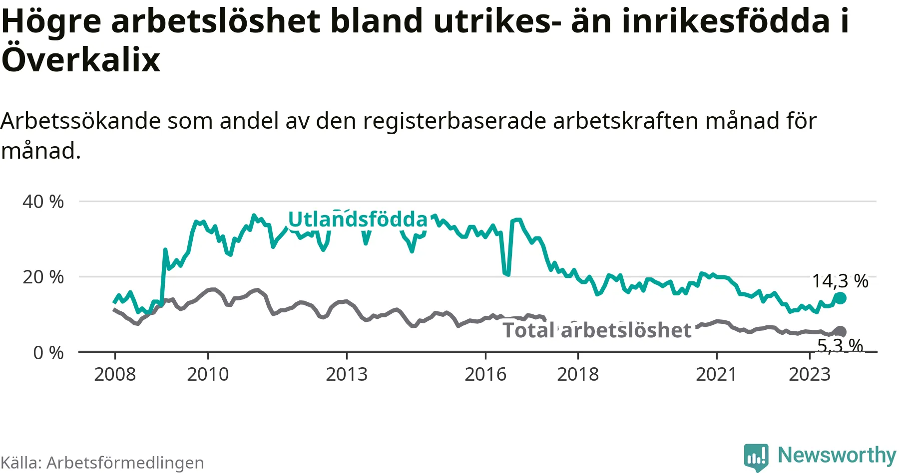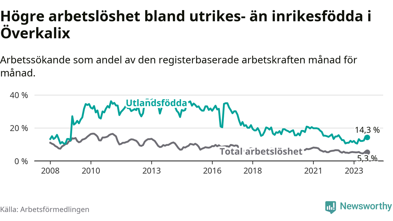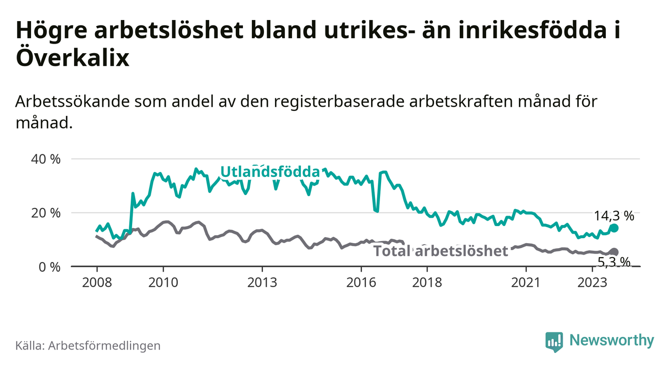 Läs mer om arbetslösheten bland utlandsfödda längre ner i den här texten.