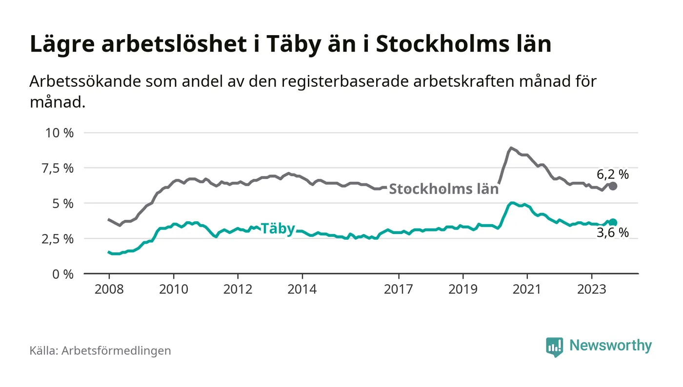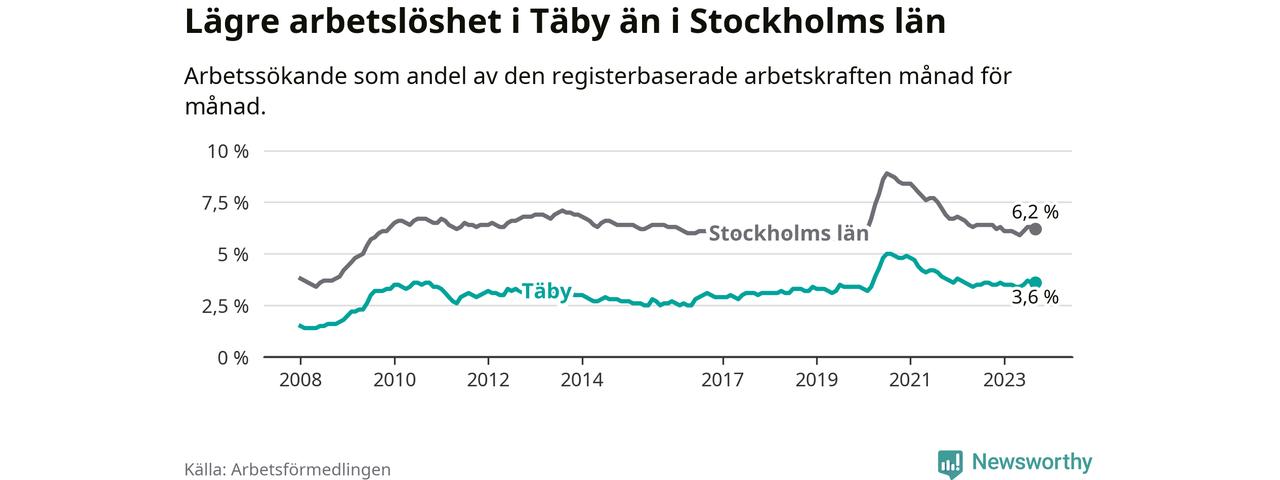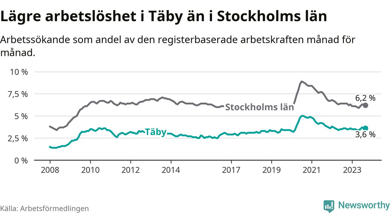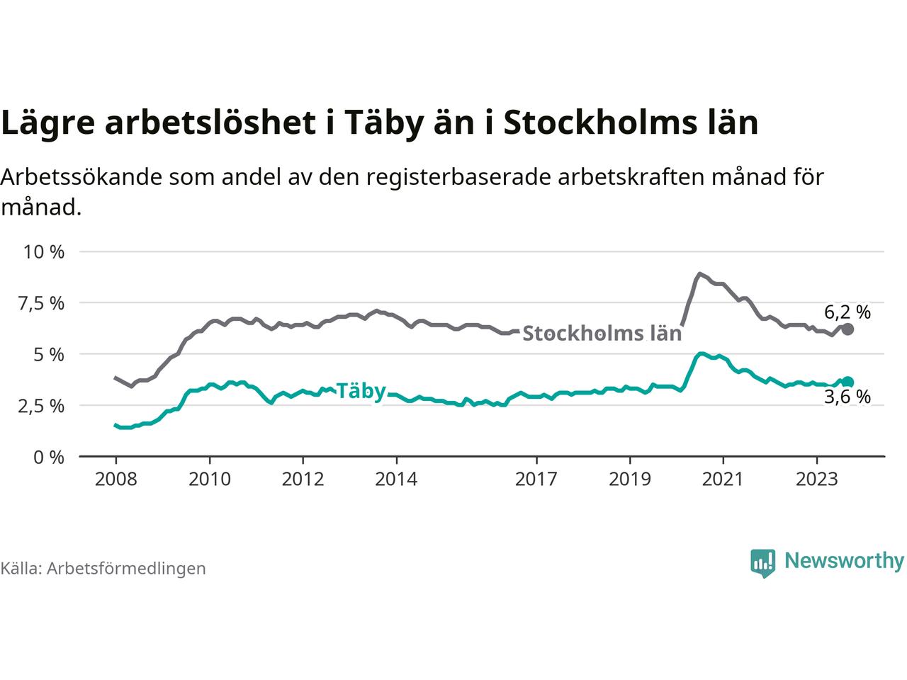 Graf: Arbetslöshet i Täby kommun och Stockholms län