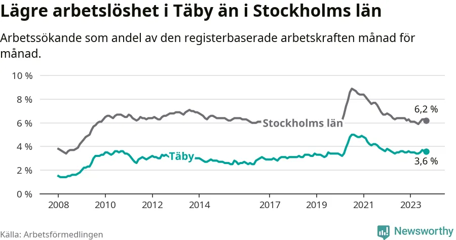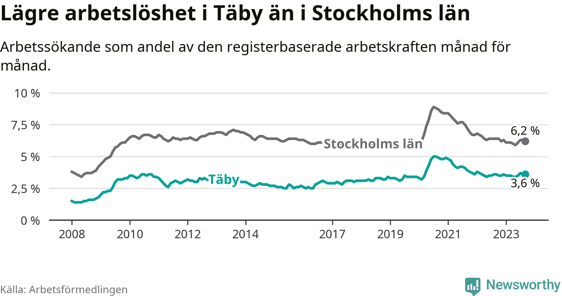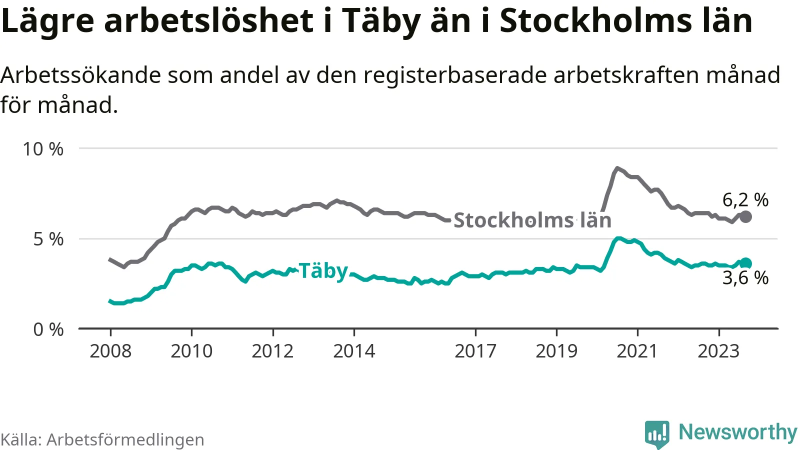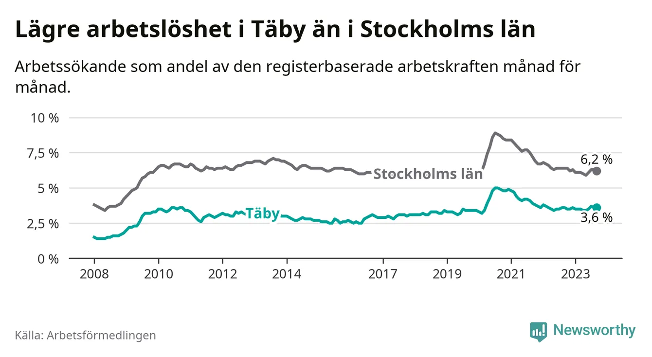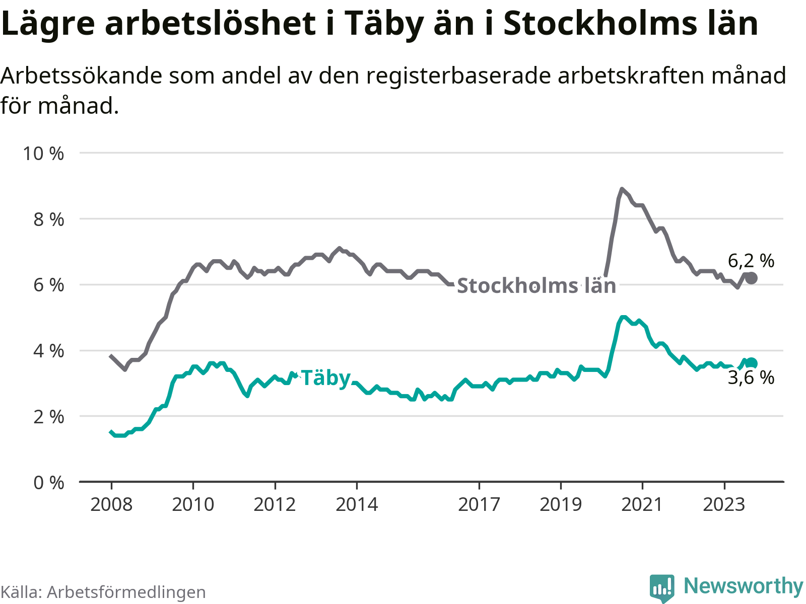 Graf: Arbetslöshet i Täby kommun och Stockholms län