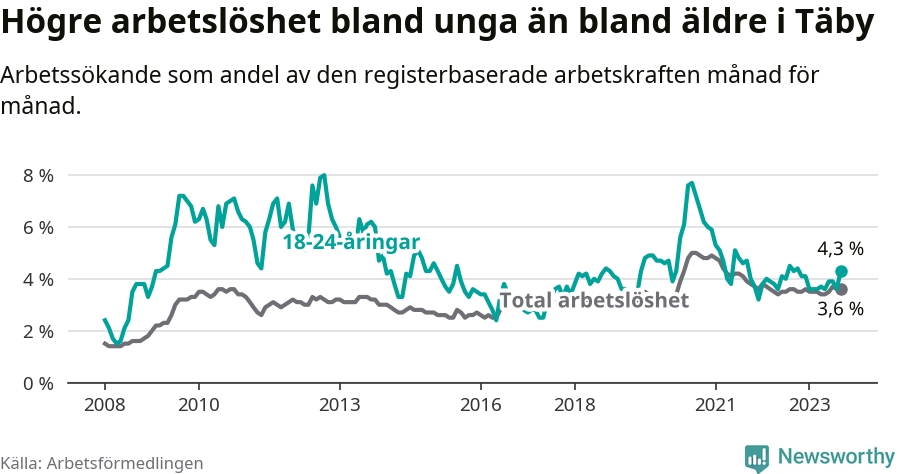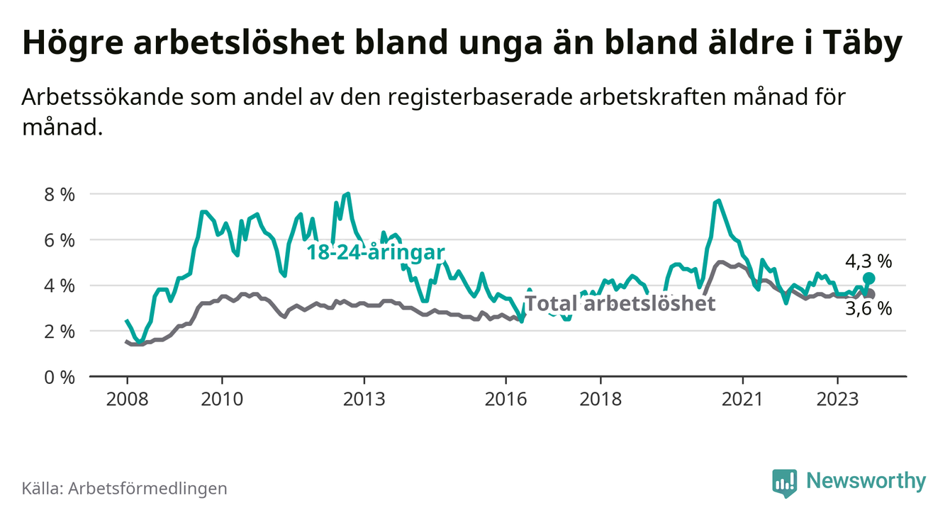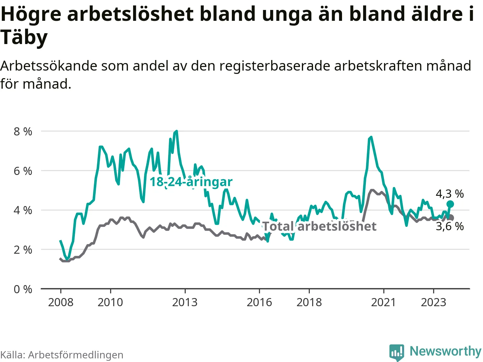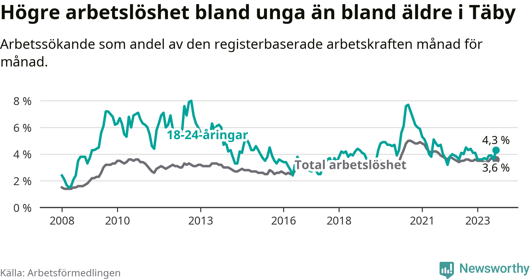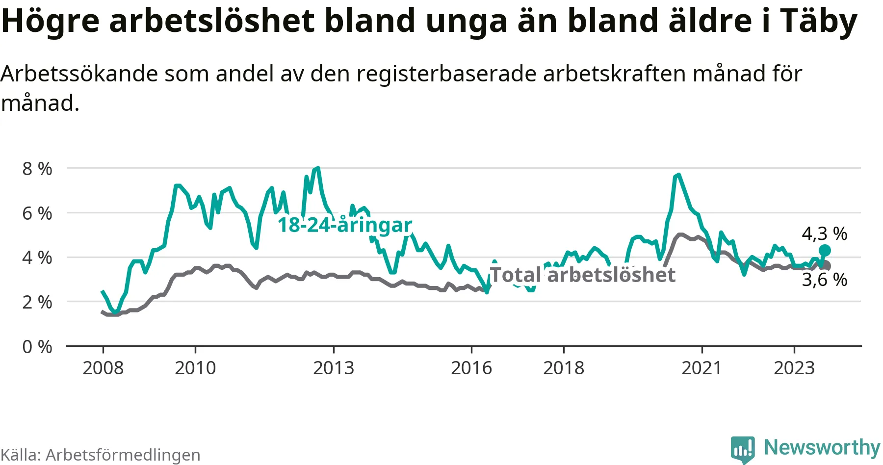 Graf: Arbetslöshet bland unga i Täby kommun och Stockholms län