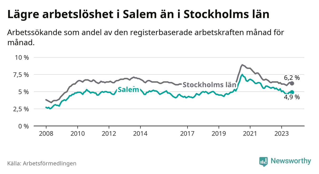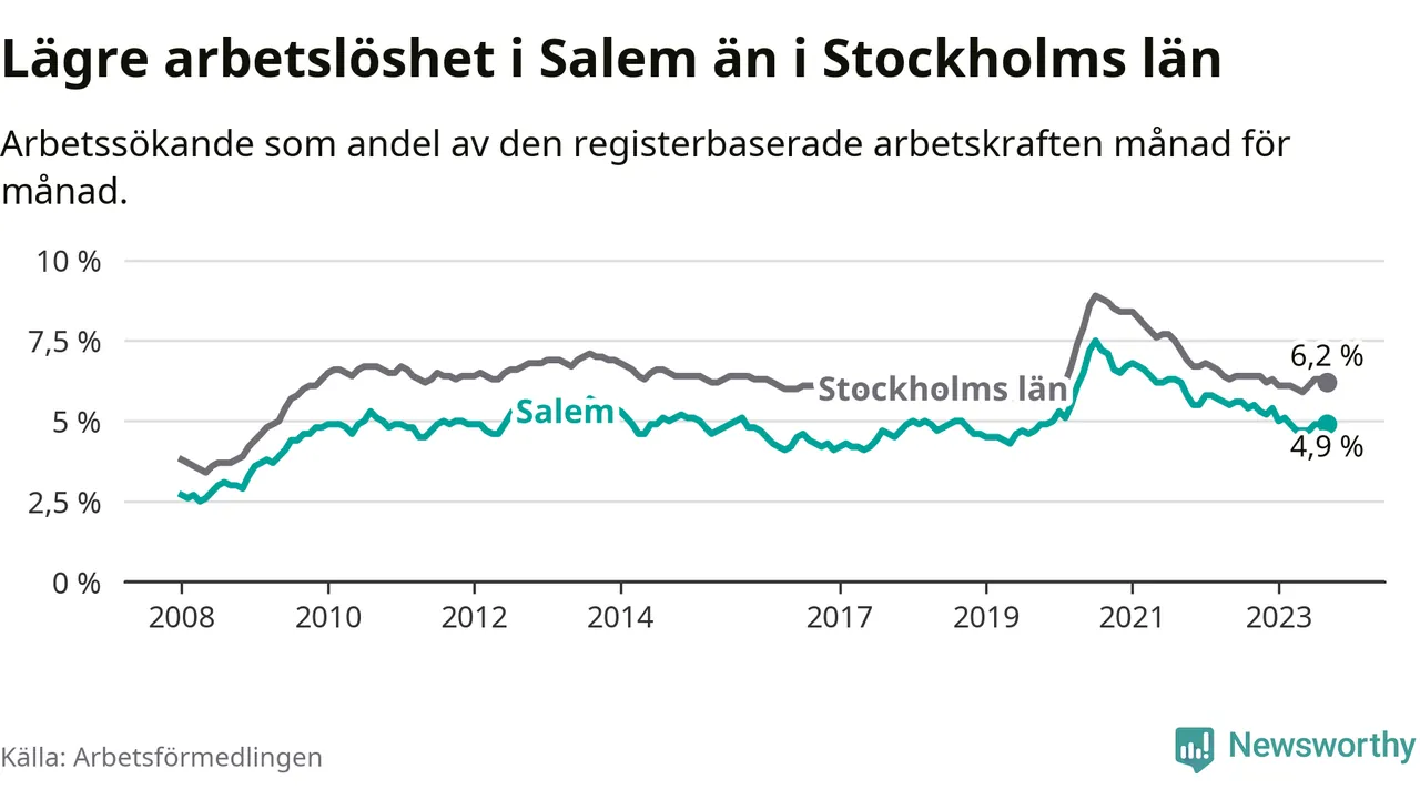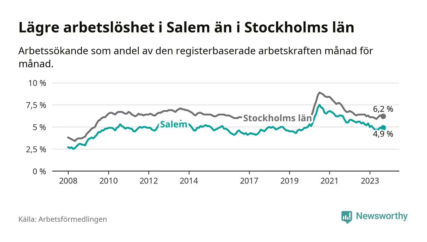Arbetslösheten i Salem faller mer än i andra kommuner i Stockholms län