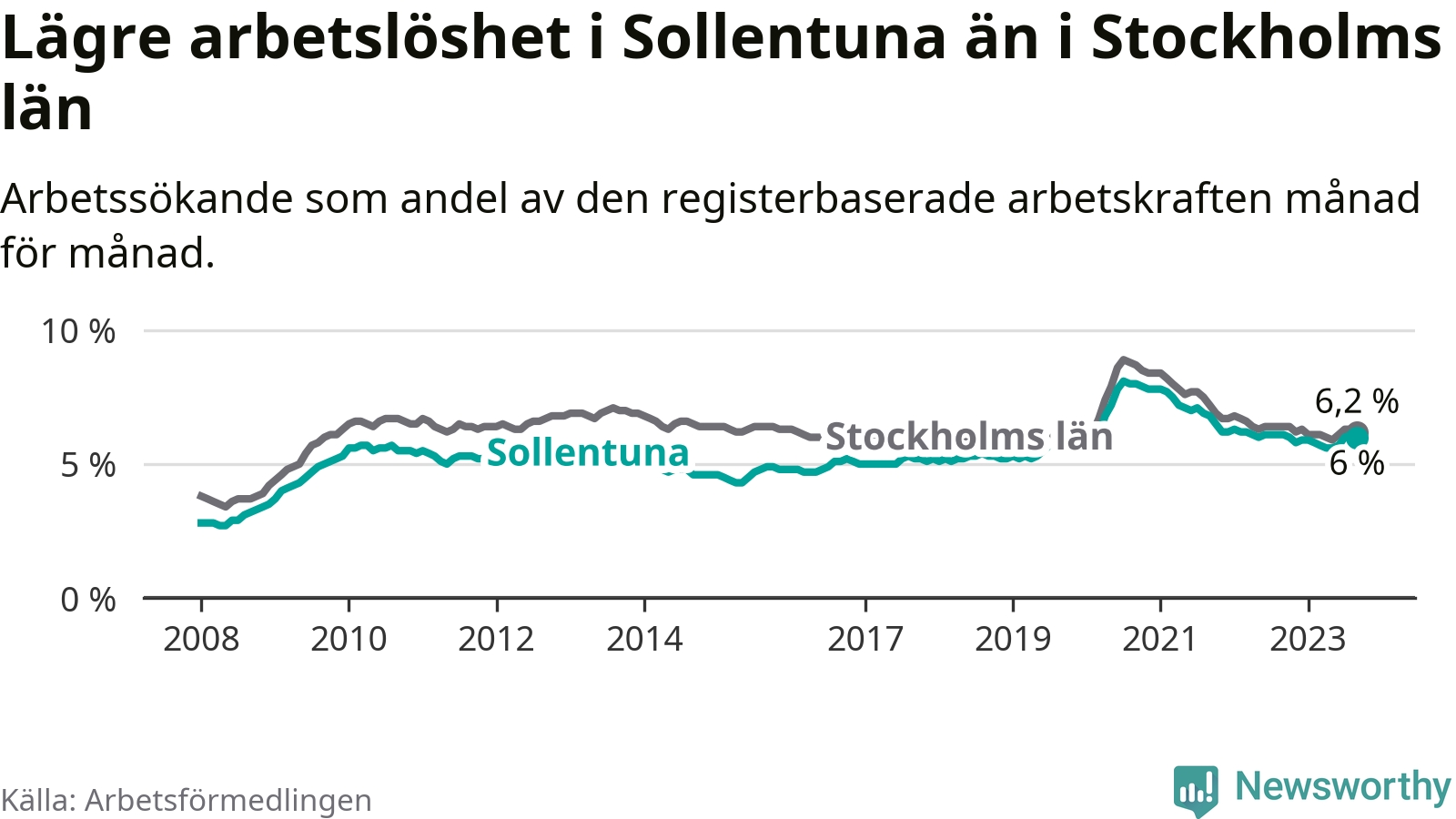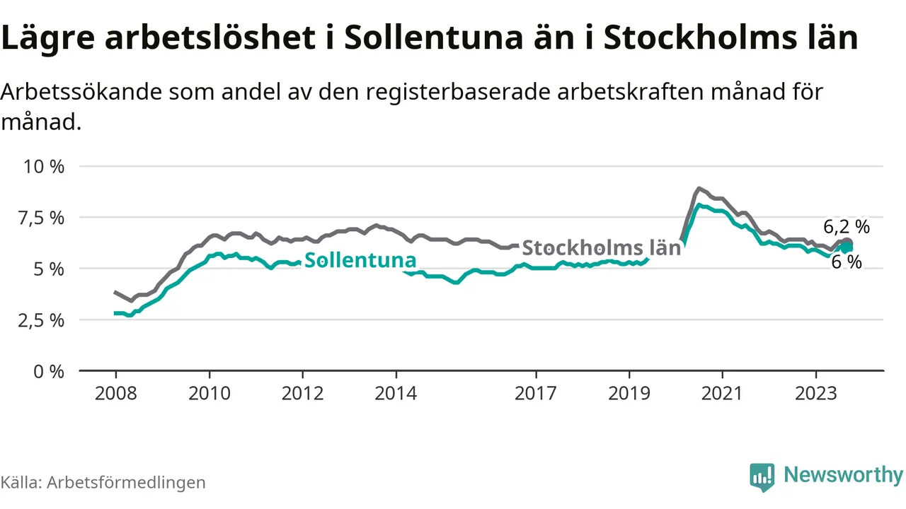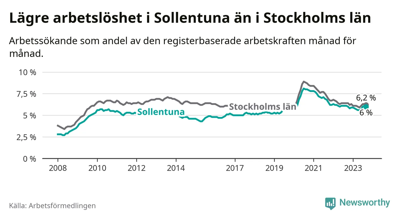| Sollentuna | 6,0 % | −0,1 % ▼ |