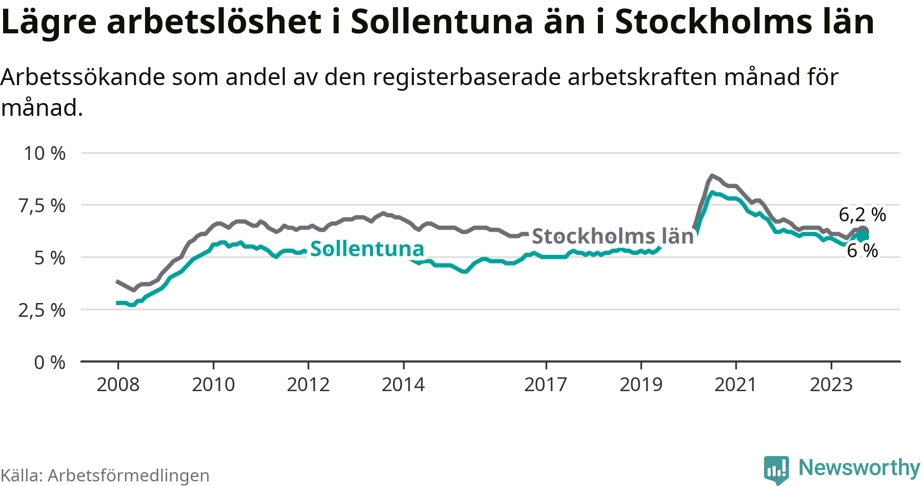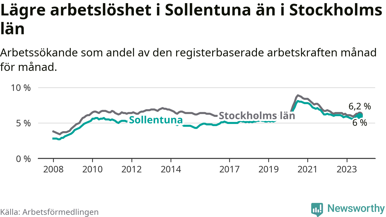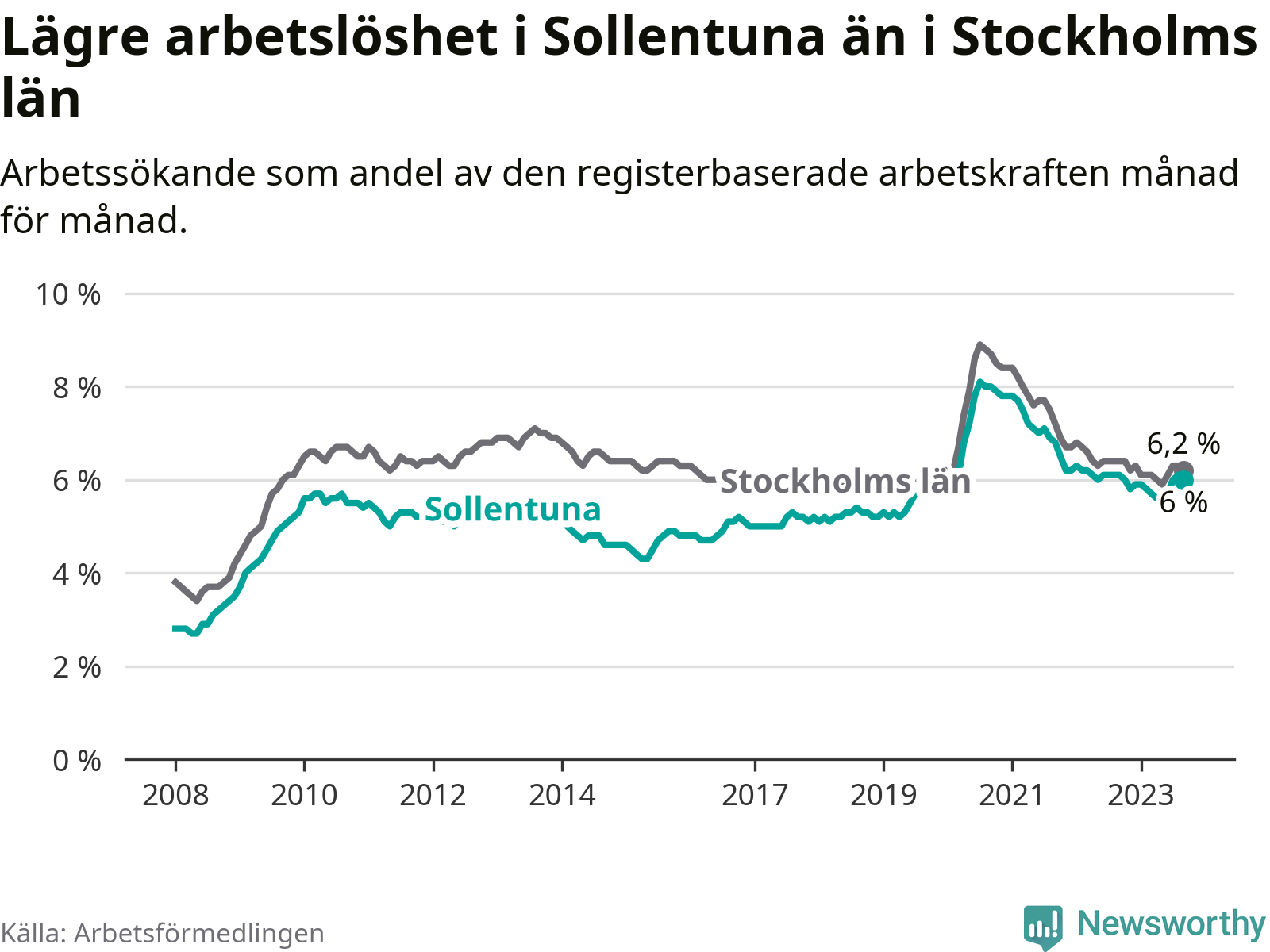 | Sollentuna | 6,0 % | −0,1 % ▼ |
