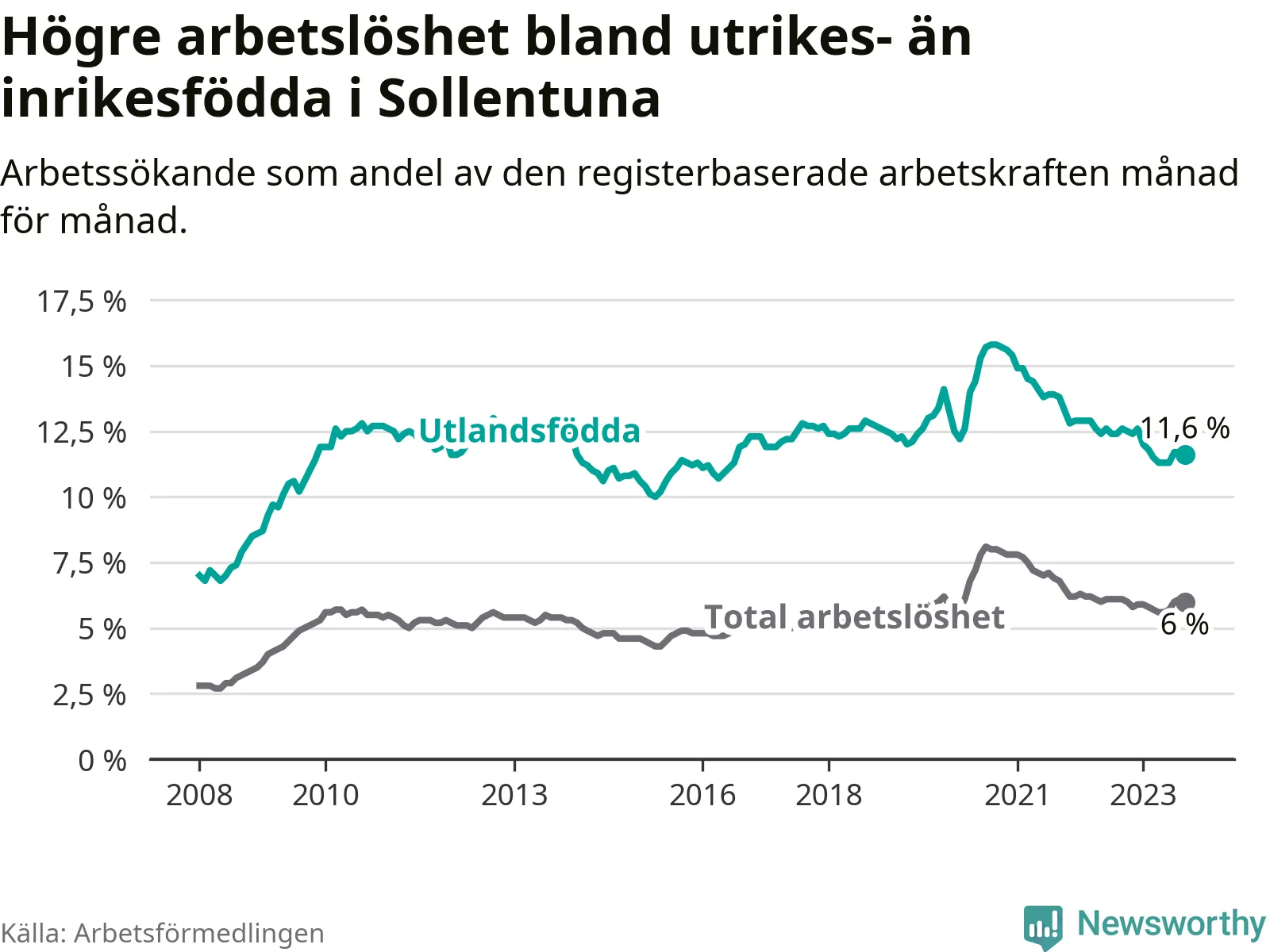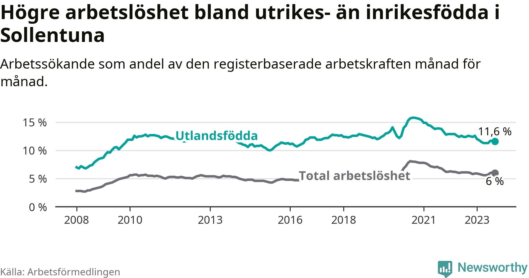 Läs mer om arbetslösheten bland utlandsfödda längre ner i den här texten.