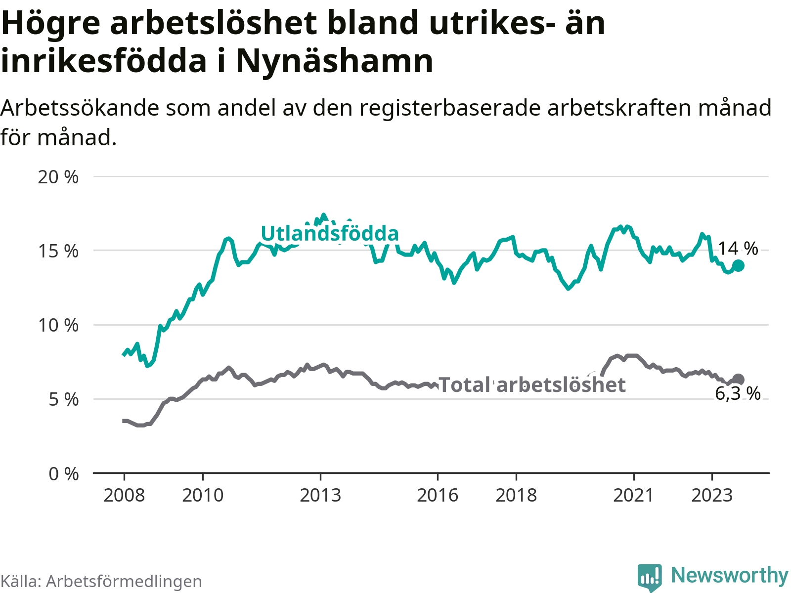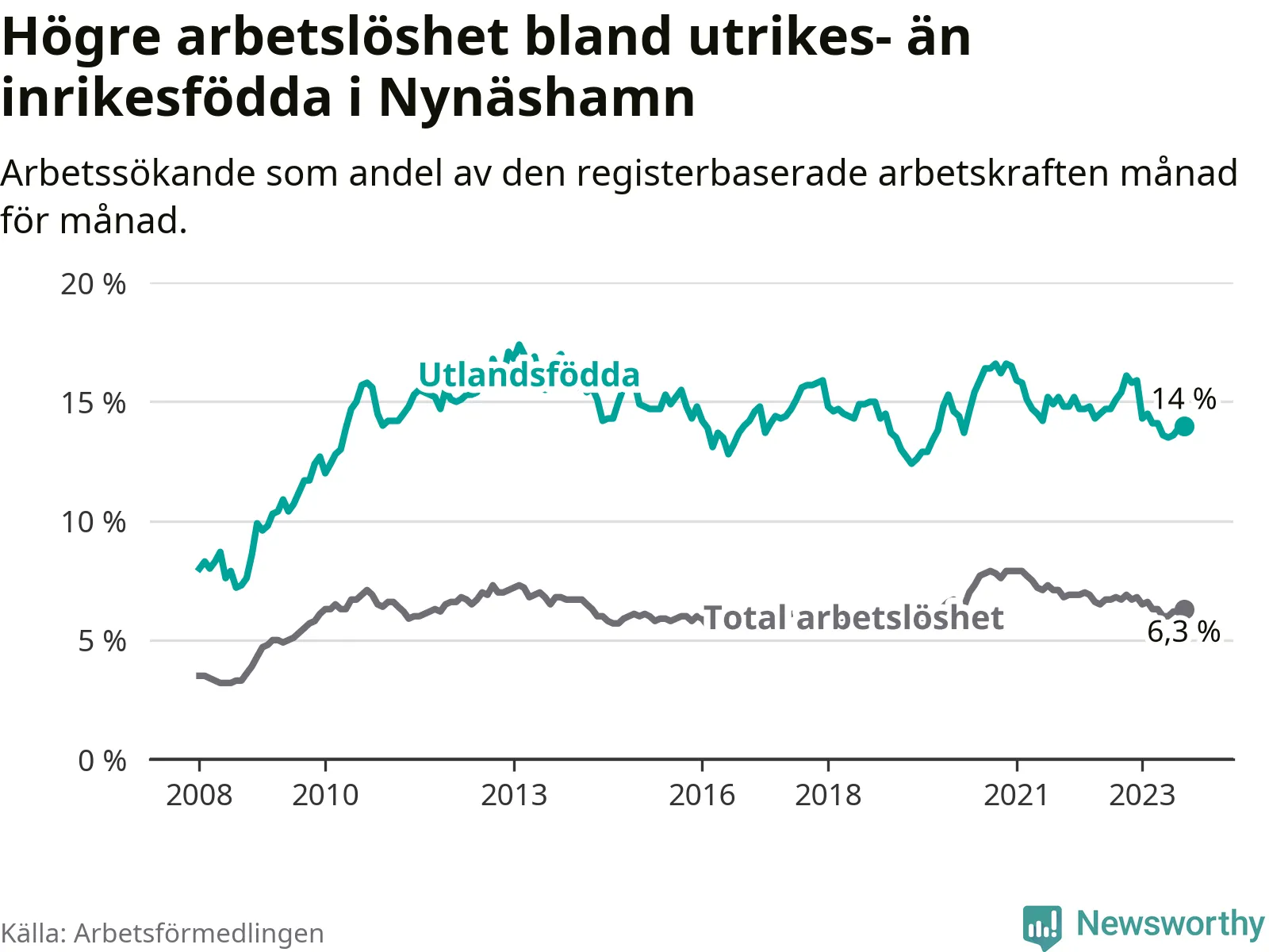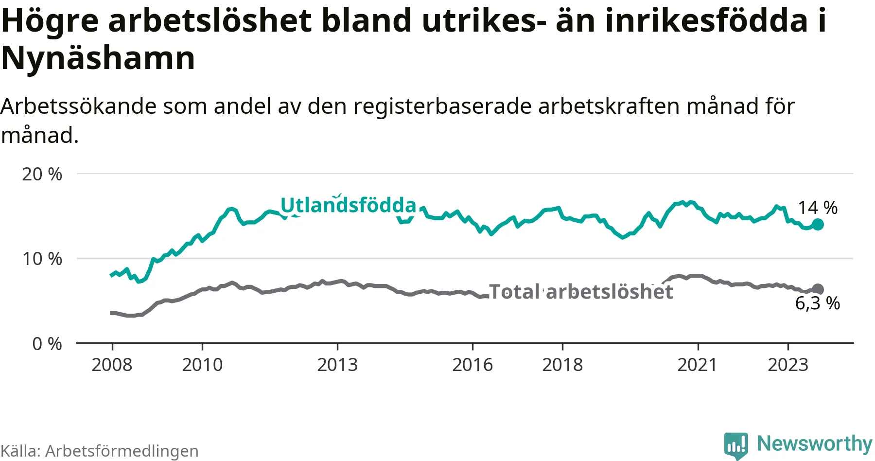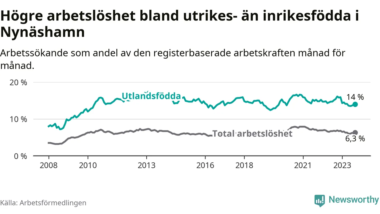 Läs mer om arbetslösheten bland utlandsfödda längre ner i den här texten.
