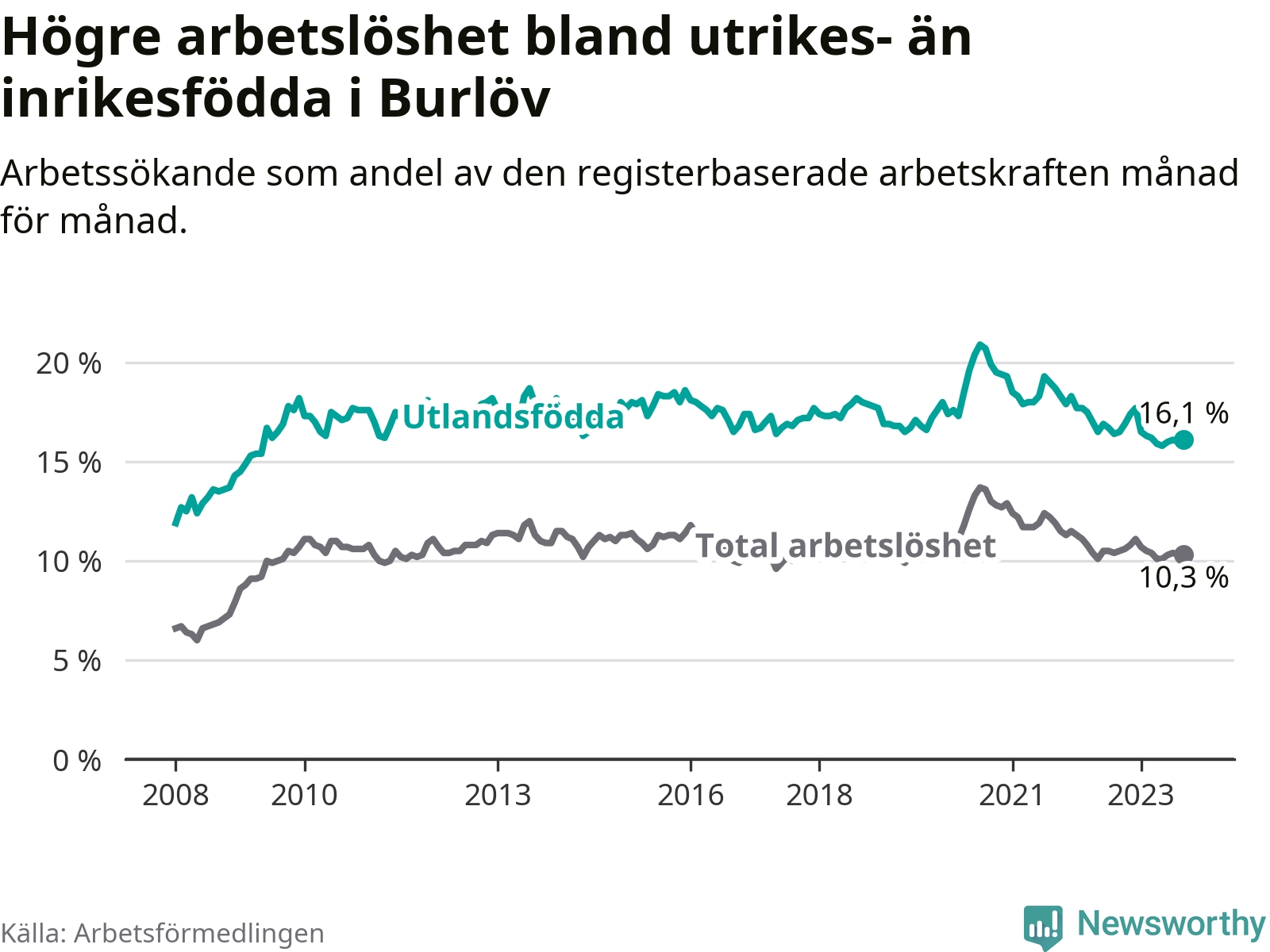 Läs mer om arbetslösheten bland utlandsfödda längre ner i den här texten.