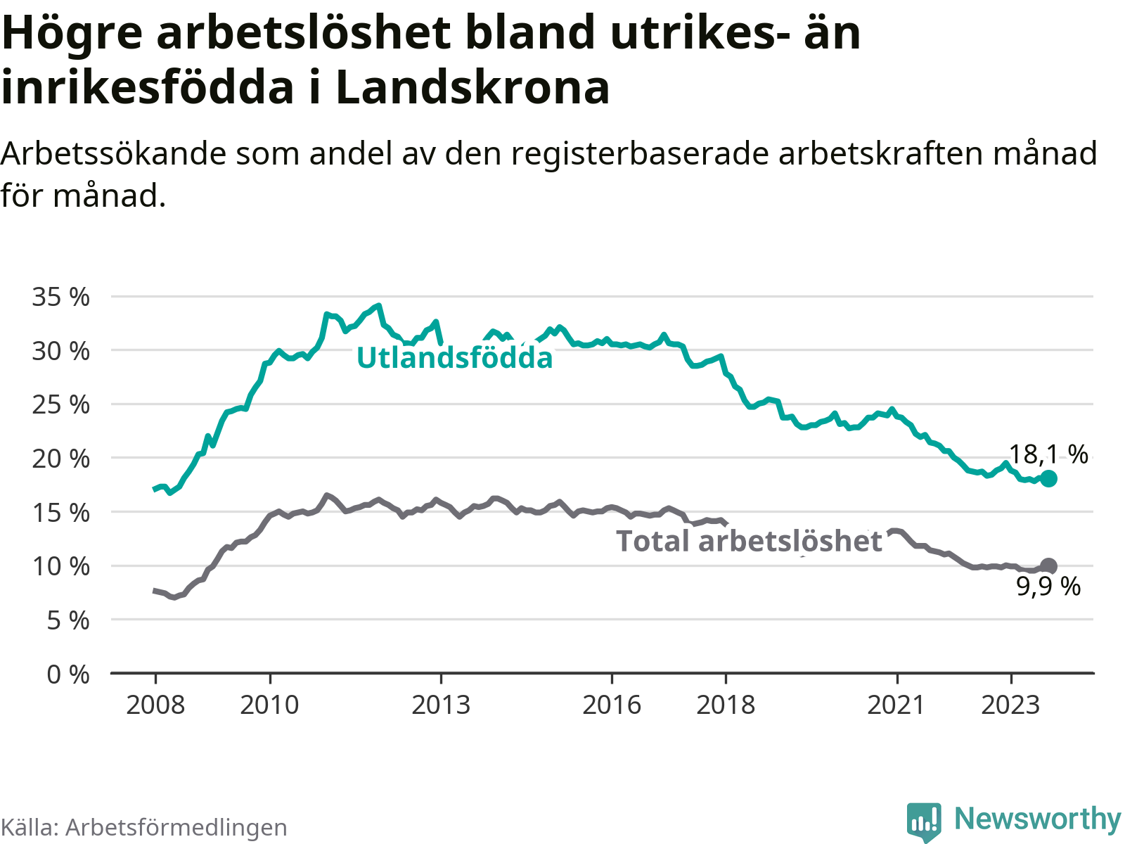 Läs mer om arbetslösheten bland utlandsfödda längre ner i den här texten.