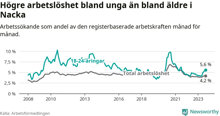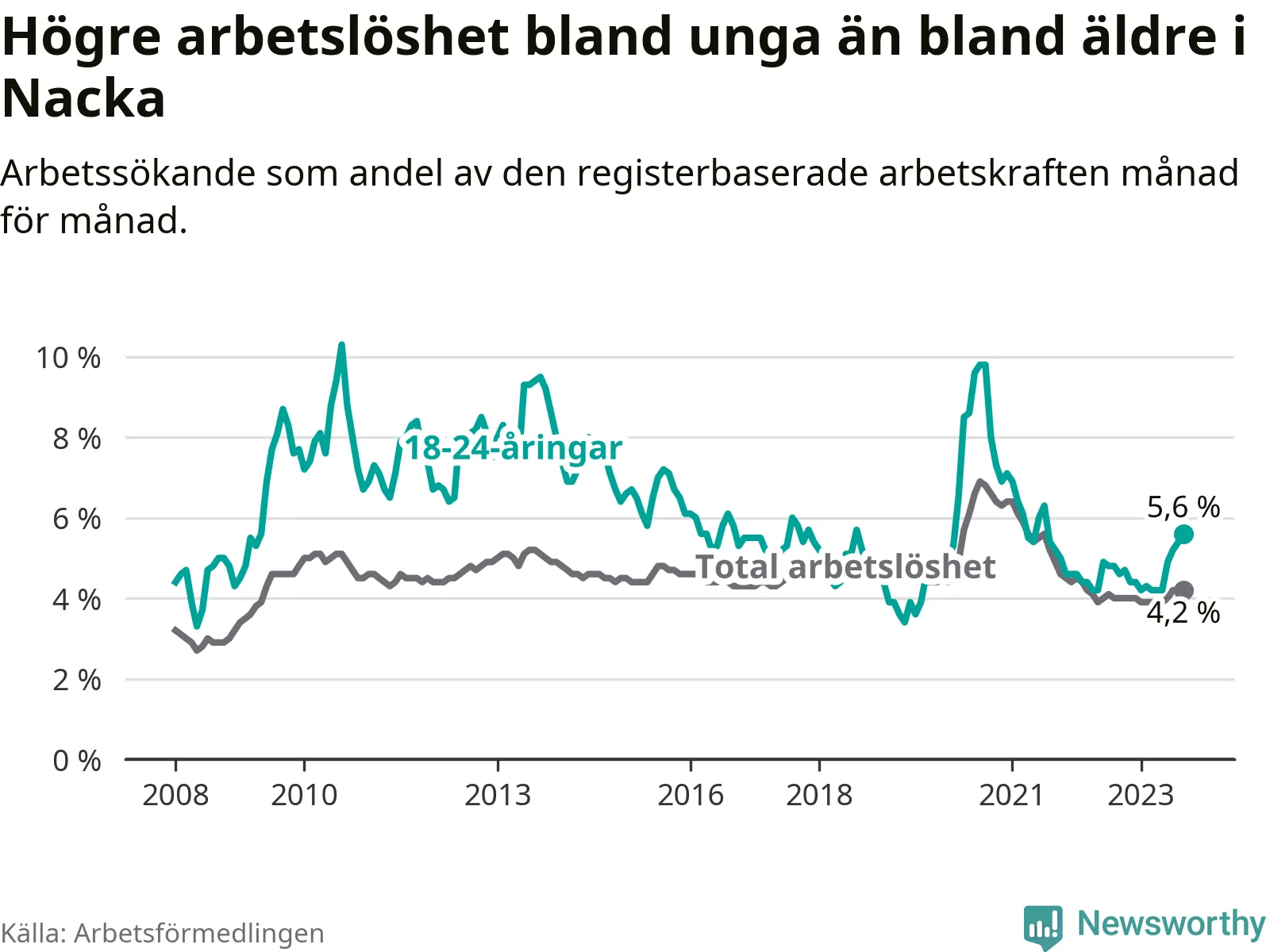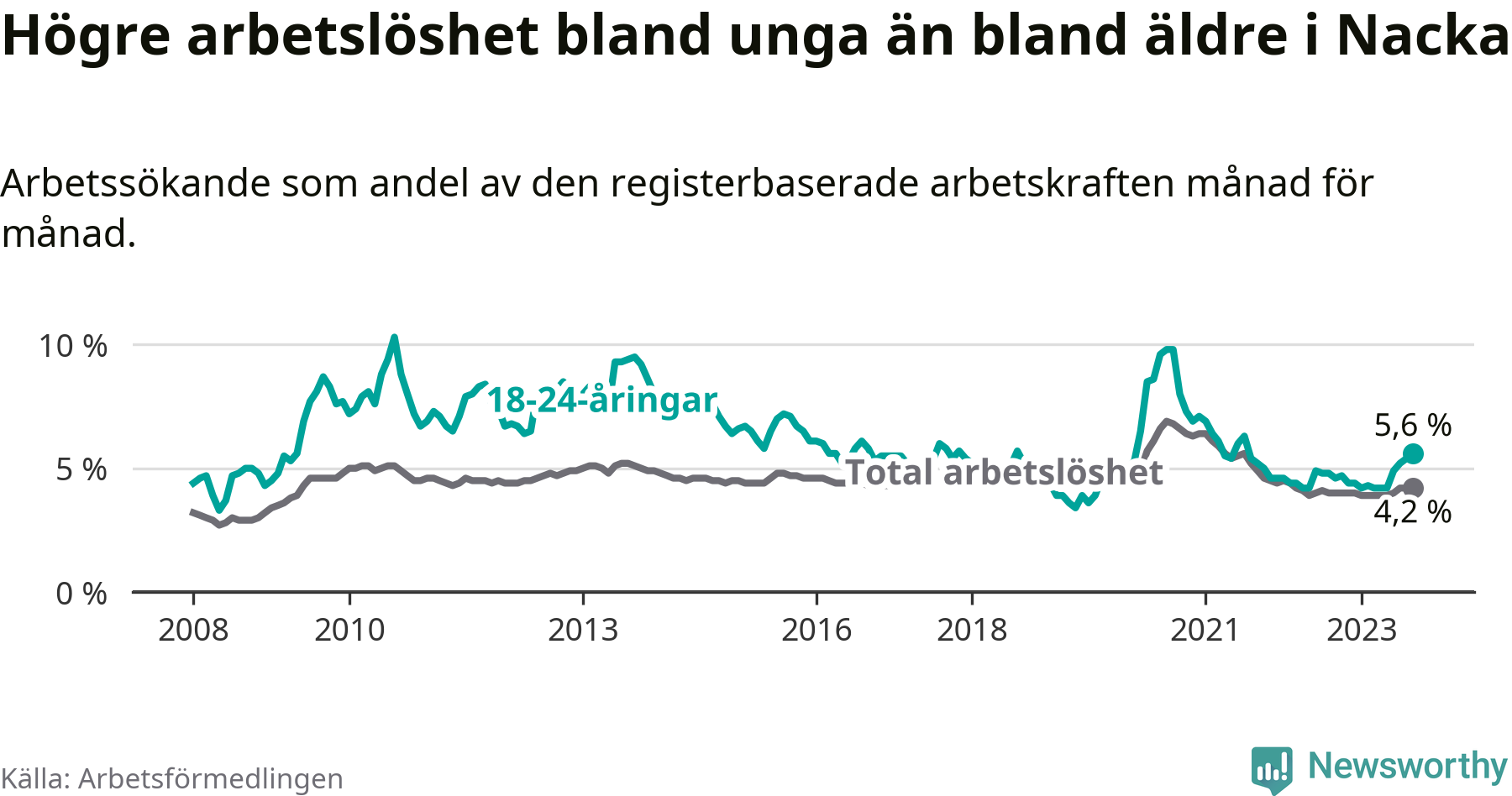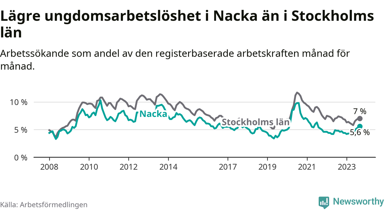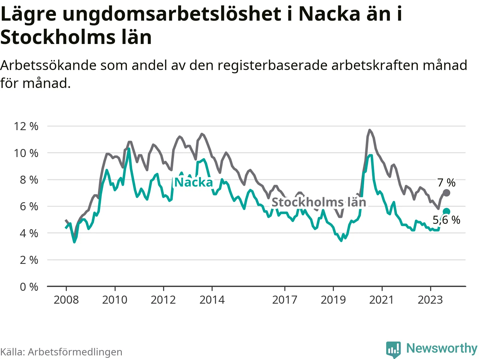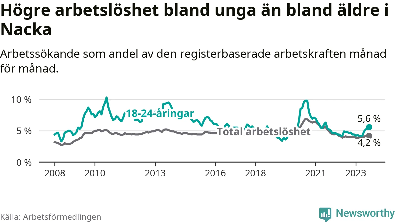 Graf: Arbetslöshet bland unga i Nacka kommun och Stockholms län