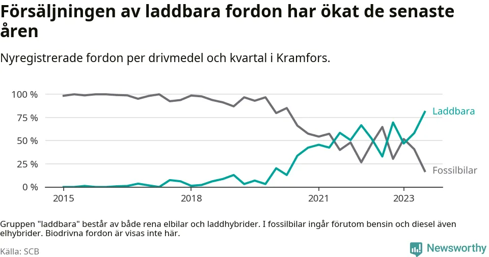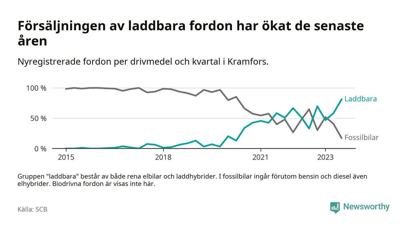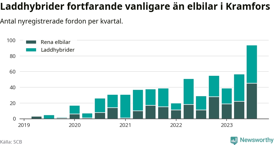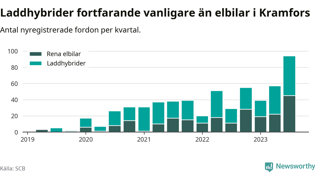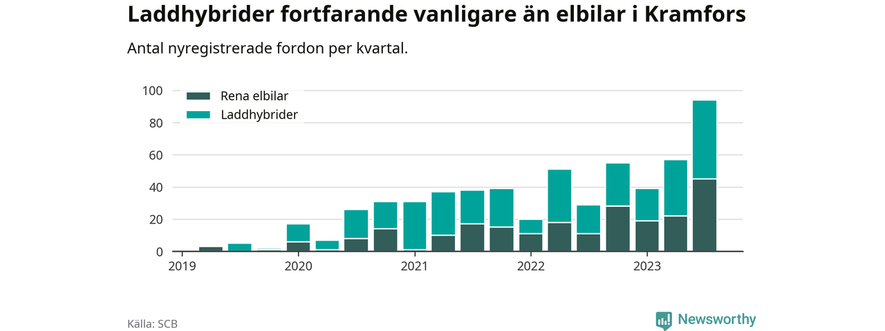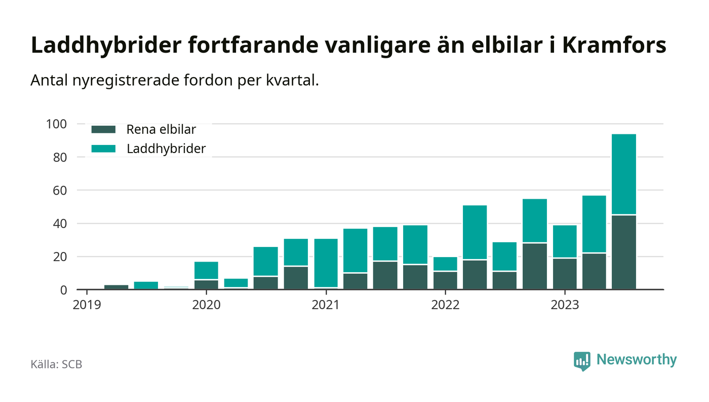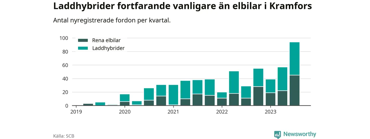 Men i Kramfors noterades ett nytt rekord under tredje kvartalet. Aldrig tidigare har laddbara bilar utgjort en så stor del av alla nya bilar.