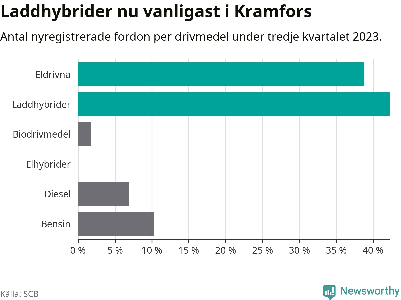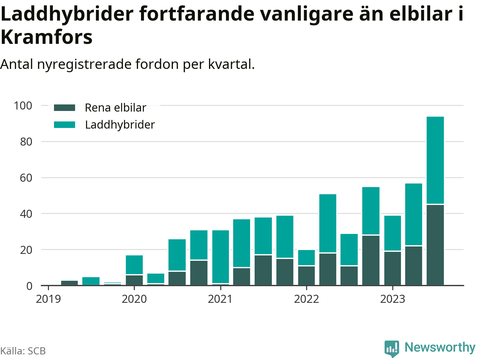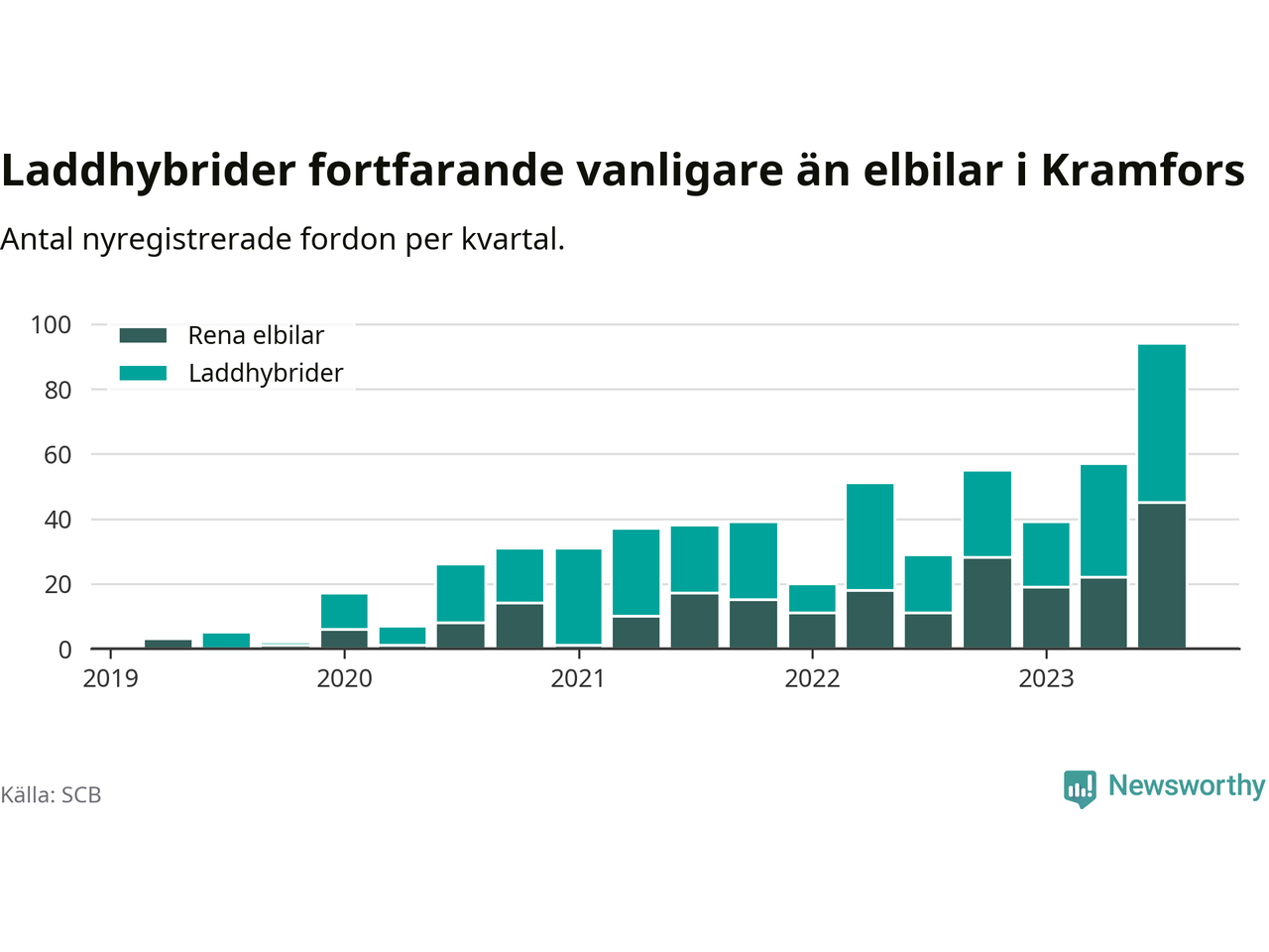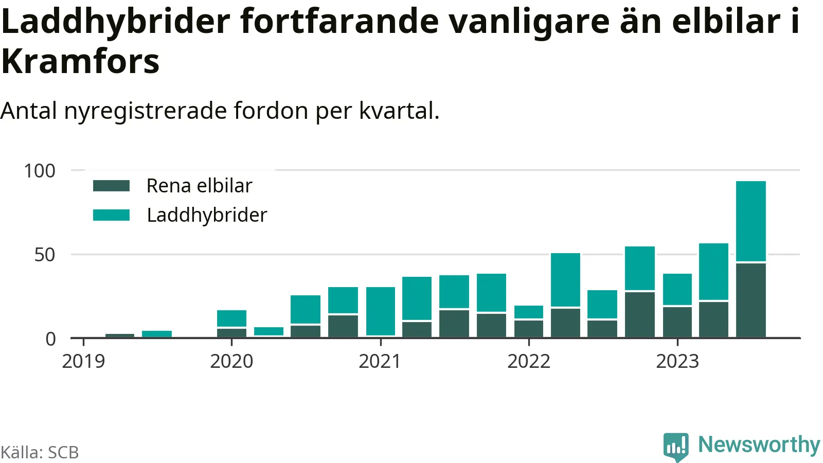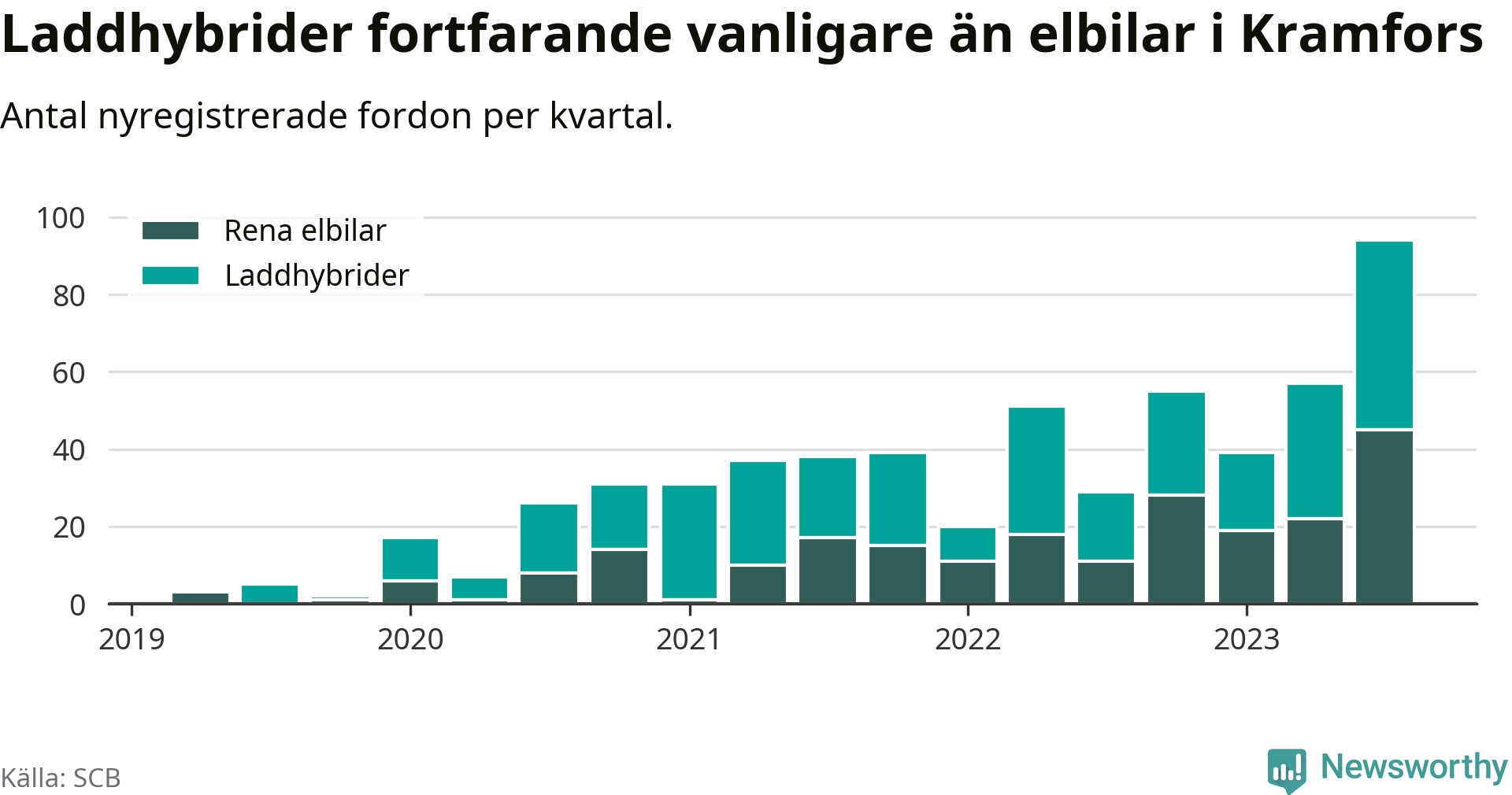 Men i Kramfors noterades ett nytt rekord under tredje kvartalet. Aldrig tidigare har laddbara bilar utgjort en så stor del av alla nya bilar.