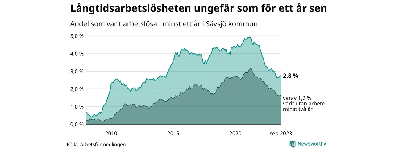 Långtidsarbetslöshet i Sävsjö i september 2023