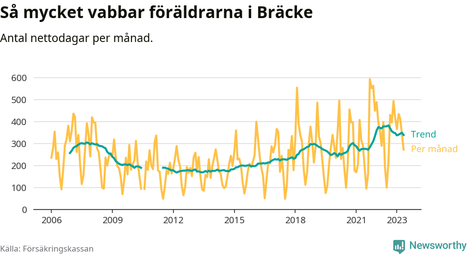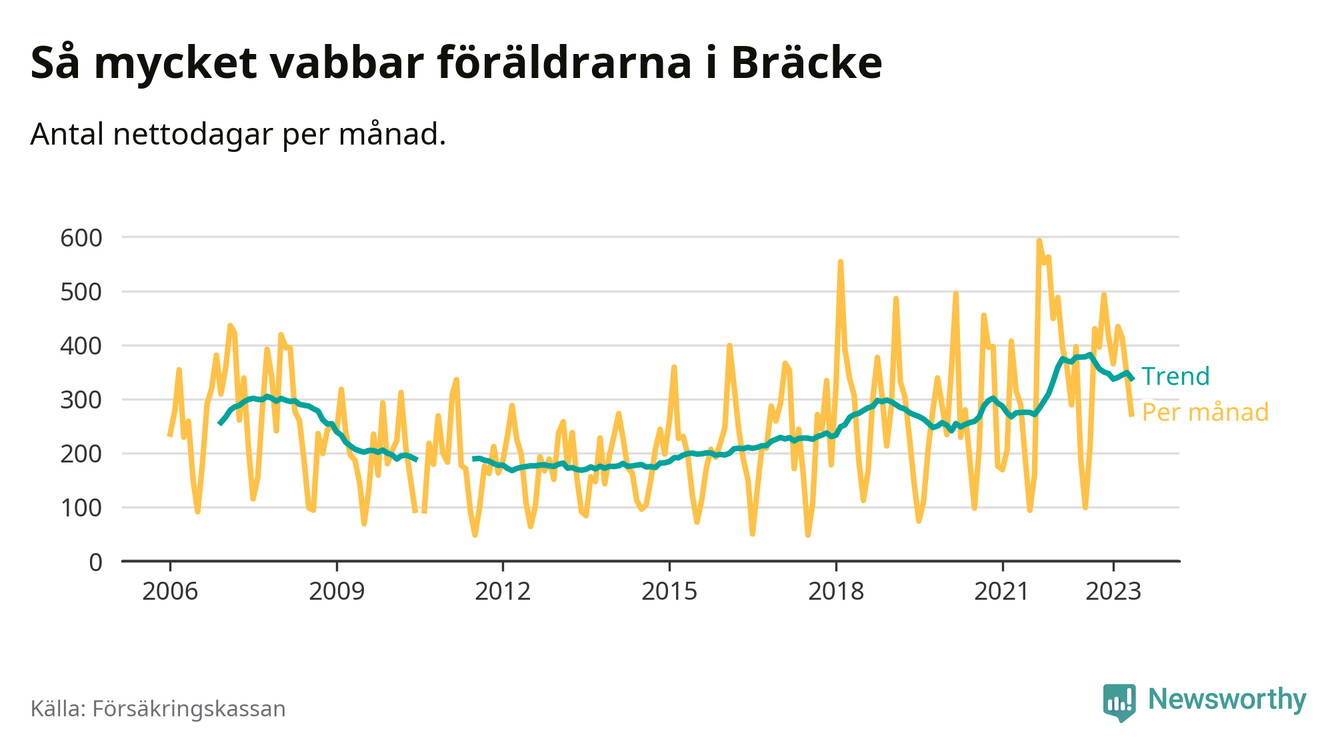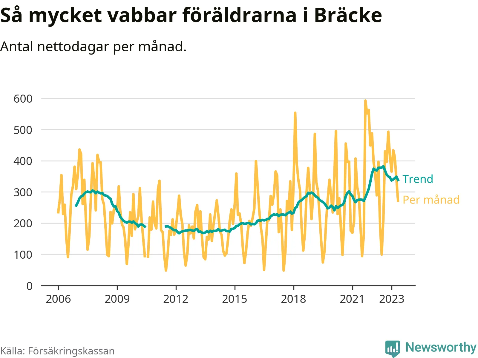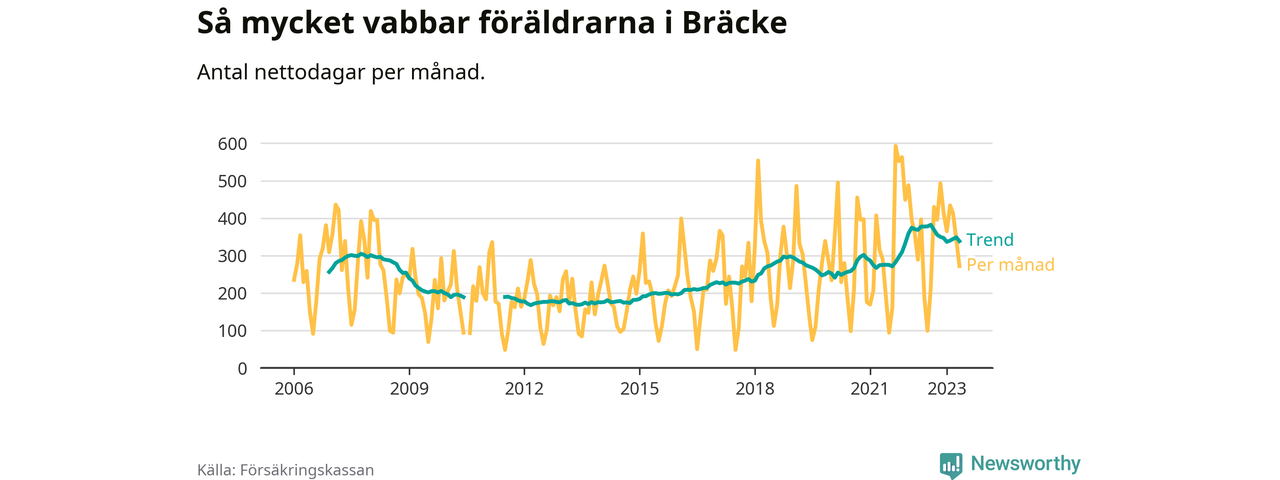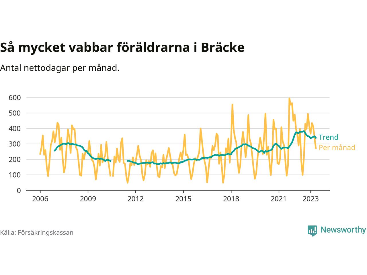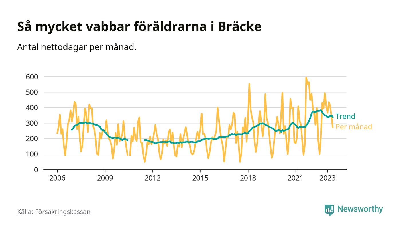 Mammor vabbar allt mer – men Bräckes pappor tar flest dagar i länet