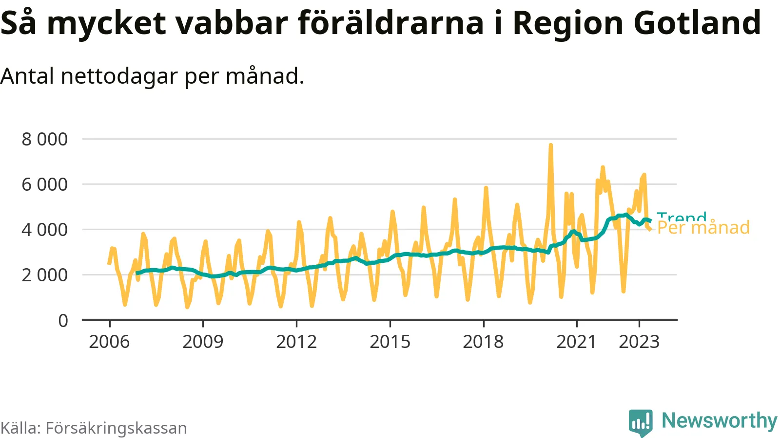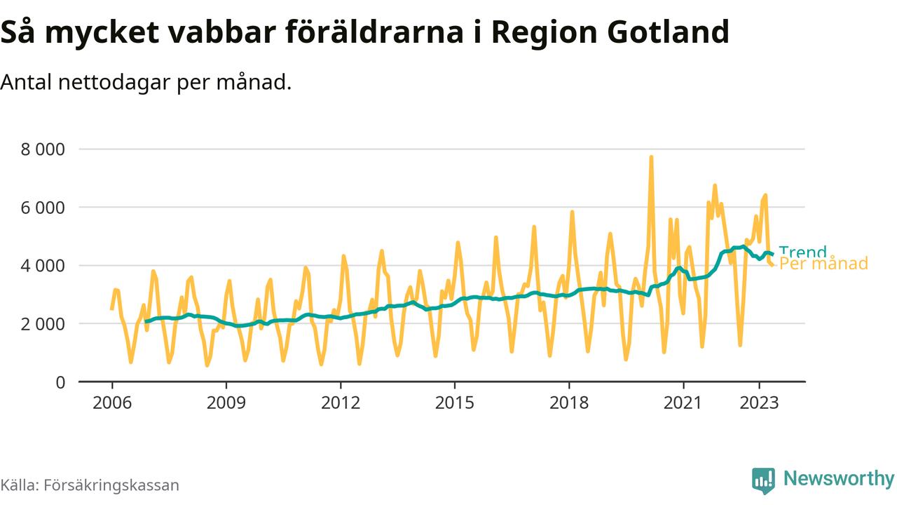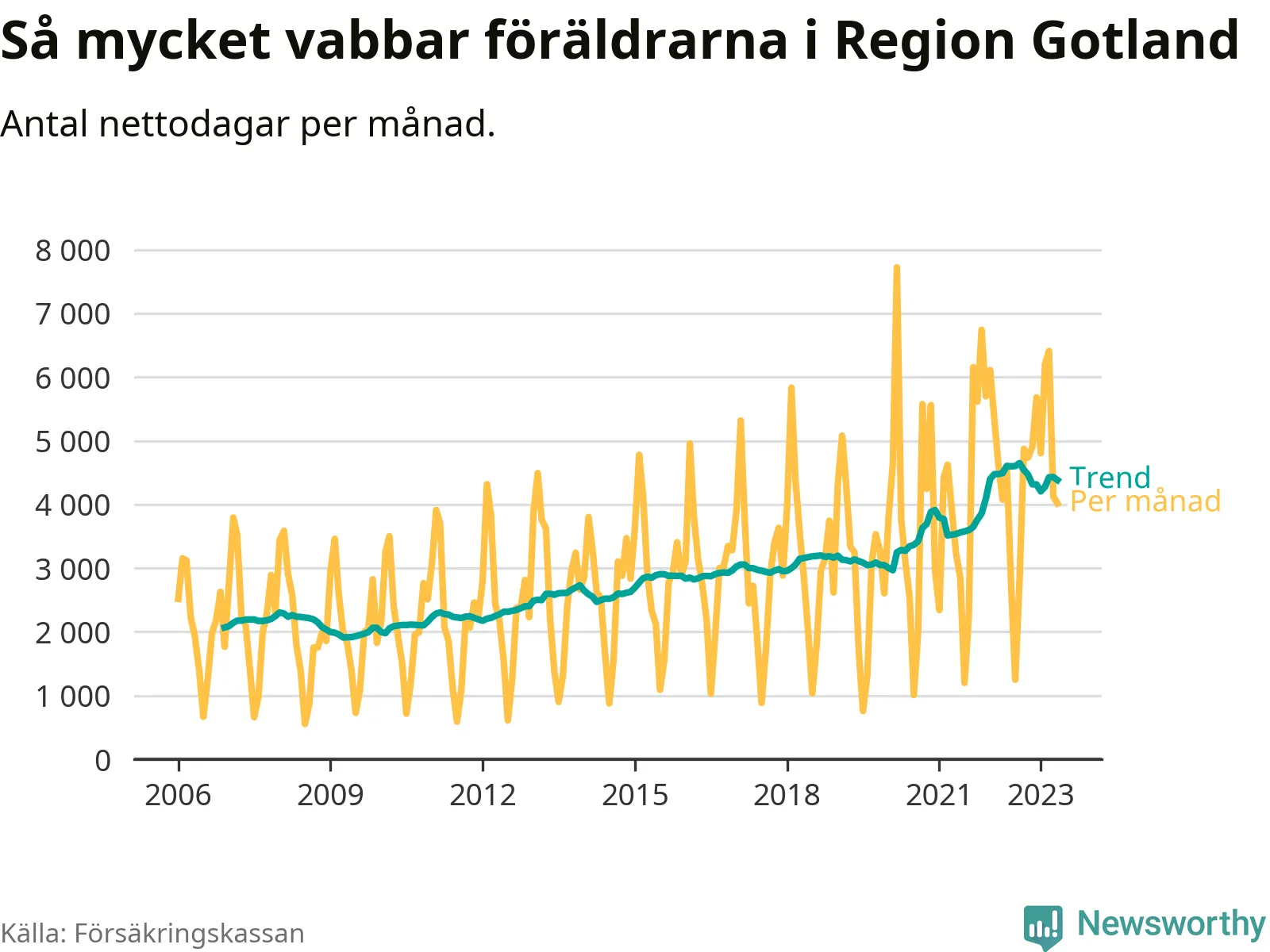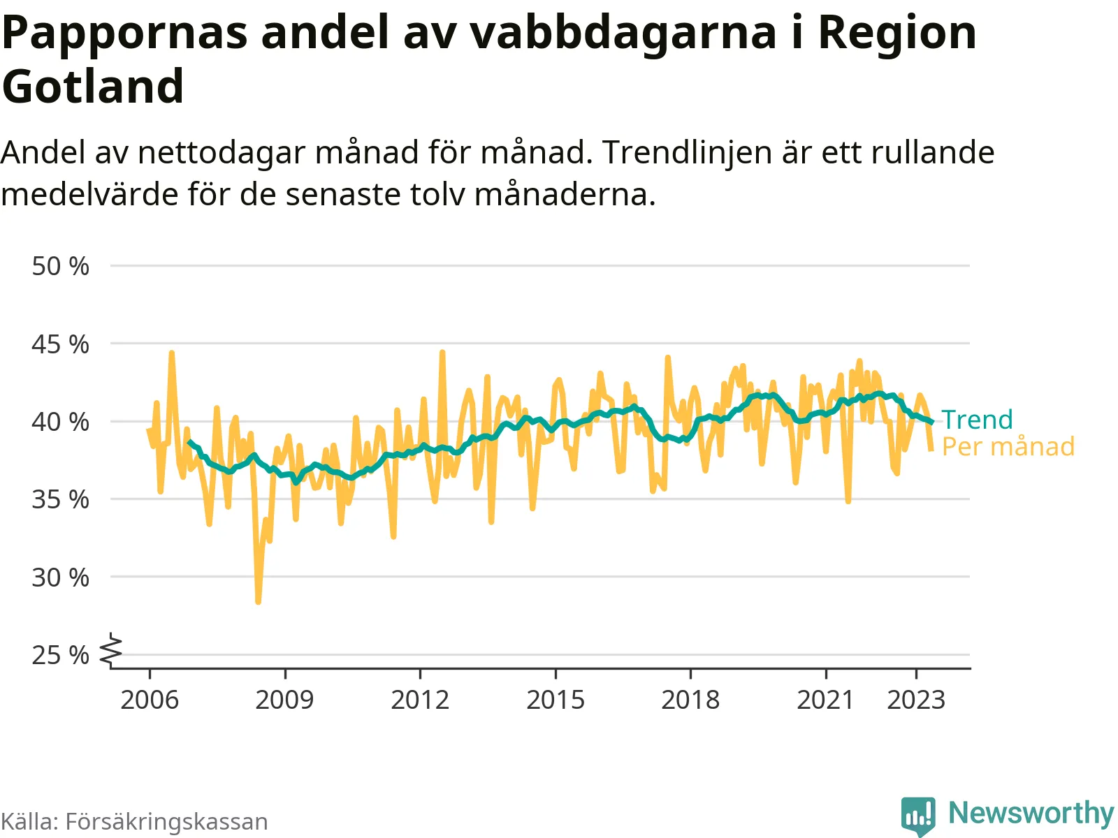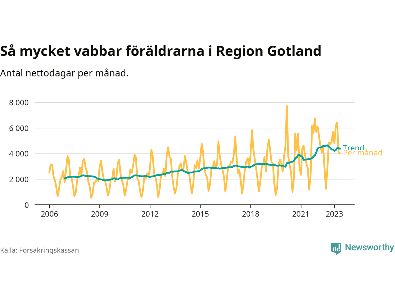 I Region Gotland peakade pappornas uttag våren 2022 då kommunens fäder var uppe i 42 procent av vabbdagarna 1. Under de senaste tolv månaderna har männen stått för 40 procent av vabb i kommunen.