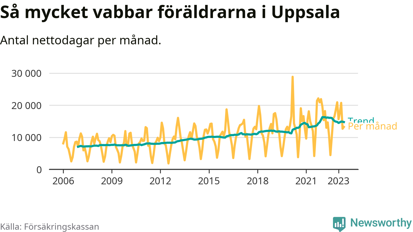 En annan trend är föräldrar generellt vabbar mer nu än tidigare. Sedan slutet av 00-talet har vabbuttaget nästan fördubblats i riket som helhet.