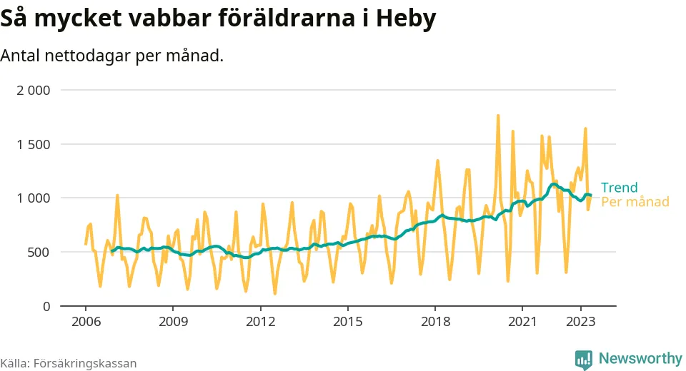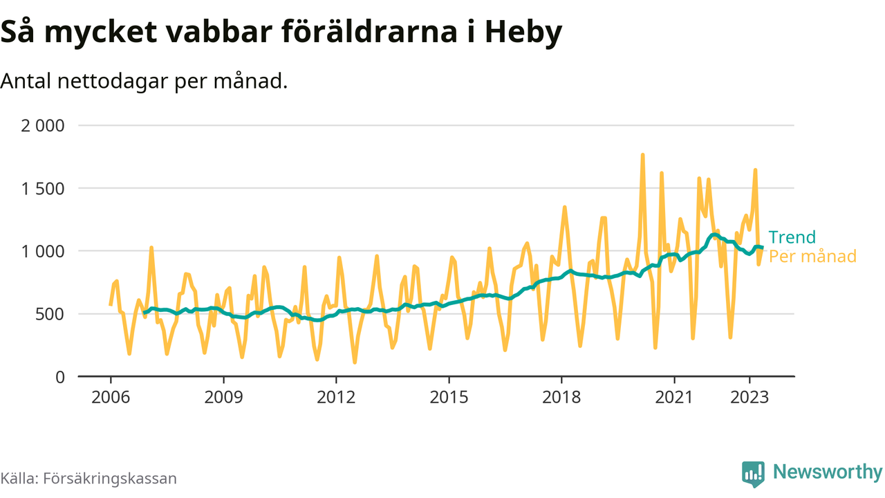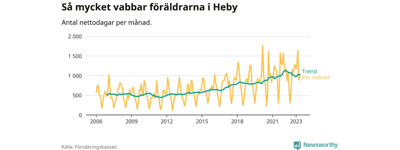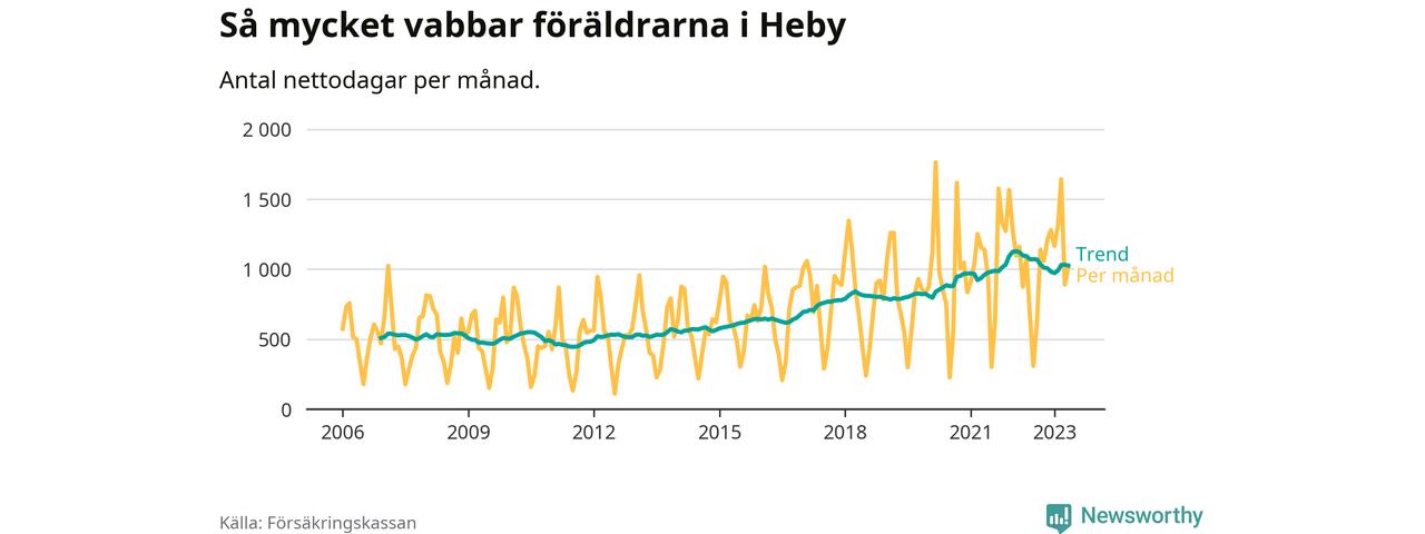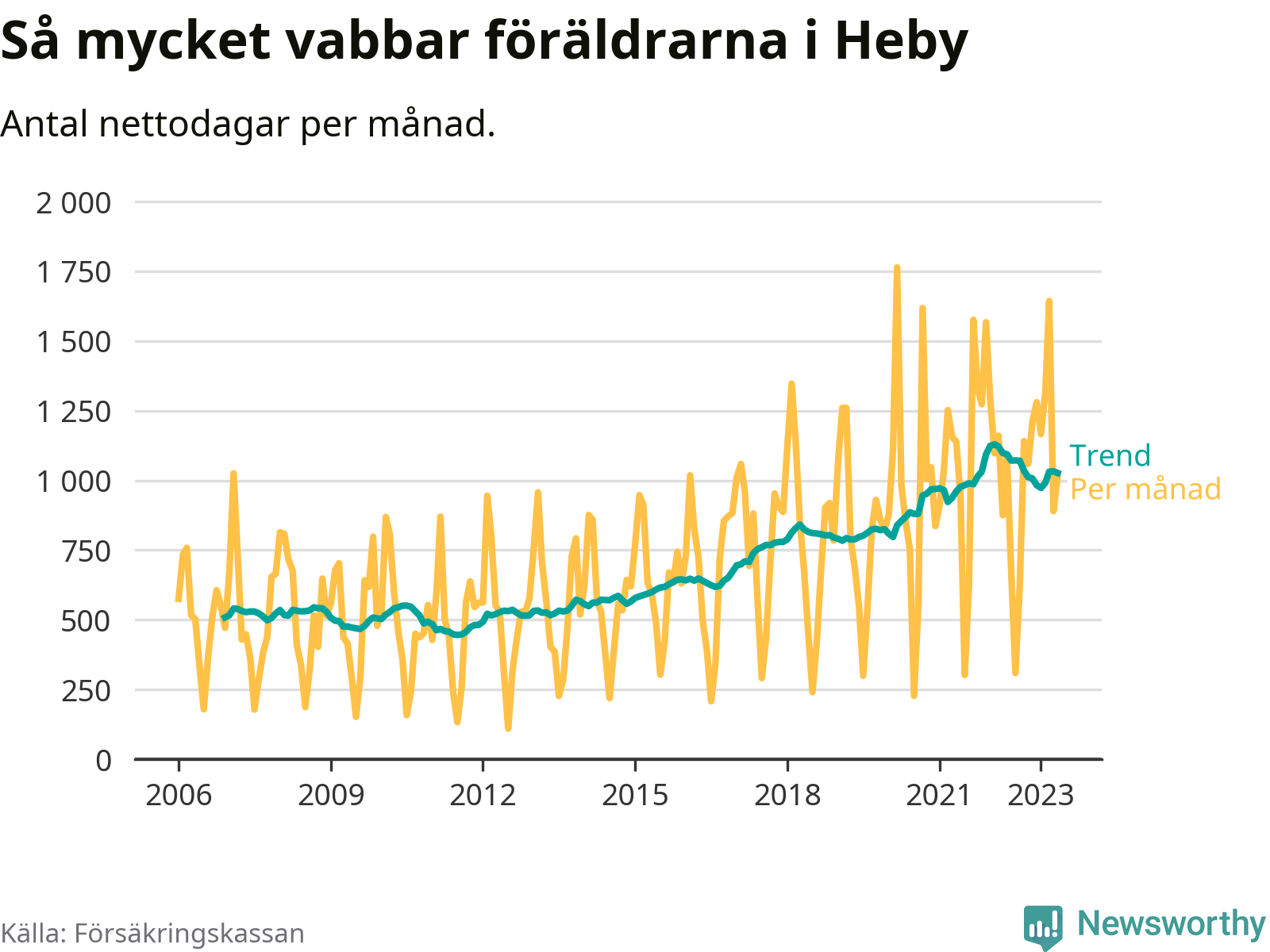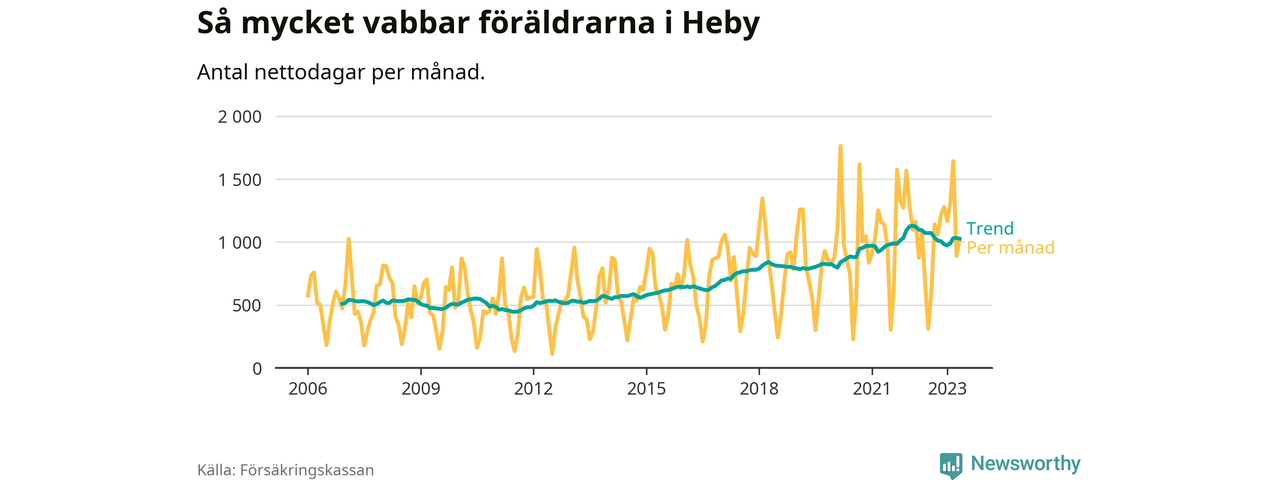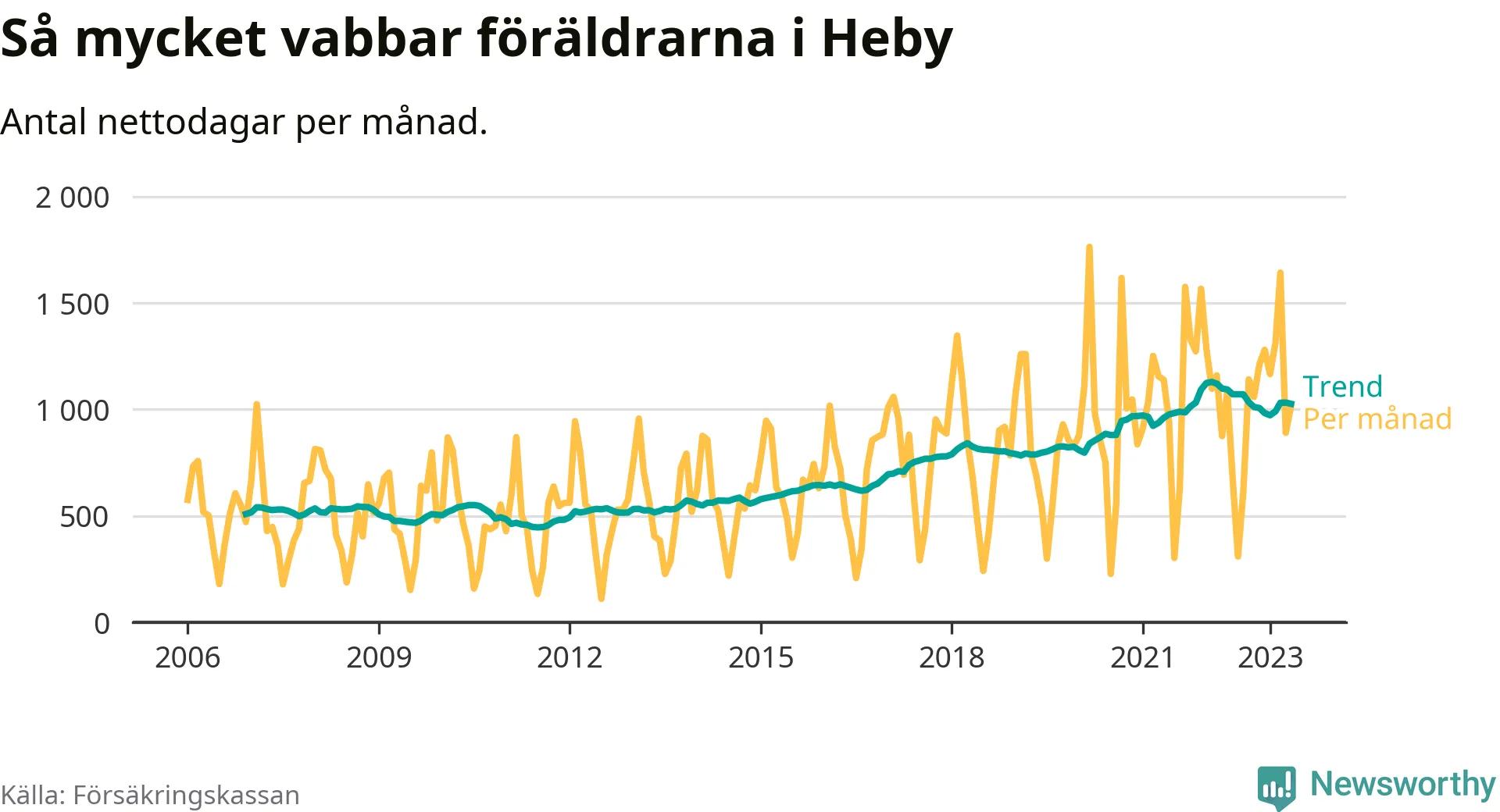 I Heby kommun peakade pappornas uttag vintern 2021 då kommunens fäder var uppe i 43 procent av vabbdagarna 1. Under de senaste tolv månaderna har männen stått för 40 procent av vabb i kommunen.